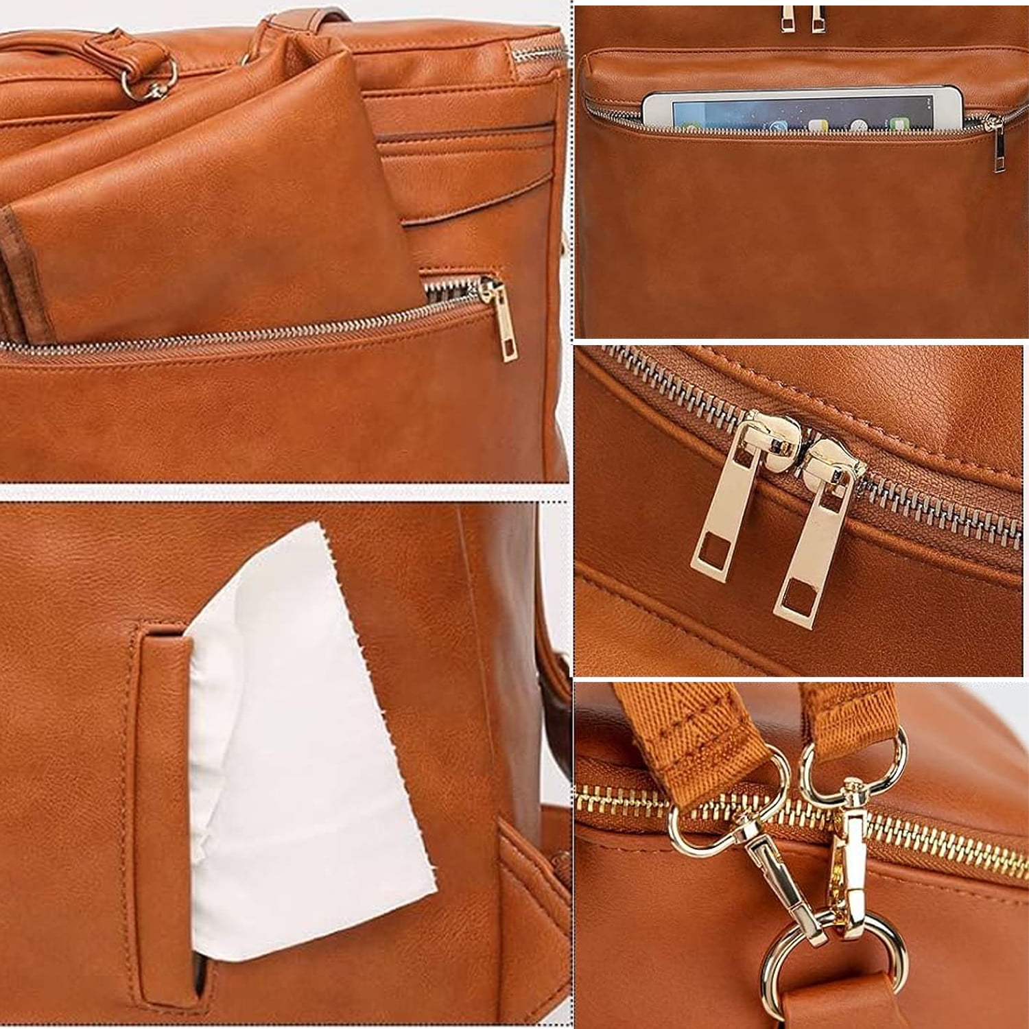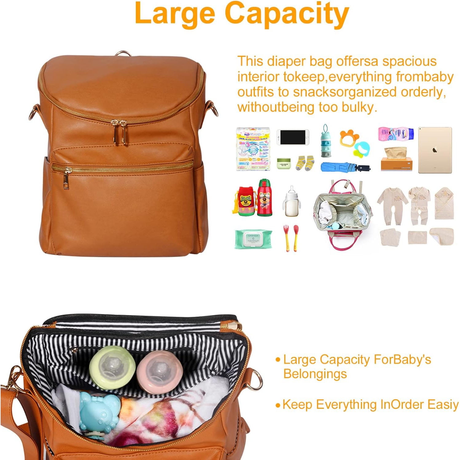 This mom backpack made of sturdy PU leather which is waterproof and the spills could be wiped off easily and sturdy nylon.Smooth zipper that you will use it comfortable.A detachable shoulder strap is presented for convenience to make you easily take out and put in baby essential things.In additional,it’s perfect diaper bag for multiple babies. This women bag has a fashion color scheme and gold zippers that elevate the look. This is not just a “mom bag”, it’s right for both men and women and appropriate for all occasions. Featuring a trendy and structured design, this diaper back pack satisfies all of the needs of parents on-the-go and also makes a great baby shower gift. What you get: 1*Diaper bag, 1*Insulated bottle bag, 1*sundry bag, 1*waterproof changing pad, 1*Shoulder Strap, 2*Stroller straps.The bag also can be worn as a shoulder bag or backpack! We hope that you will be satisfied with bags, but if for some you are not satisfied with your purchase, or you have any problem with the order, please kindly let us know, we are glad to do you a favor for your question, reply will be done within 48 hours and free exchange for wrong item shipped or item damaged. Leather bag backpack,backpack,diaper backpack for mom,bag purse,travel diaper bag,baby mom bag.