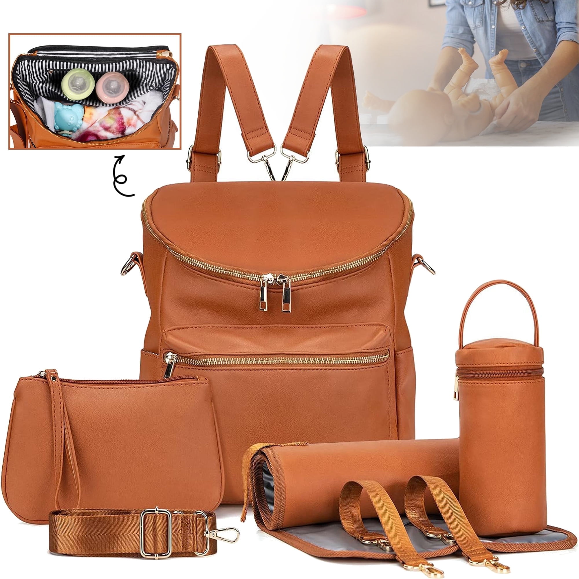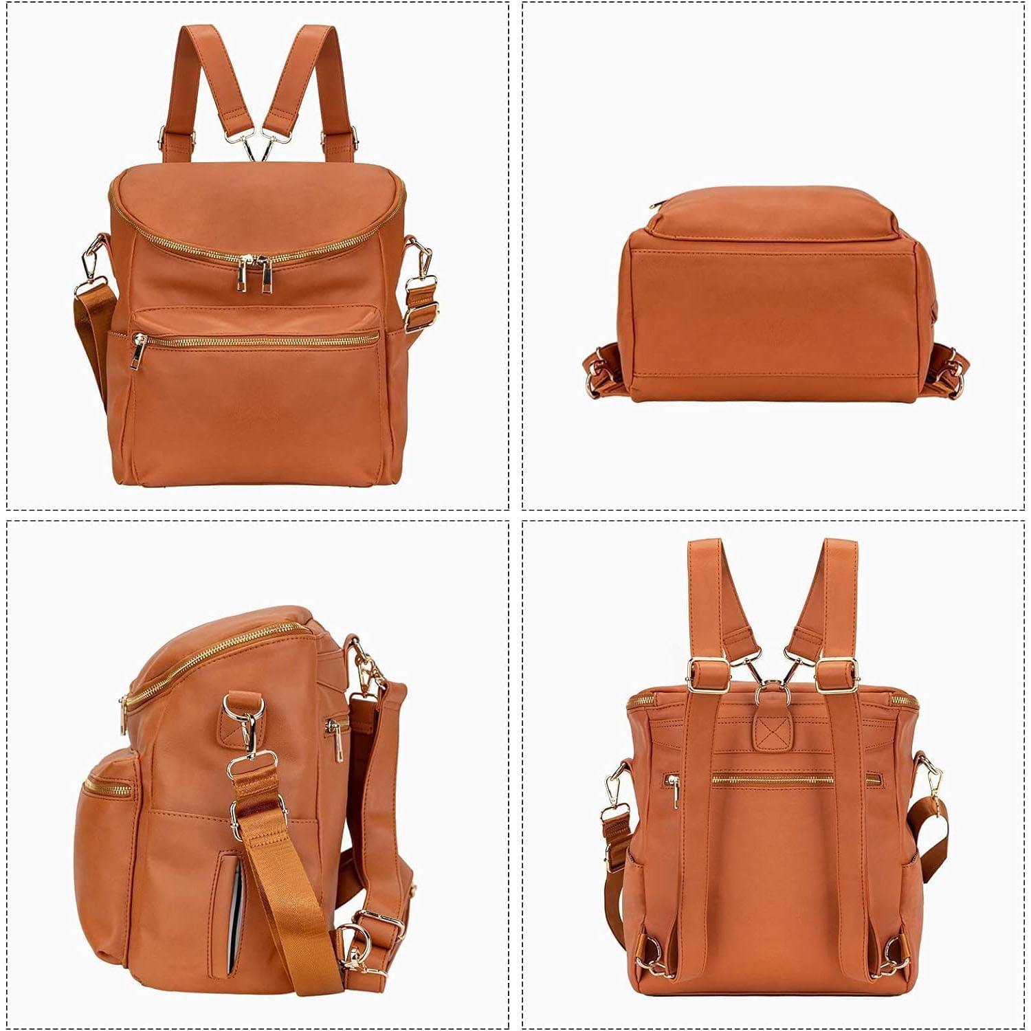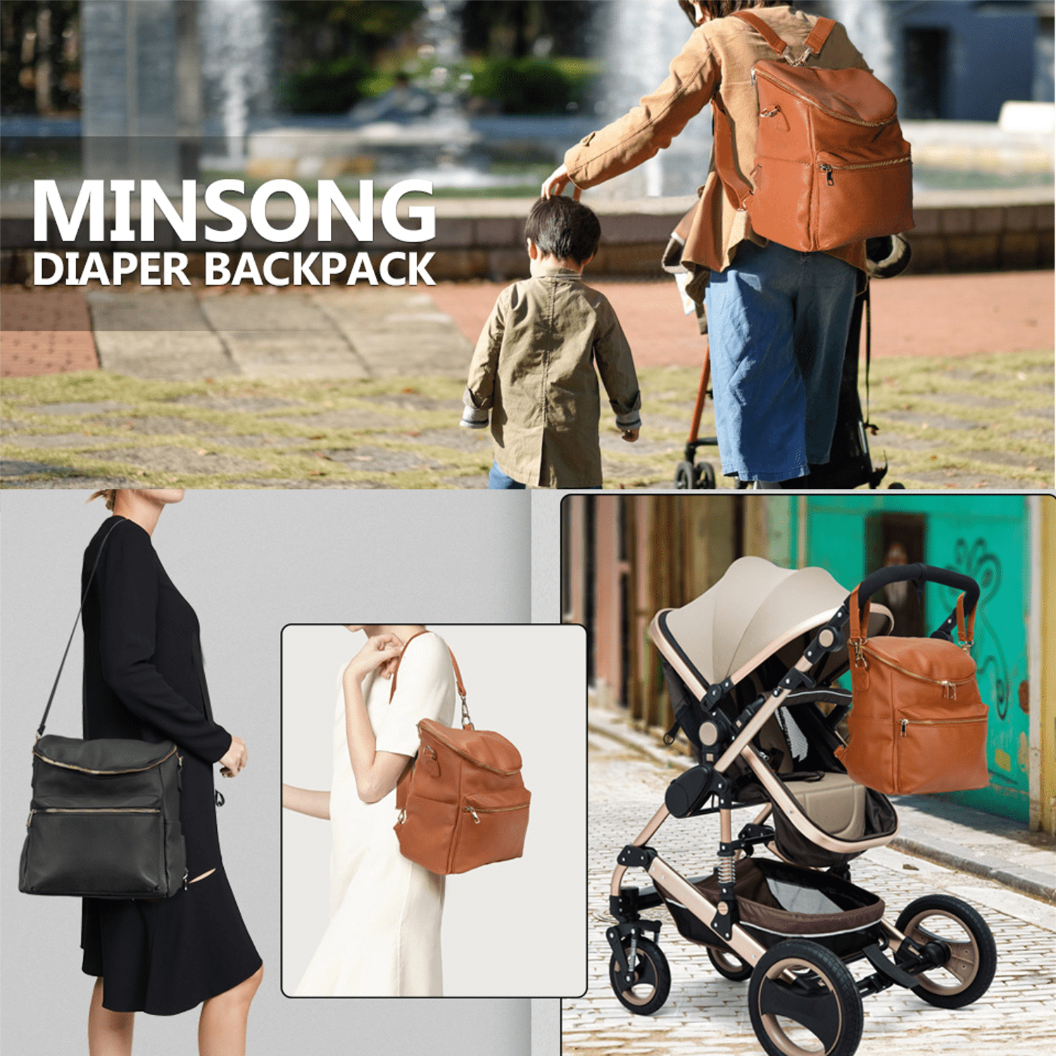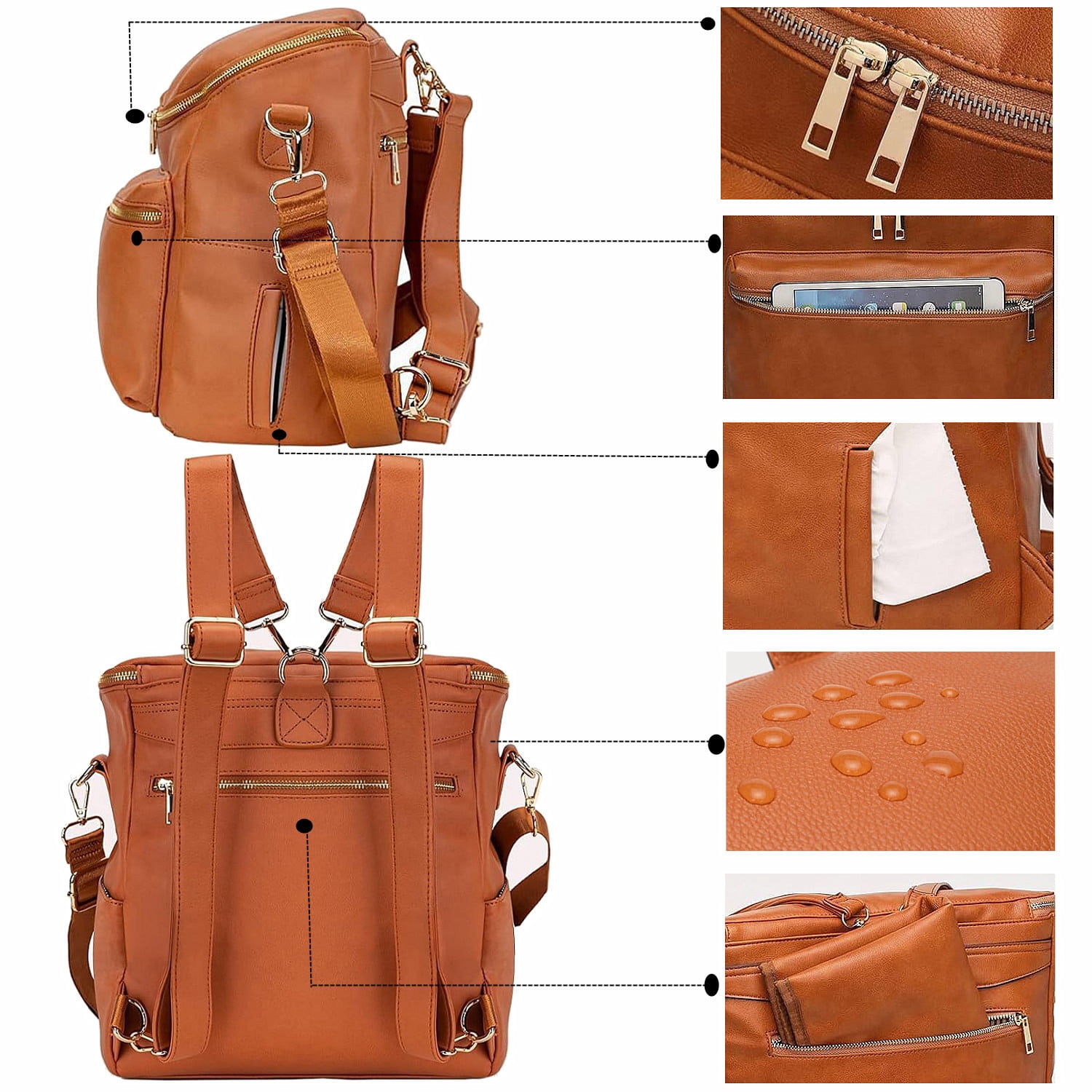 Minsong Backpack Purse for Women Fashion Waterproof PU Leather Mom Backpack Convertible Shoulder Bags Brown