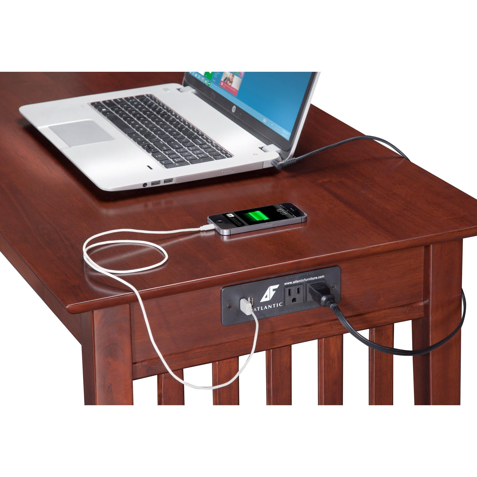 Mission Desk with Drawer and Charging Station in Walnut or Caramel