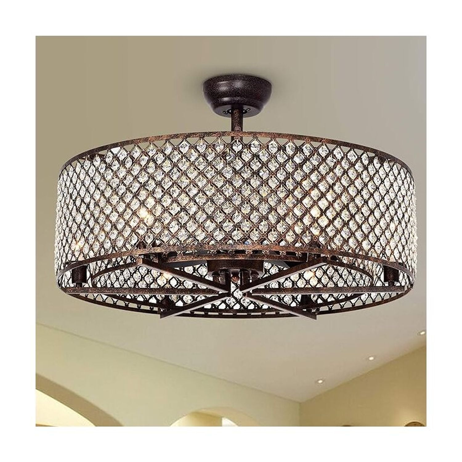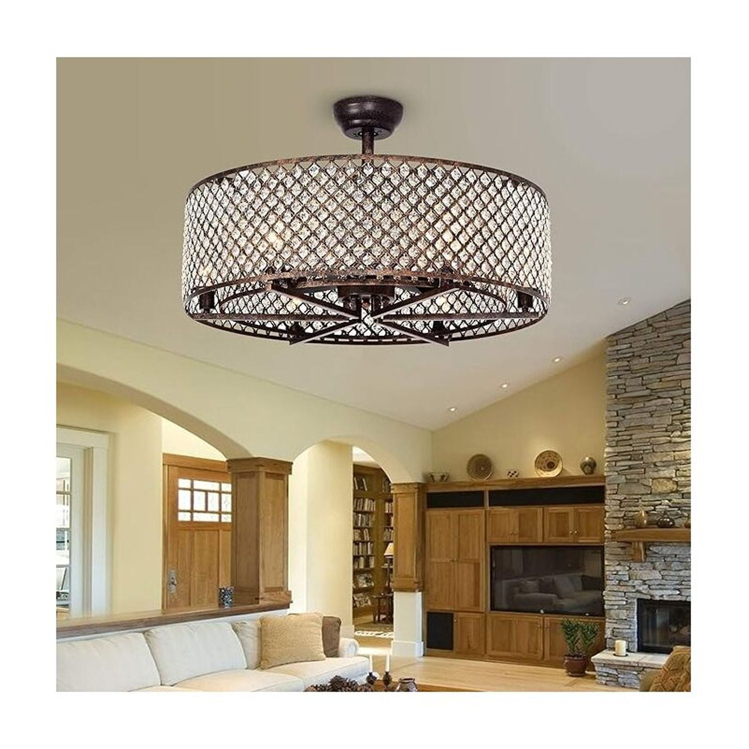 Rustic Bronze finished double-drum ceiling fan with cloaked fan blades (also known as a Fandelier – Fan d’Lier). Both Outer and inner latticed shades are embedded with brilliant diamond cut octogon crystals. 6-Lights for great illumination. Height is adjustable between two selectable downrod lengths. Scoop style fan blades move air with great efficiency. Six fan speeds insure you can choose just the right amount of breeze for your comfort. Solid metal construction and great detail work. A fantastic find. Features: Lamp Type: Chandelier Lamp Material: Crystal, Metal Number Bulbs: Six (6) Bulbs: Six (6) E12 40W Color: Rustic Bronze Switch: Remote Control The wood blades: 3 pcs Voltage: 120V 60Hz Dimensions: Overall diameter: 29.1 inches Overall height: 23 inches OR 31.5 inches Downrod (short): 10.2 inches Downrod (long): 19.7 inches Shade: 29.1 x 10 inches Size of Blade: 8.9 x 5.2 inches Motor speed: 289RPM (Level 1) 263RPM (Level 2) 244RPM (Level 3) 208RPM (Level 4) 160RPM (Level 5) 113RPM (Level 6) This fixture needs to be hardwired. Professional installation is recommended. Assembly Required This fixture needs to be hardwired. Professional installation is recommended. Assembly Required