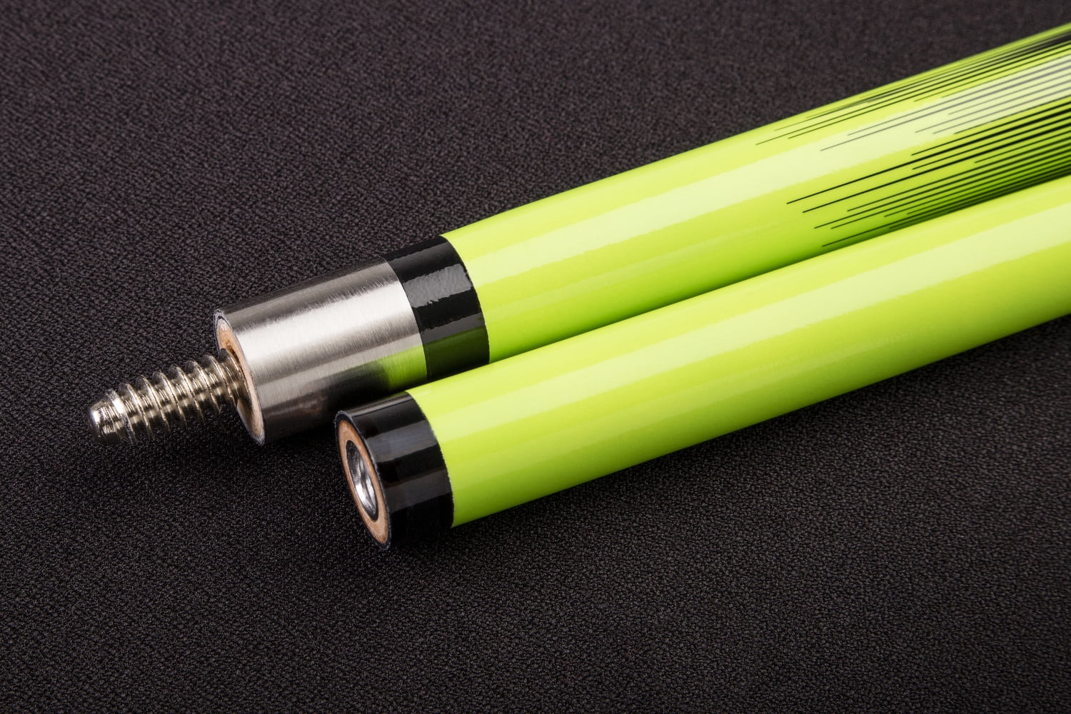 This Mizerak P1881G 58″ two-piece neon green fade deluxe carbon composite billiard/pool cue with micro talc grip will round off your game room’s cue collection. This cue is highly beautiful yet delivers maximum durability, with a dent- and ding-resistant carbon composite construction and a neon green fade pattern that will see years of play. Its straight-line technology also ensures that it will not distort with time. This cue is designed for players of all skill levels, making it a versatile complement to any billiards table in a restaurant, bar, or game room. Whether you’re a seasoned pro or a novice, this cue will help you improve your game.