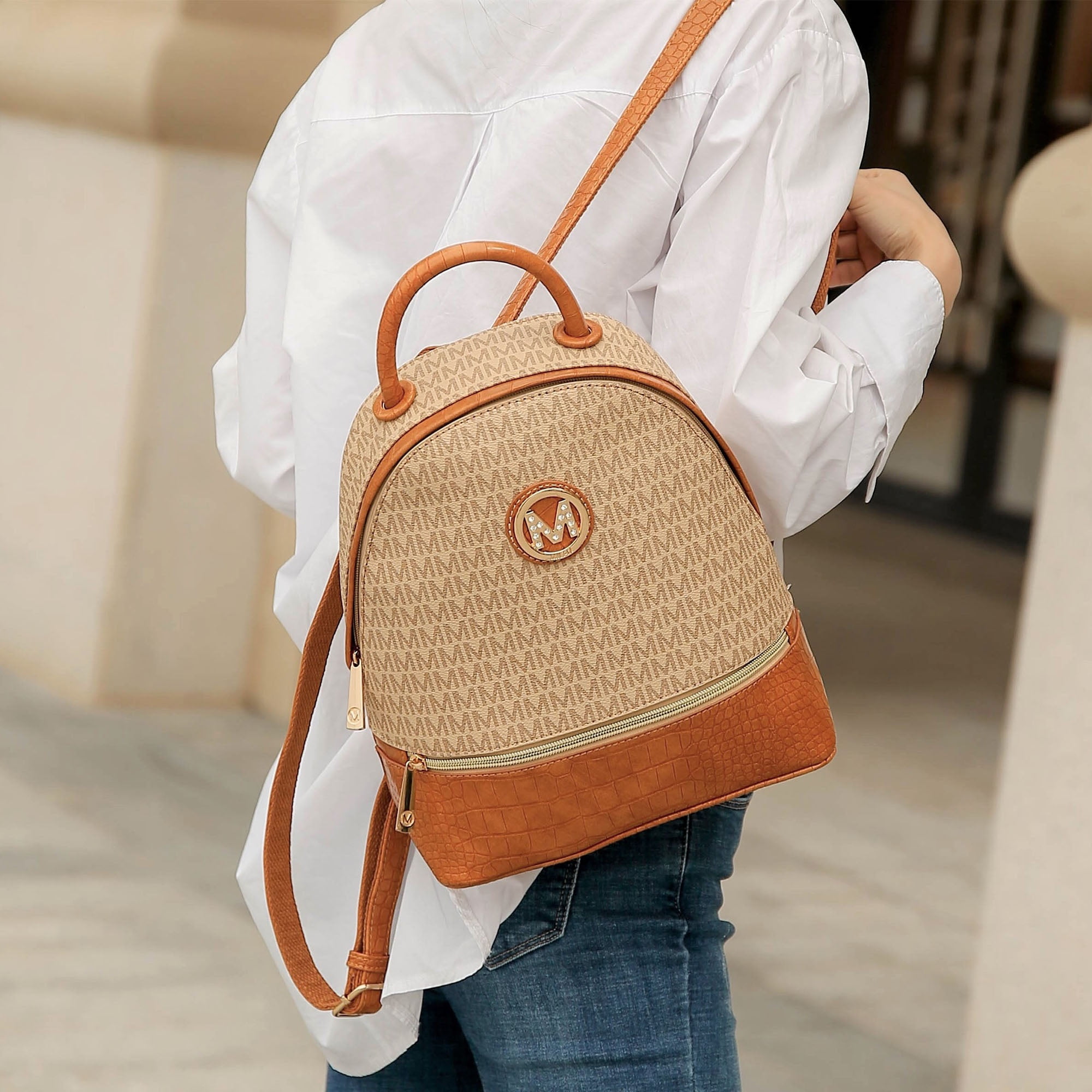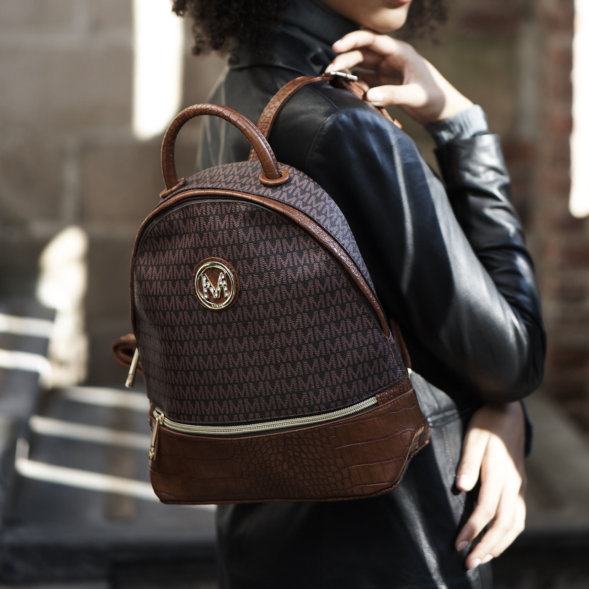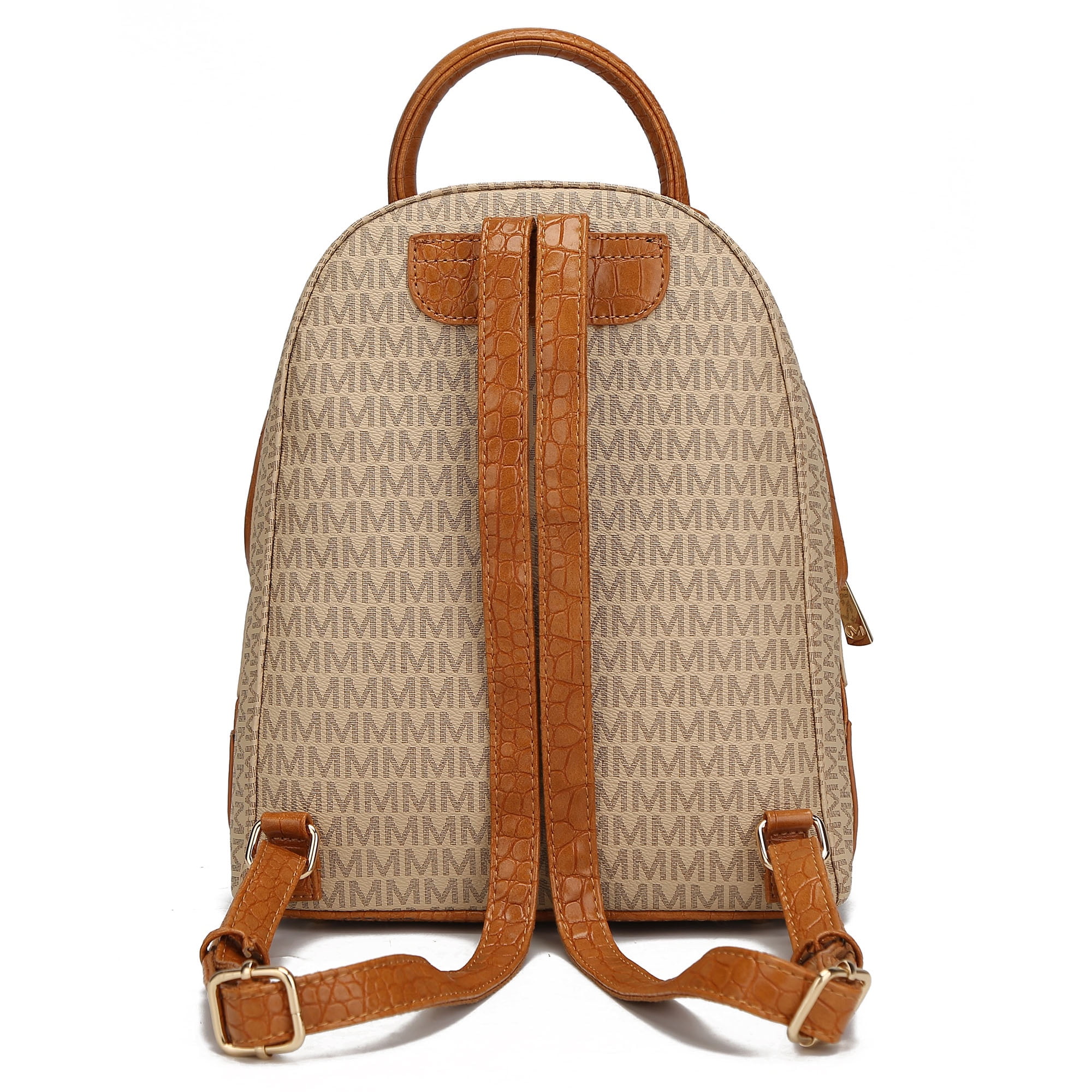 The Denice Signature Women Backpack is crafted from high-quality vegan leather, offering a luxurious feel with an ethical approach. The fabric lining enhances the durability and longevity of the bag, ensuring it remains a staple in your wardrobe for years to come. The backpack features luxurious gold-tone hardware that adds a touch of elegance to its semi-structured silhouette, making it both fashionable and functional. Interior pockets the fully lined interior of the Denice Backpack is designed to keep your belongings organized and easily accessible a wide wall zipper pocket for secure storage of smaller items amd pwo slip pockets that are perfect for your phone, keys, or other essentials and the exterior pocket features a spacious front bottom zipper pocket, ideally placed for quick access to items like keys, ID cards, or other small essentials. The MKF Collection Denice Signature Female Backpack by Mia K. is a must-have for those seeking a blend of style, functionality, and convenience. Whether you’re heading to work, school, or a weekend getaway, this backpack offers ample storage and sophisticated design, making it the perfect companion for any occasion. This product is not affiliated with Michael Kors.