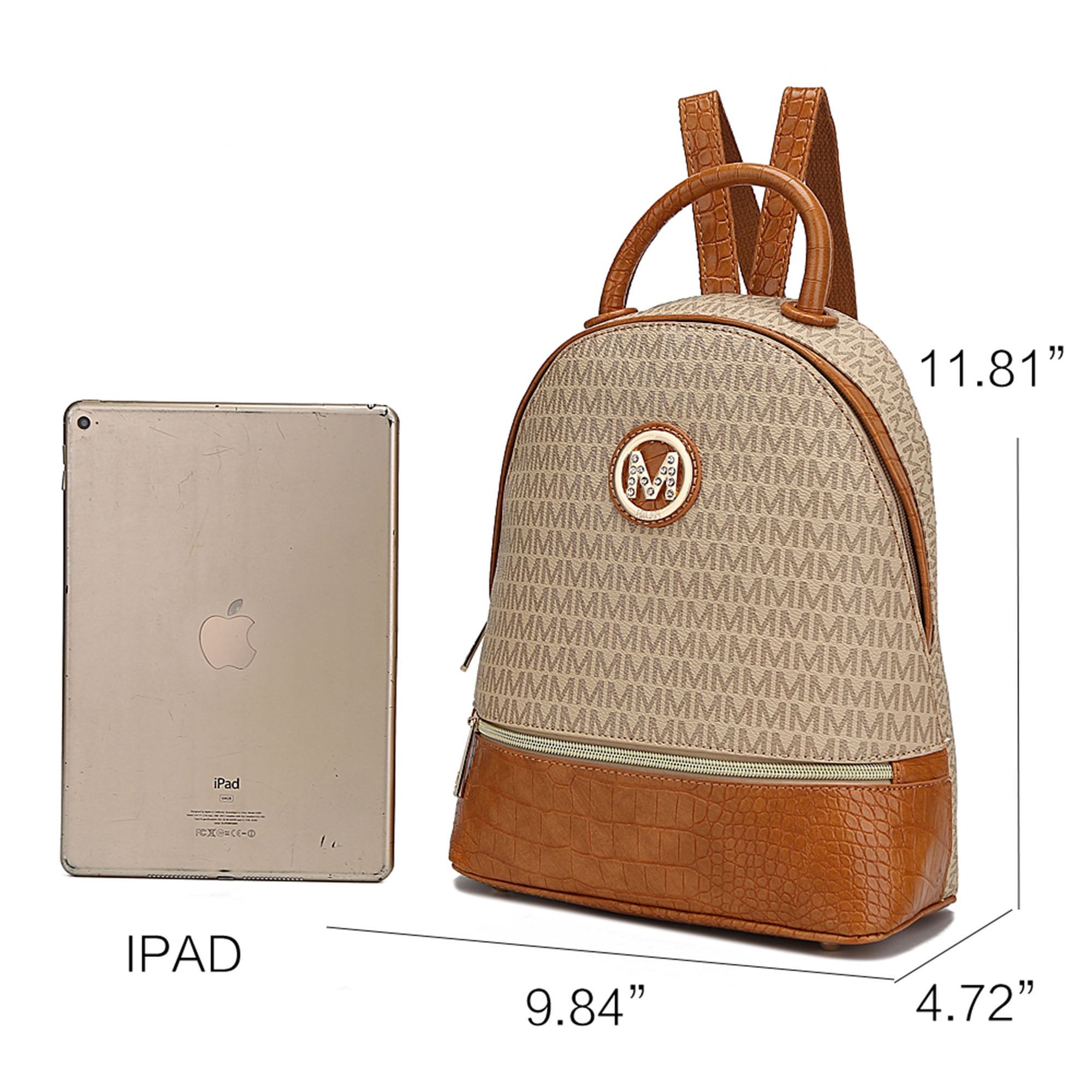 MKF Collection Denice Signature Women Backpack, Bookbag Purse Handbag Fashion Travel Daypack Bag by Mia K – Black