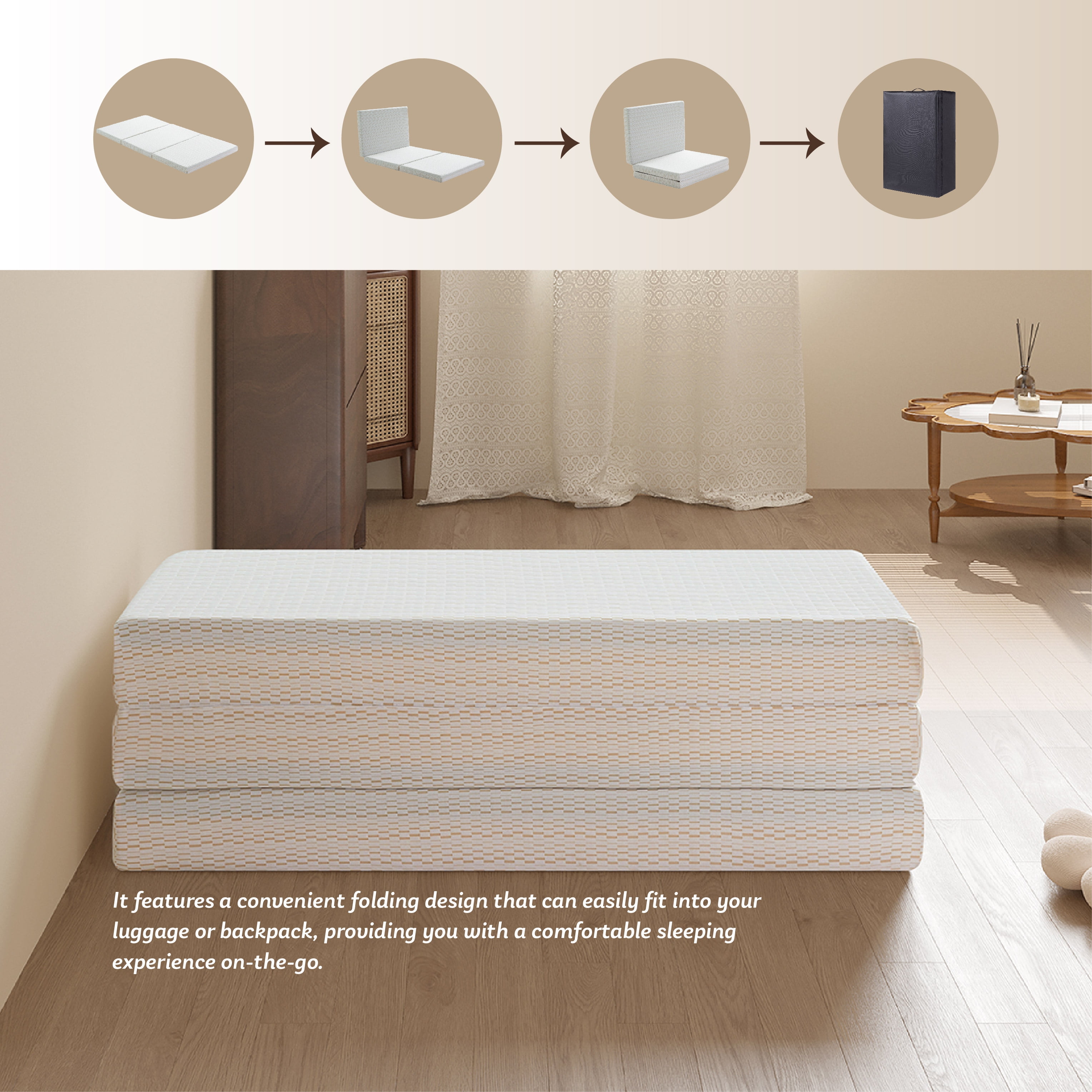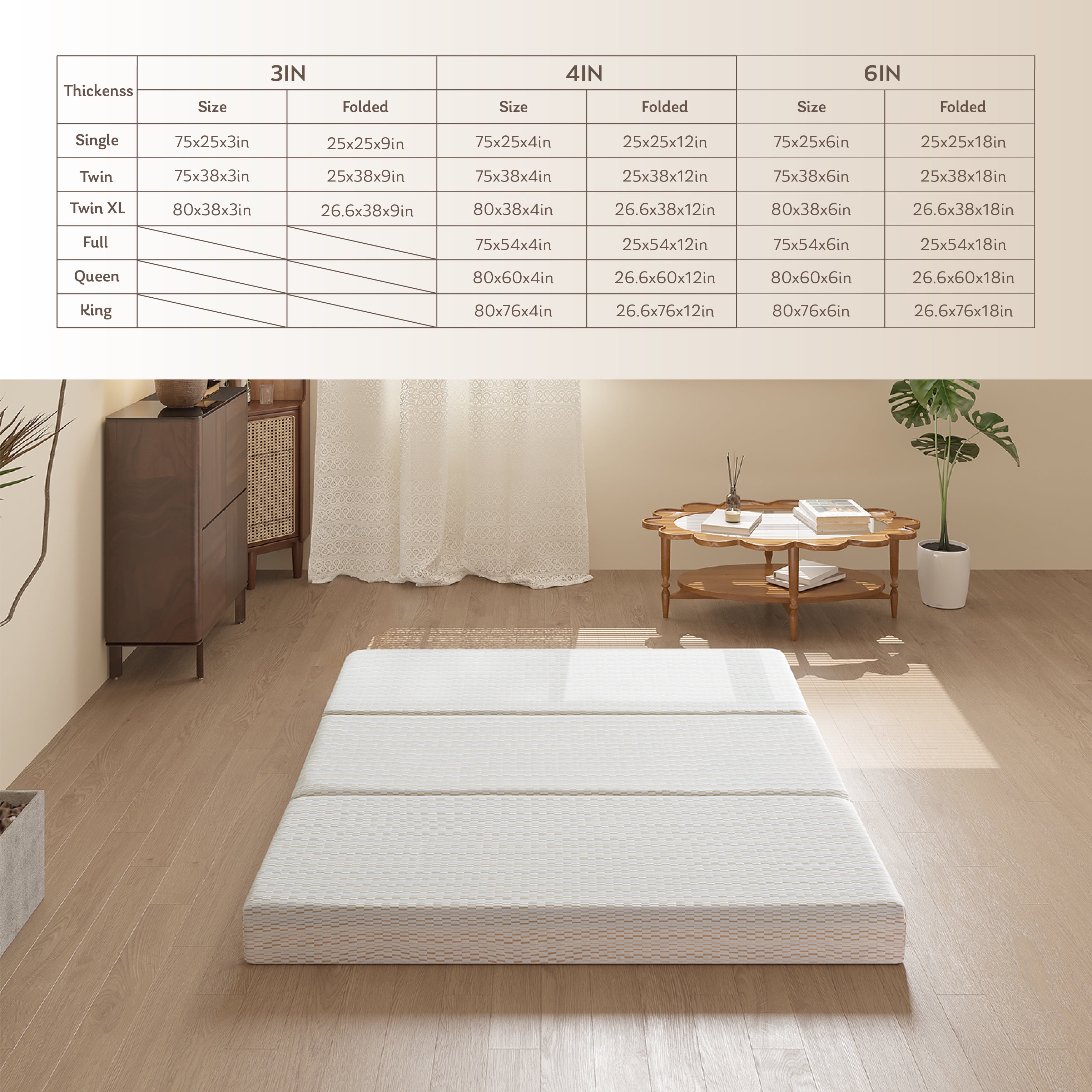 MLILY 4 inch Single Size Tri-Folding Memory Foam Mattress, Portable Guest Bed in a Box Pressure Relief & Comfortable: Gel Memory Foam regulates moisture and odor, reducing your risk of skin disease. Portable &multi-purpose folding: Perfect to use for sleepover guests, camping, cabins, exercising dorm rooms, and children’s playrooms. Easily fold it up for storage in a closet in seconds when not in use. Buy with Confidence: Mlily mattress has CertiPUR-US certified foam and OEKO-TEX certified fabric. The cover is removable for cleaning. Expertly packed: The folding memory foam mattress is compressed, vacuum sealed, neatly rolled and shipped in a box General Note:Simply give it 24 hours to fully expand and reach optimum comfort WORRY-FREE WARRANTY: A 5-year manufacturer warranty is included for ultimate peace of mind Single Size: 75″L x 25″W x 4″H Twin Size : 75″L x 38″W x 4″H Twin XL Size: 80″L x 38″W x 4″H Full Size: 75″L x 54″W x 4″H Queen Size: 80″L x 60″W x 4″H King Size: 80″L x 76″W x 4″H