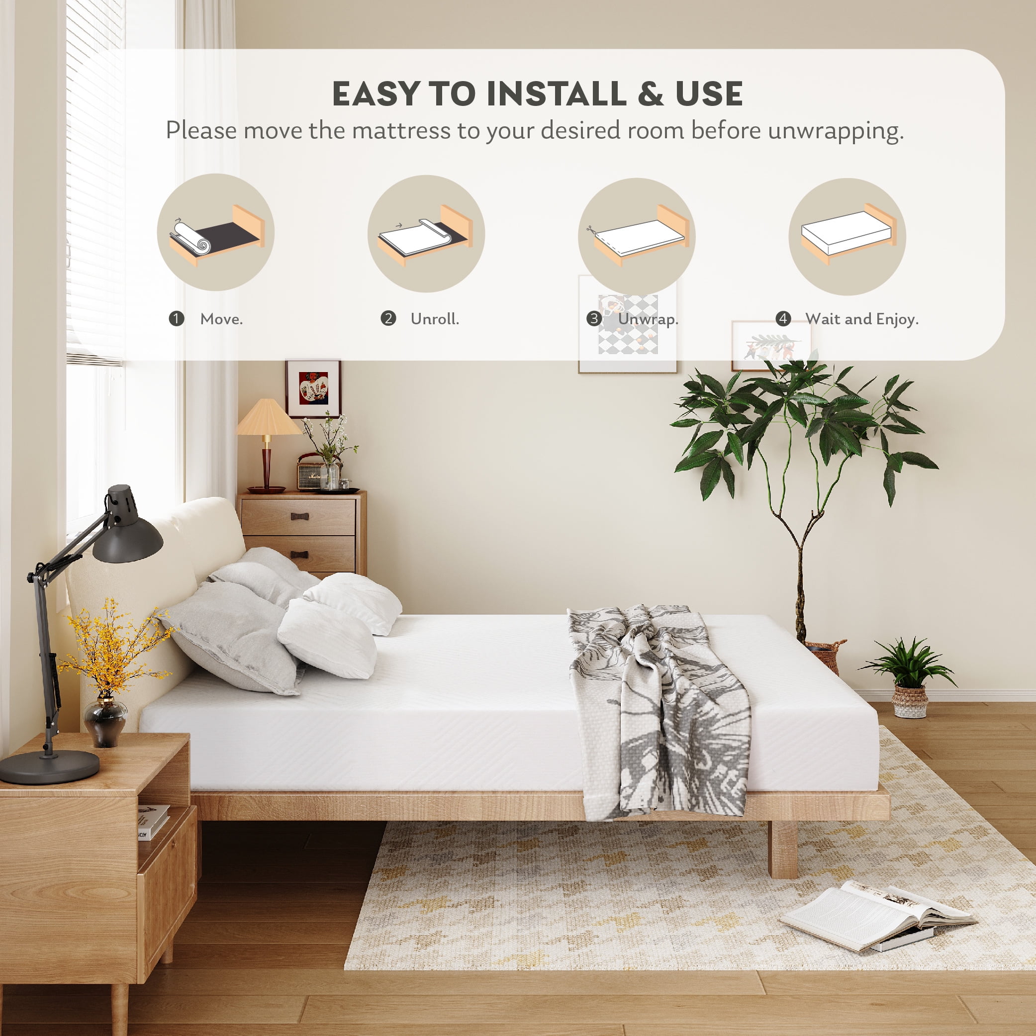 Pressure Relief: The medium firm feel strikes the perfect balance between softness and support as the AeroFusion memory foam reduces motion transfer and offers pressure relief for back Safe and Comfortable: The mattress is CertiPUR-US certified and OEKO-TEX certified for your safety and comfort Bed in a box: The bed mattress arrives in a box for convenient shipping and handling General Note: Simply give it 72 hours to fully expand and reach optimum comfort Suitable for various bed: bunk bed, slatted bed, platform bed, adjustable bed base, floor WORRY-FREE 10 YEARS WARRANTY: We believe that you will love this sleep item and are dedicated to giving you the best night of sleep through our superior products. If your mattress is defective or damaged during delivery, our U.S.-based customer support team will happily work with you to address any concerns to make it right. Please note that THERE IS NO TRIAL PERIOD, OPENED MATTRESSES CANNOT BE RETURNED. WORRY-FREE 10 YEARS WARRANTY: We believe that you will love this sleep item and are dedicated to giving you the best night of sleep through our superior products. If your mattress is defective or damaged during delivery, our U.S.-based customer support team will happily work with you to address any concerns to make it right. Please note that THERE IS NO TRIAL PERIOD, OPENED MATTRESSES CANNOT BE RETURNED. Twin mattress : 75″L x 38″W x 6″H Twin XL mattress: 80″L x 38″W x 6″H Full mattress: 75″L x 54″W x 6″H Queen mattress: 80″L x 60″W x 6″H King mattress : 80″L x 76″W x 6″H Cal King mattress: 84″L x 72″W x 6″H