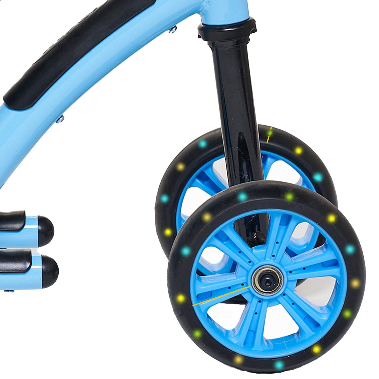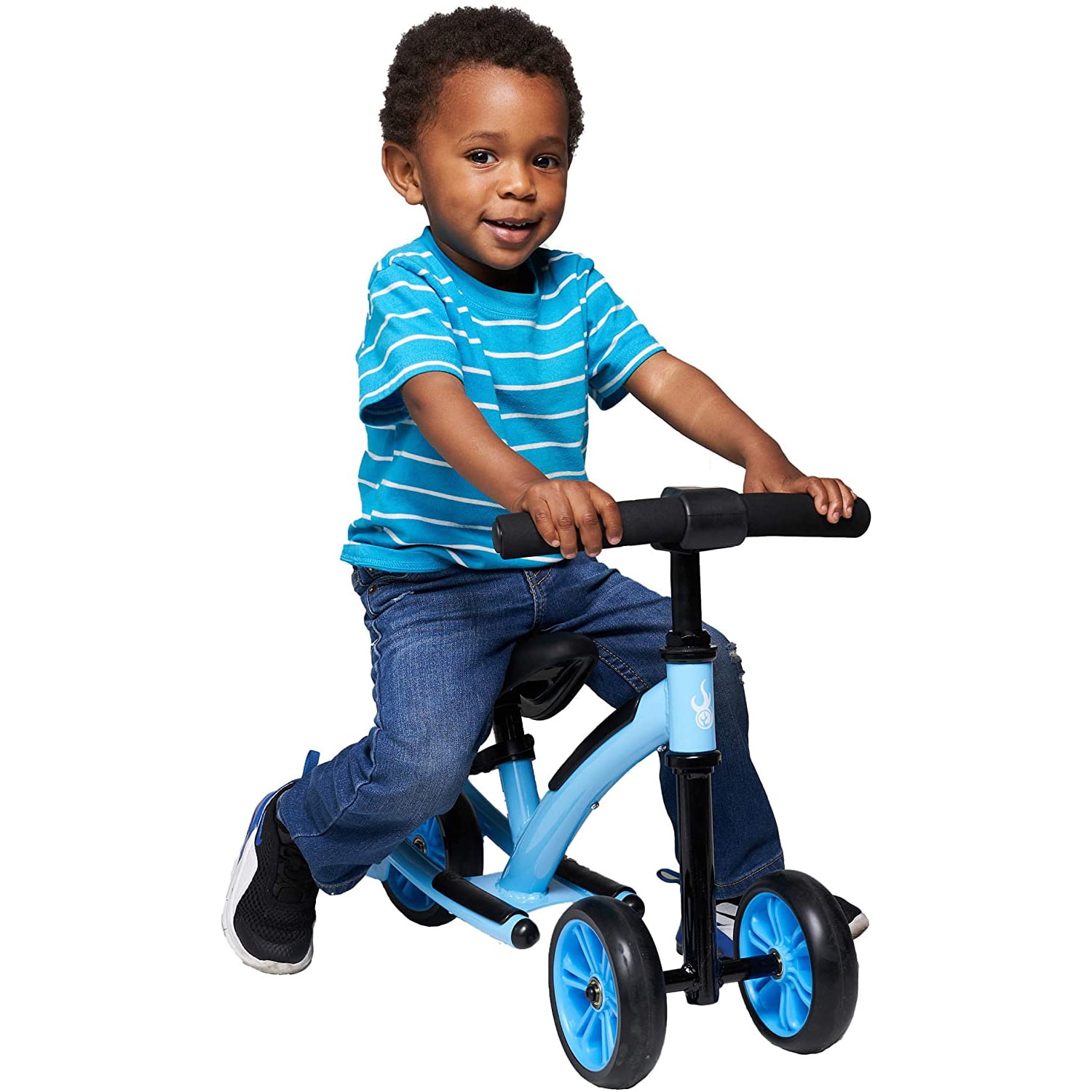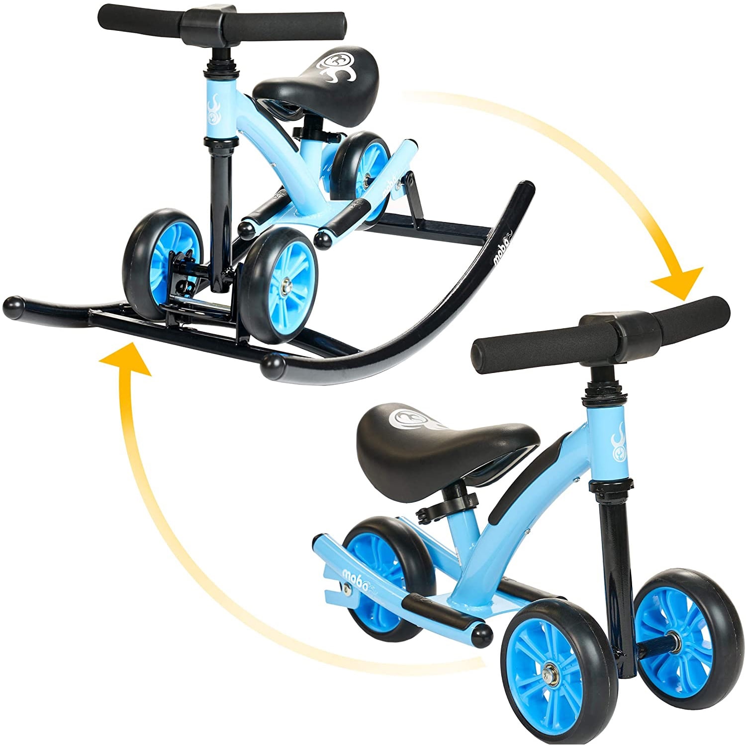 2-in-1 developmental riding and rocking bike helps babies and toddlers reach major milestones Easily converts between rocking and riding toys by removing the balance trike Multi-functional design will teach your children coordination and help with confidence when walking Sturdy metal frame, safety pads, high-quality bearings, and light-up wheels ensure your little one stays protected Adjustable seat and handlebar allow your baby to grow into the toy 2-in-1 riding toy ideal for kids ages 1 to 3 years old Age range: 1 to 3 years old Weight capacity: 60 pounds Color: Blue Dimensions (L x W x H): 16 x 15 x 26 inches Weight with base: 13 pounds Weight without base: 7 pounds Manufacturer warranty: 30-day warranty