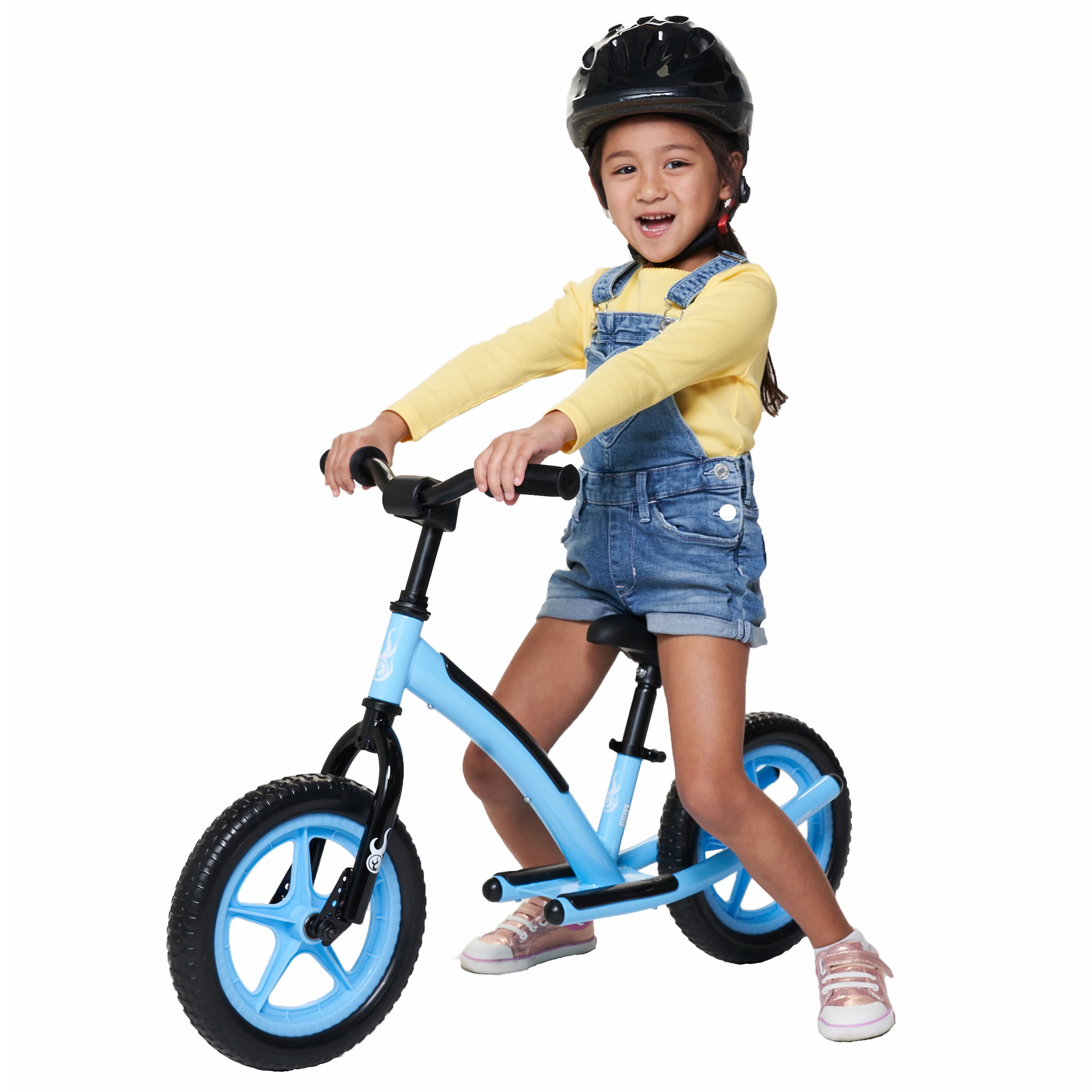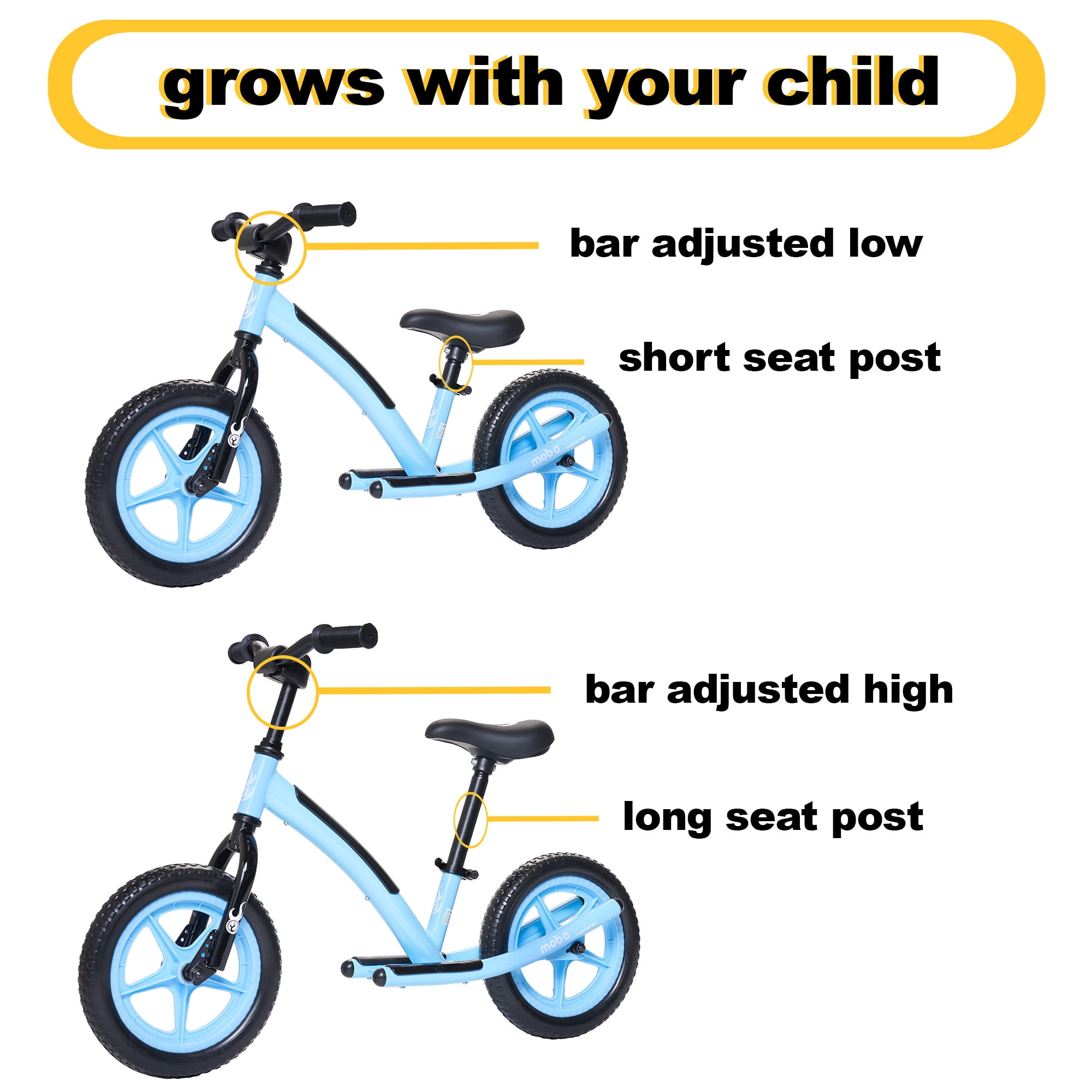 Adjustable seat (and 2 seat posts) fits kids with inseams from 11 to 20-inches. Typically fits kids 2 year old up to 6 year old Comes with both short and long seat posts and adjustable handlebars. Beginning riders can simply rest their feet and get the feel of riding a no-pedal bike. While more advanced riders can use multiple footrest positions to start learning glide bike tricks. Durable never-flat tires don’t require inflation and will never go flat. Thick foam seat covered with real stitched fabric keeps your child comfortable– not an inexpensive machine-pressed foam seat like other balancing bikes. Comes with the 12” balance bike wheels securely attached. Just slide the seat and handlebars into position and tighten with the provided wrench. Safe, durable, yet easy and fun to ride balance bicycle for kids. Specifications: Colors: Red/Pink/Blue/Green Dimension: 35 x 15 x 21 inches Frame Material: Foam, Metal, Rubber Product Weight: 12.97 lbs Weight Capacity: Up to 60lbs Recommended Age: 2 – 6 years old Steering Mechanism: Rear Steering Handlebars Hub: Fixed -Wheel Mechanism Chain Material: Chainless Tire Type: Never Flat Tires Recommended Riding Area: Flat and Smooth Surfaces Gross Weight: 13 lbs Assembly Details: Assembly Required; Tools Provided