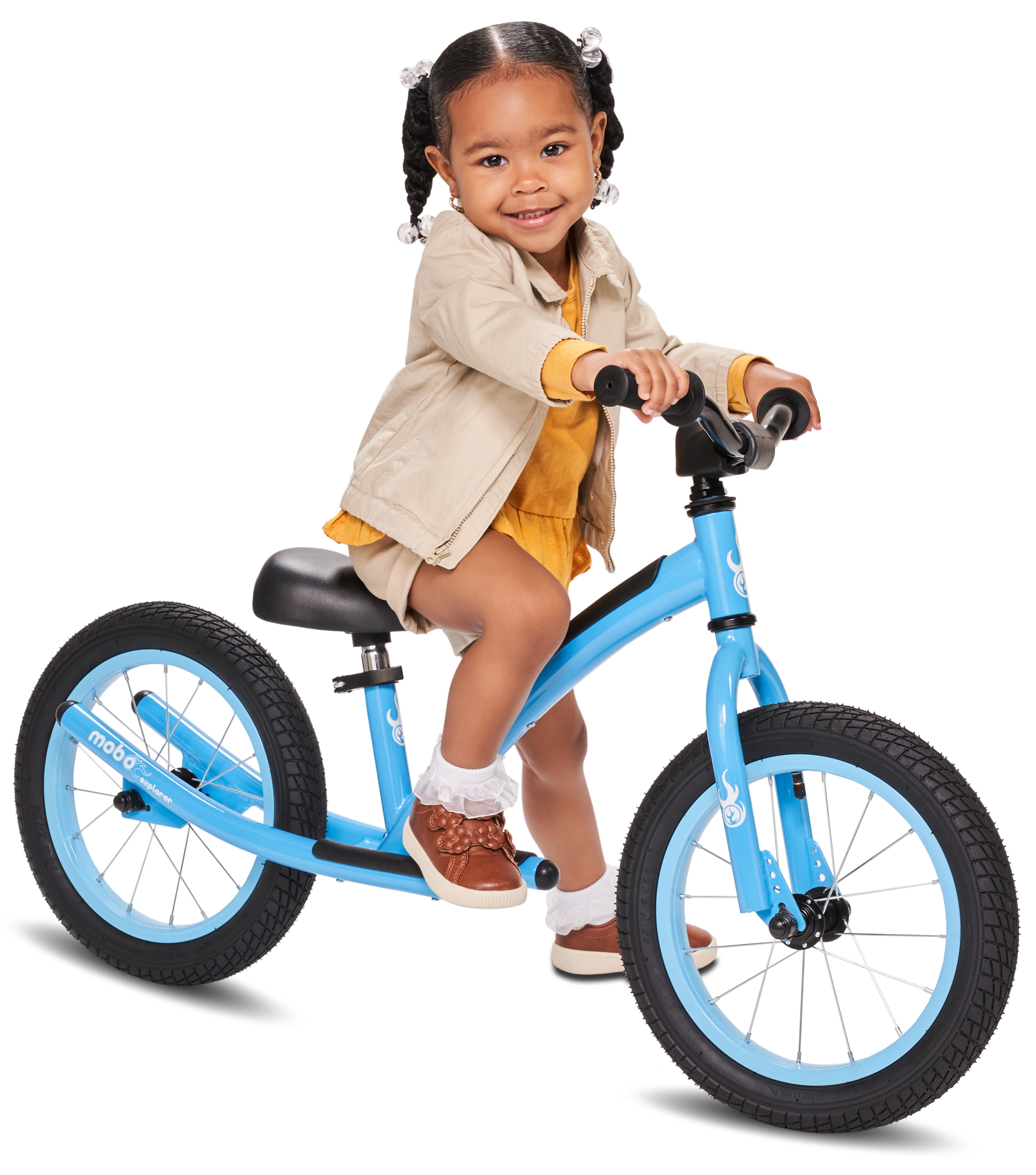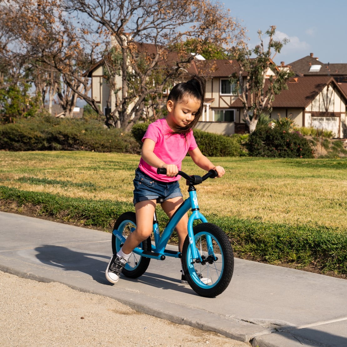 Designed for Safety — A thick handlebar stem pad, padded frame and soft gel grips to protect your child from bumps and bruises – and makes for a safe bike 2 Seat Posts — Short and long seat posts and height adjustable handlebars grow with your child. A kids balance bike for 3-year-olds to 6-year-olds. Fits 11 to 20-inch inseams Multi-Position Footrest — Beginning riders can simply rest their feet and get the feel of riding a no-pedal bike. While more advanced riders can use multiple footrest positions to learn tricks Alloy Wheels — Lightweight 14-inch aluminum alloy wheels are easy to handle and wide air-filled bike tires have outstanding grip. A pedal-less balance bike for kids learning to ride a bicycle Mostly Assembled — Comes with 14” balance bike wheels securely attached. Just slide the seat and handlebars into position and tighten with the provided wrench