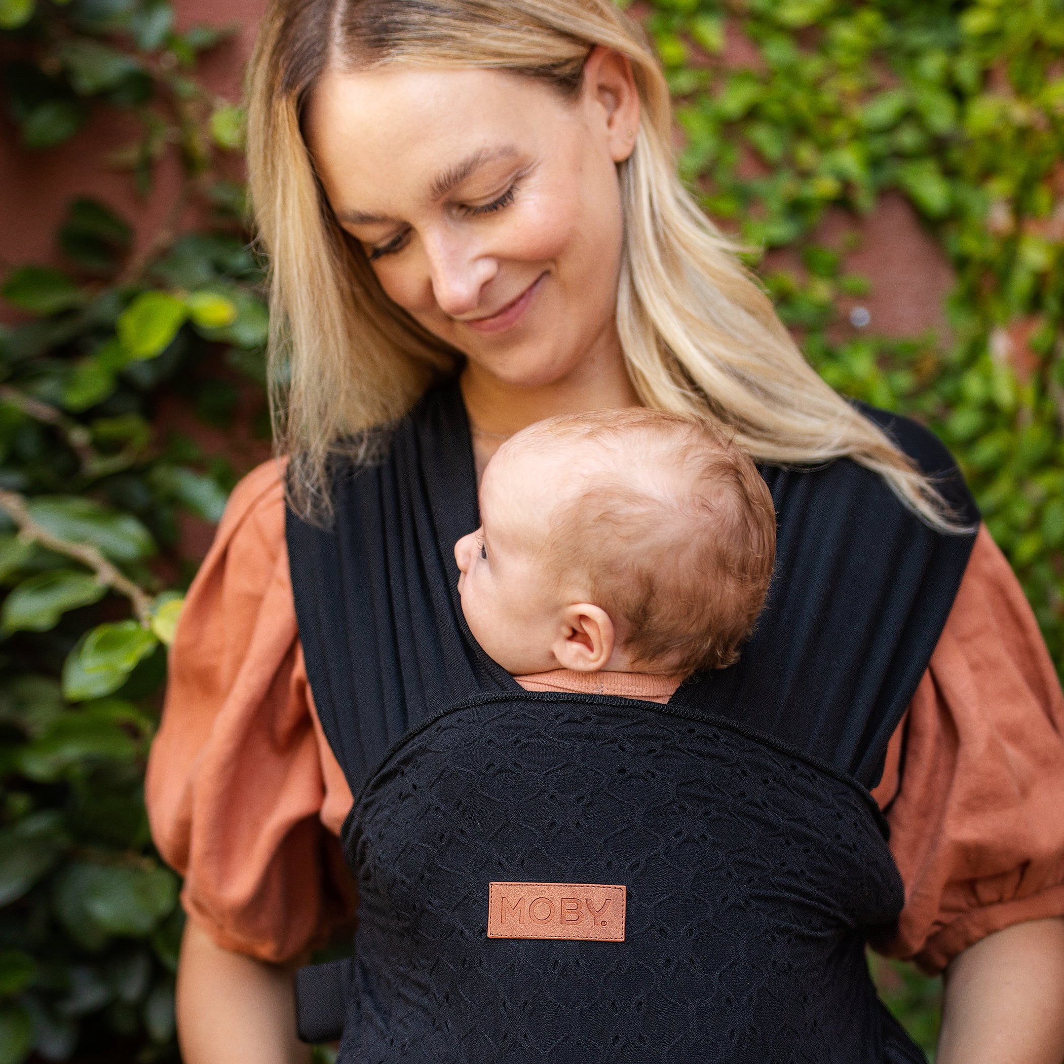 MOBY Easy-Wrap Baby Carrier in Black Eyelet