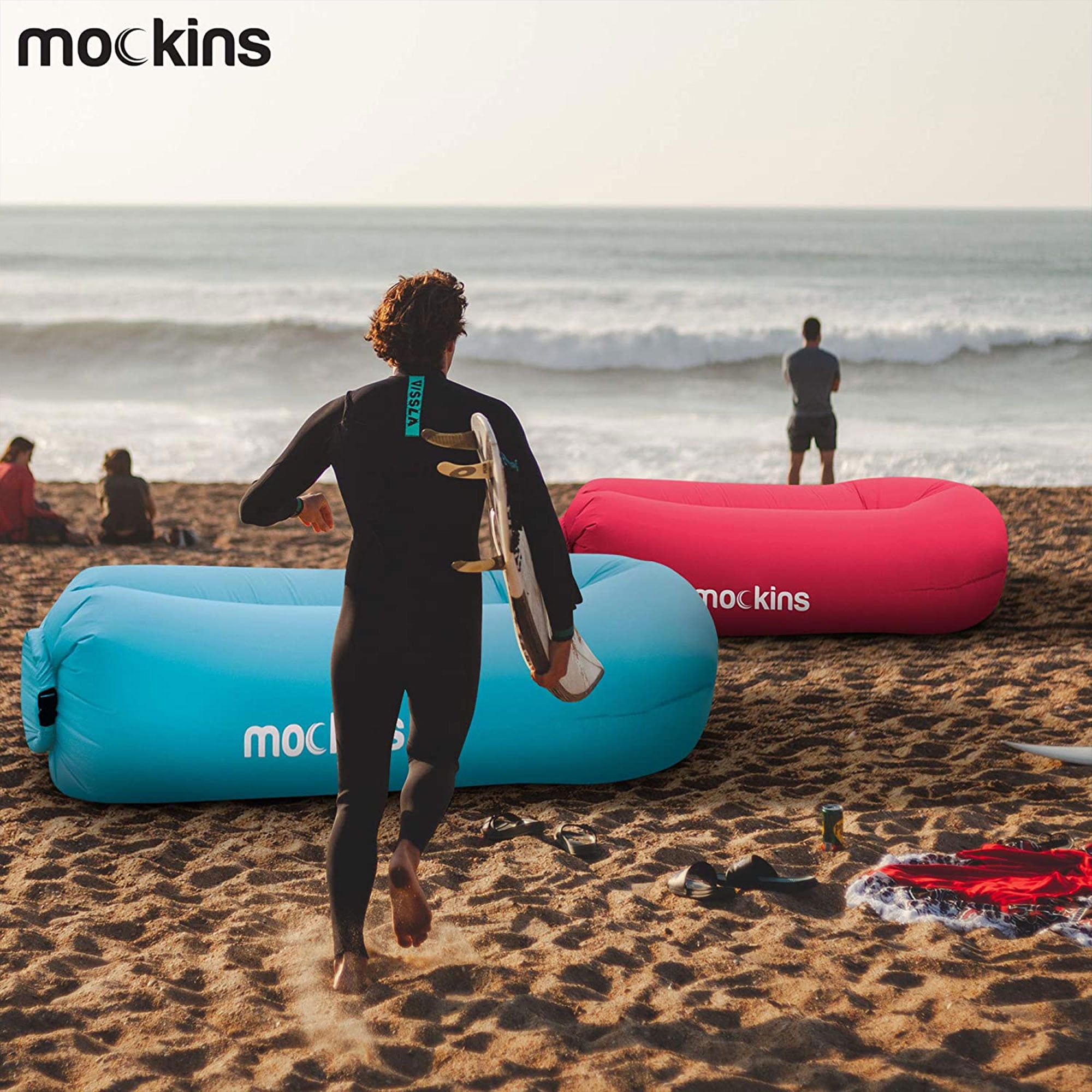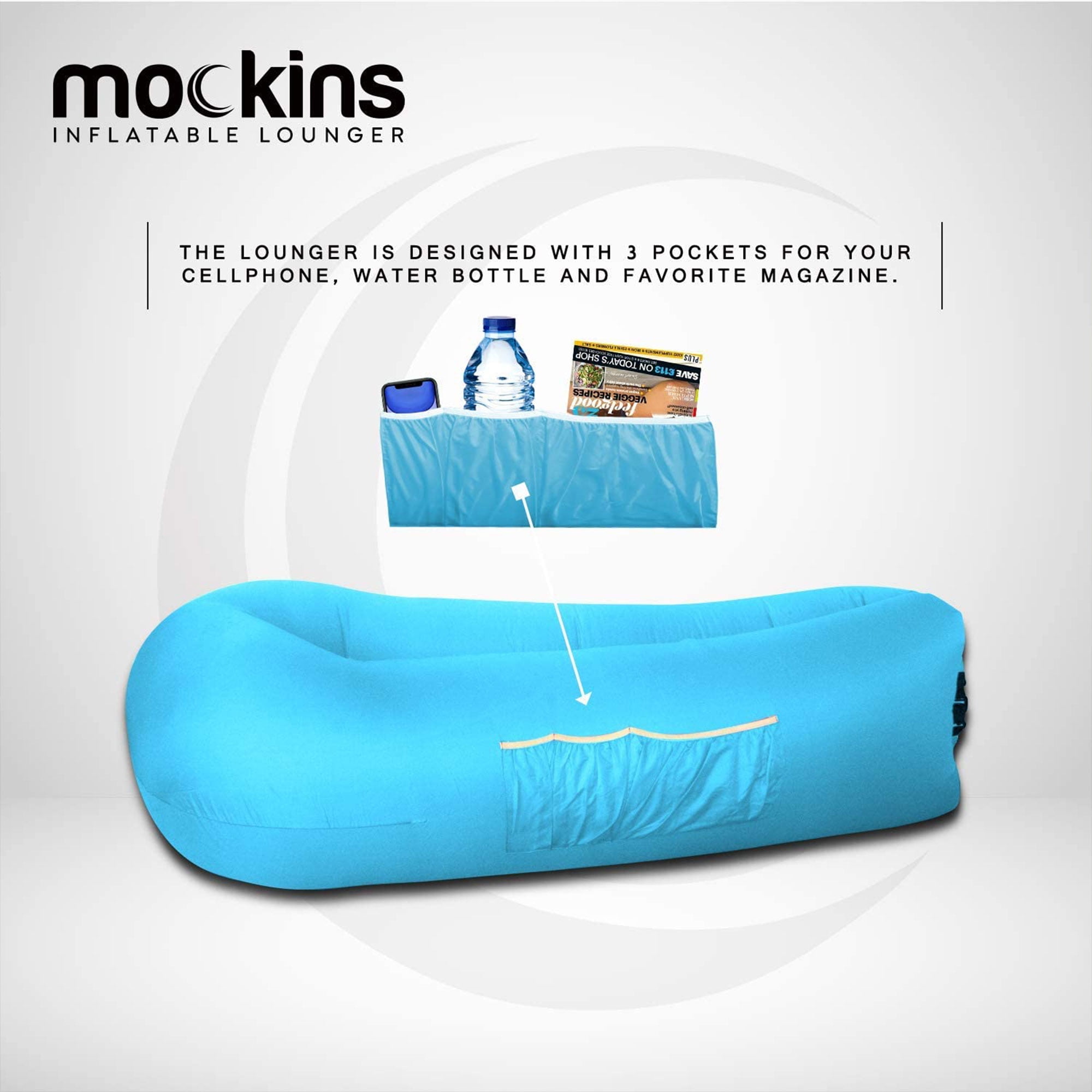 Get comfy wherever you’re at with the Mockins Inflatable Air Lounger. This inflatable lounger makes hanging out at your favorite spots more convenient, comfortable, and fun. From beaches and pool sides, to campsites, picnics, and house parties, inflatable loungers are the perfect way to get comfortable whenever you want. With a shake through the air, these loungers are quickly inflatable for a quick nap. 3 built-in pockets secure the snacks or your phone that you want to keep handy. The design minimizes air loss and maximizes the period of inflation. Enjoy them as a kid during family events or as an adult out with friends. Once finished, simply roll or fold the air out of your Mockins lounger and place back in its bag. This pack comes with 2 loungers, perfect for taking a friend with you to enjoy a nice day at the park or the beach. The loungers are colored pink and blue. Enjoy the outdoors in comfort with the Mockins Inflatable Air Lounger.