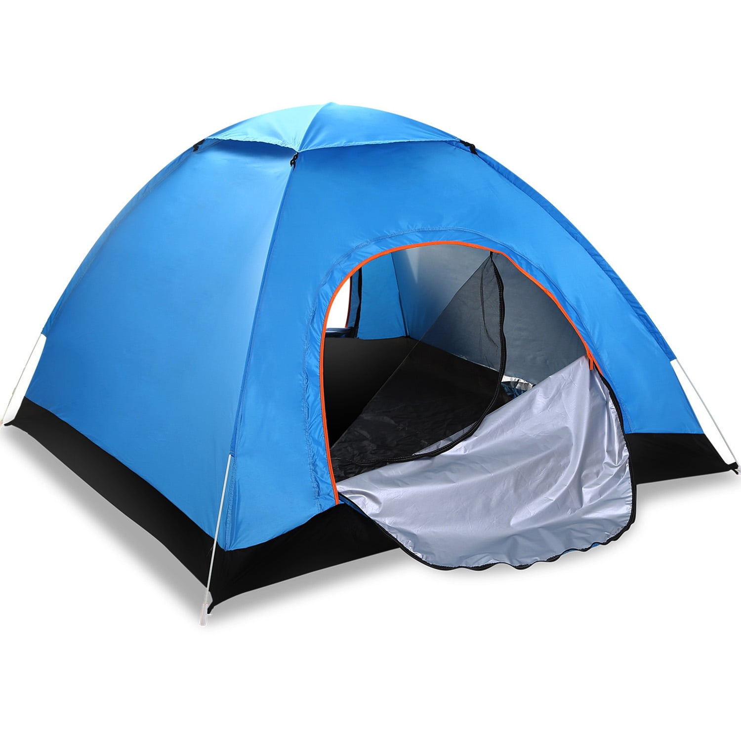Moclever 3-4 Persons Pop up Tent 3.04lbs Camping Tent Outdoor Folding Waterproof Tent 6.56×6.56×4.26ft with 2 Mosquito Net Doors Carrying Bag for Hiking Climbing Fishing, Blue