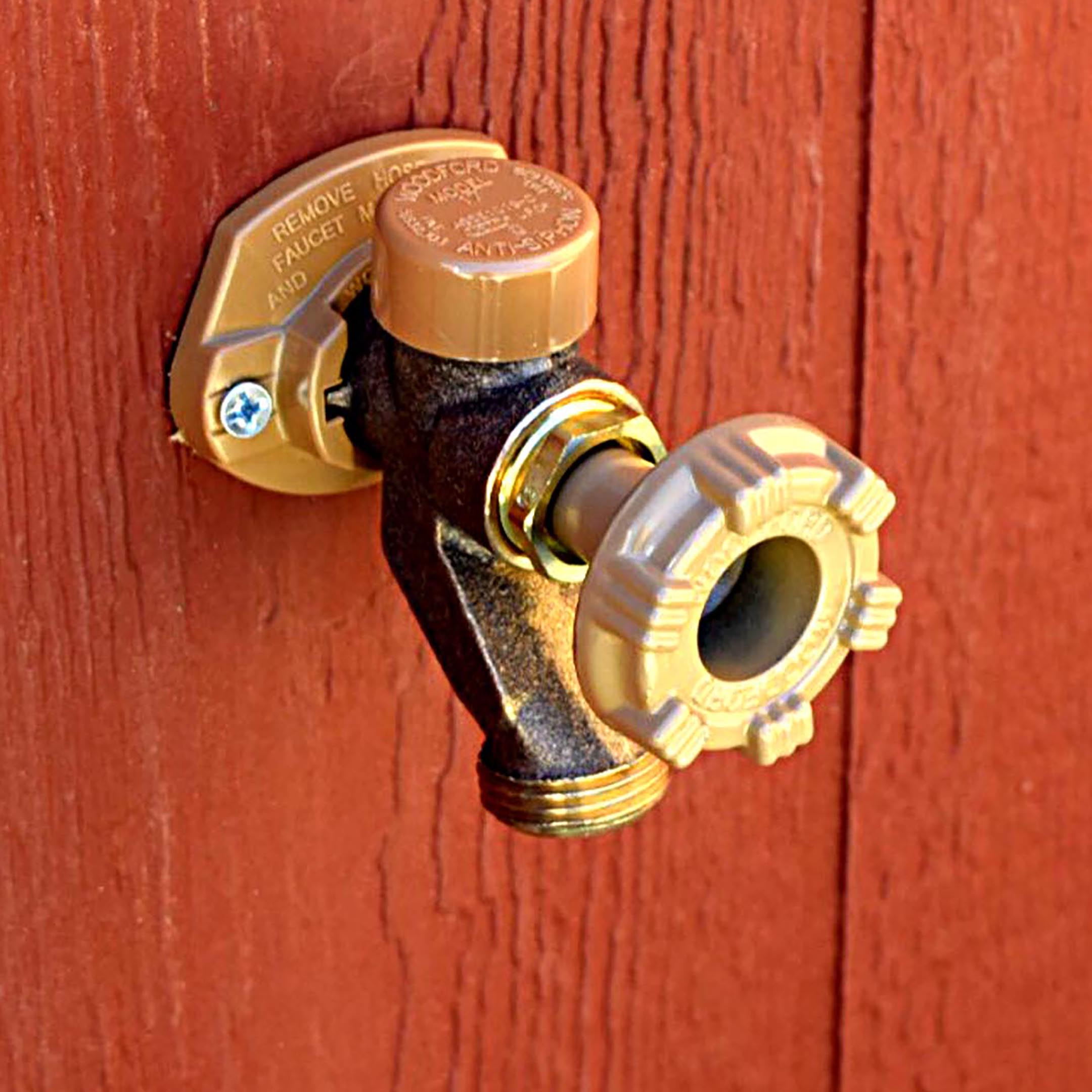 The freezeless Model 17 anti-siphon protected outdoor wall faucet is designed and intended for year-round residential irrigation purposes regardless of outside temperature. This faucet will not rupture from freezing when the valve is shut off and the hose is removed. The model 17 contains an integral backflow protection device which protects up to 125 PSI of backpressure and therefore does not require an add-on vacuum breaker. Round, powder-coated, die-cast aluminum handle. Woodford, The Choice of Professionals.