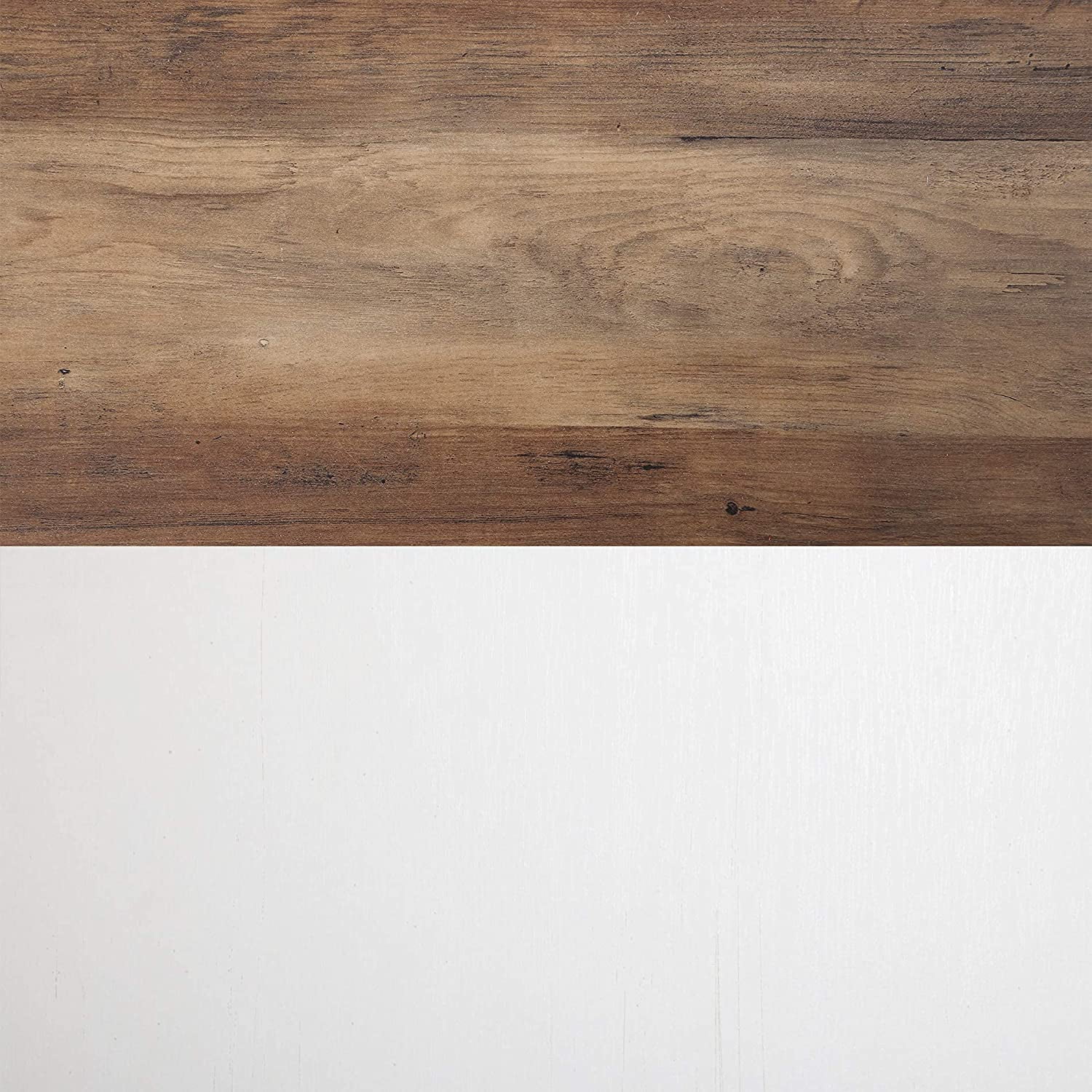 This TV Stand brings rustic farmhouse style and extra storage to your living room. Its clean-lined frame is made from engineered wood. This TV stand has two barn-style cabinet door that slides open on a black metal track, revealing open shelf space. Plus, this tv stand comes with extra two open storages that let you media, electronics, accessories, and other items.