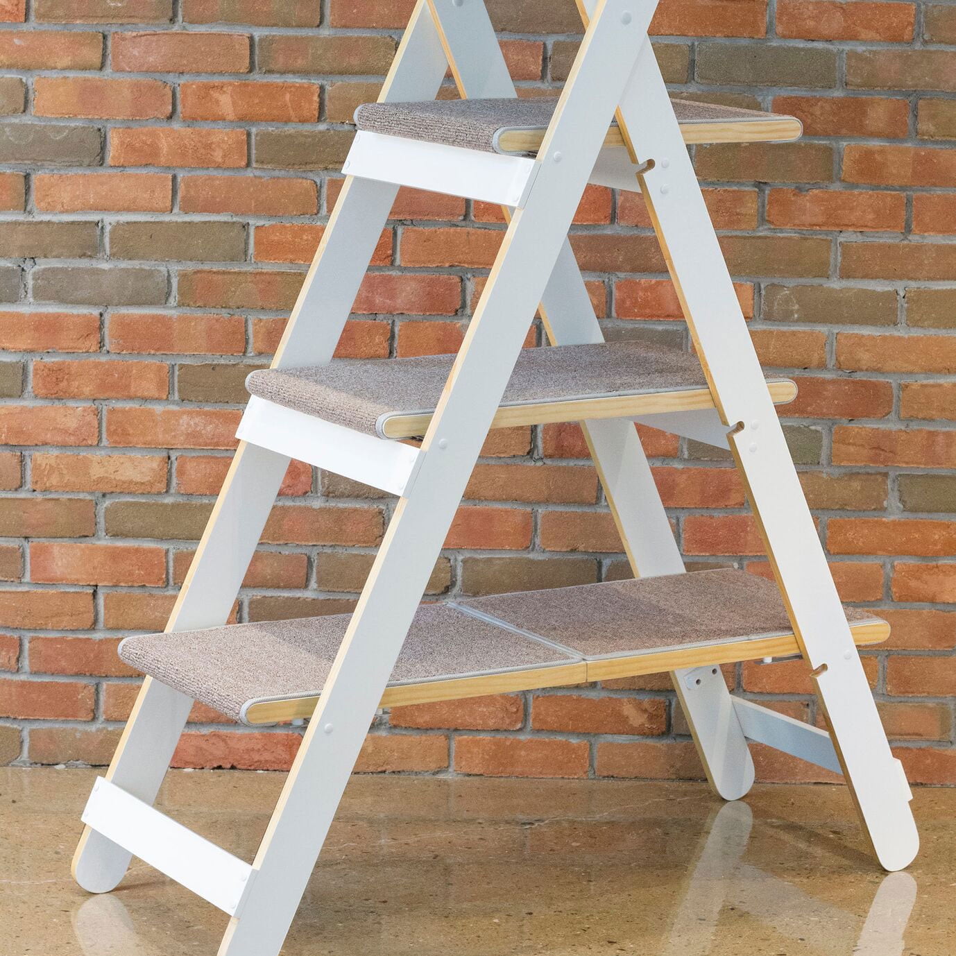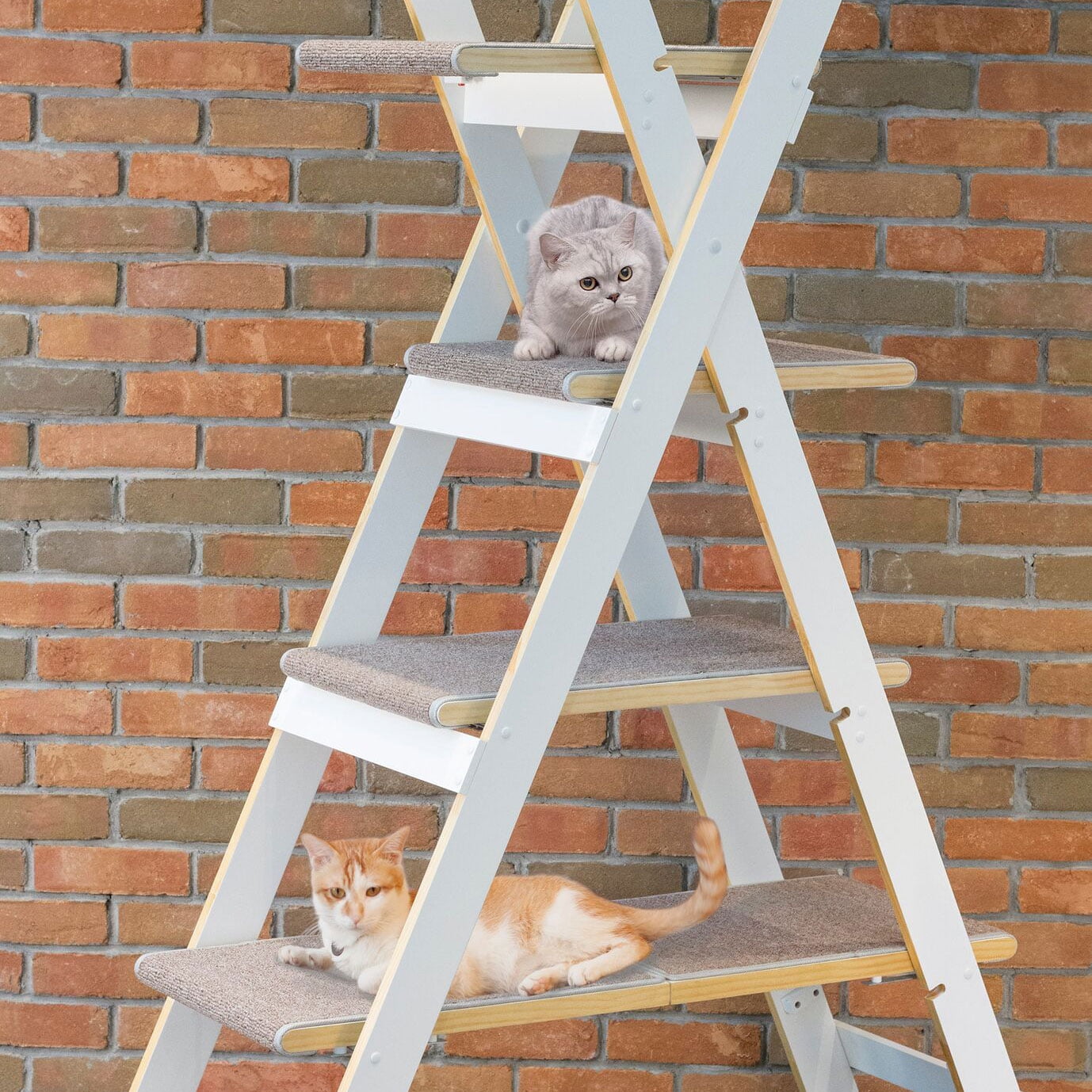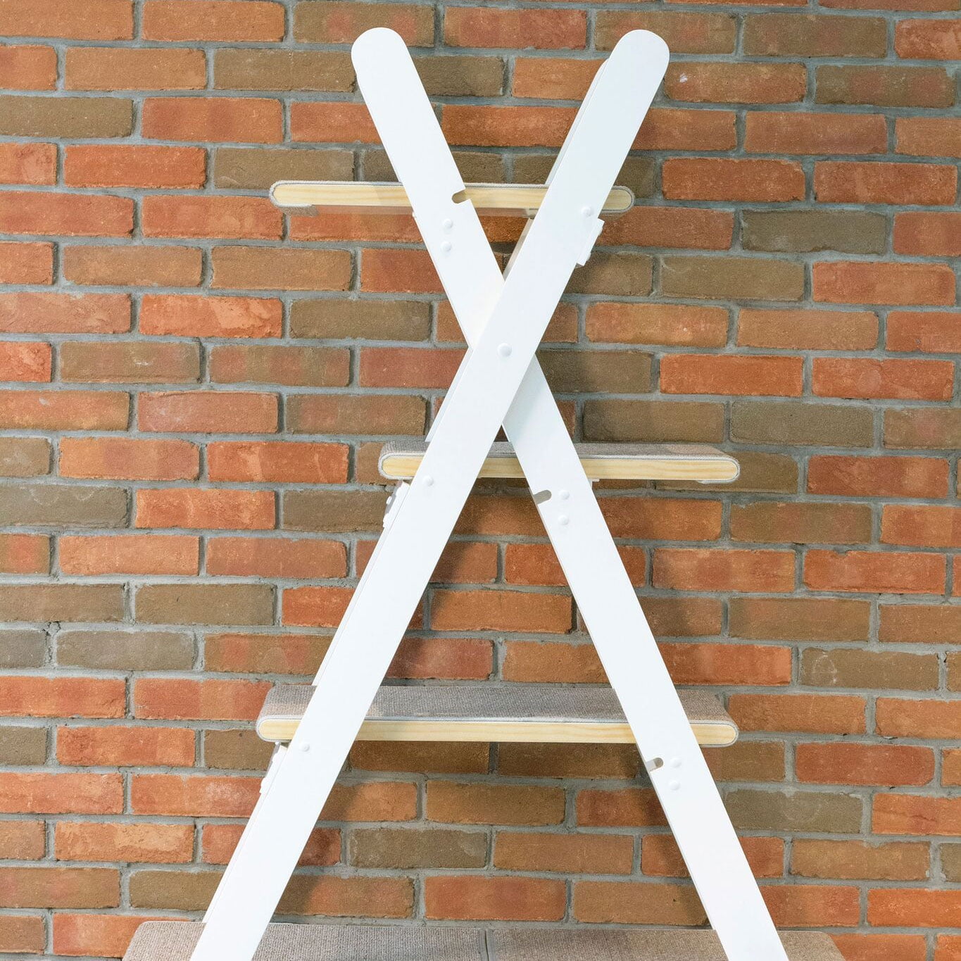 Fully carpeted shelves that your cat will love to scratch on Easily folds for compact storage use Wooden, modern style will fit in perfectly with your home’s furniture Keeps your cat or kitten entertained all day long Color: White Dimensions (L x W x H): 16. 85 x 40. 16 x 60. 24 inches Weight: 34. 17 pounds Weight capacity: 176. 37 pounds