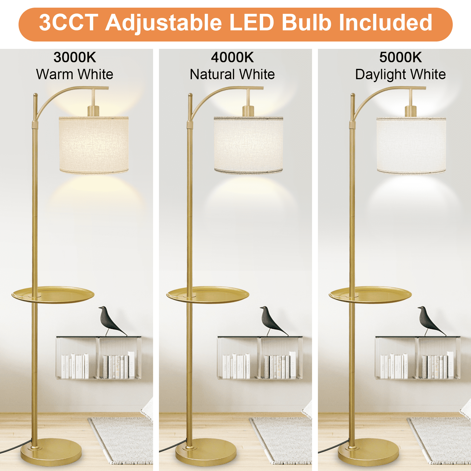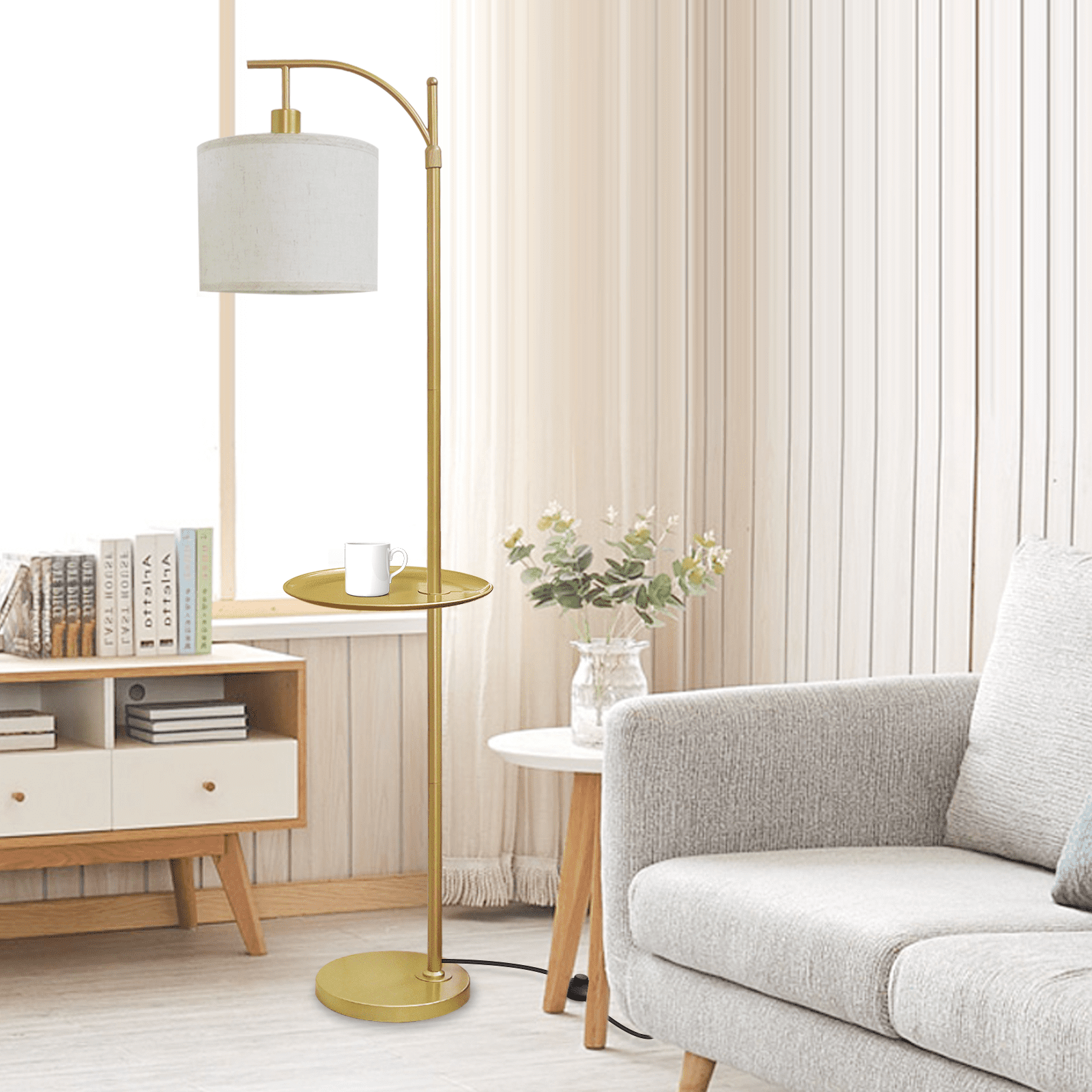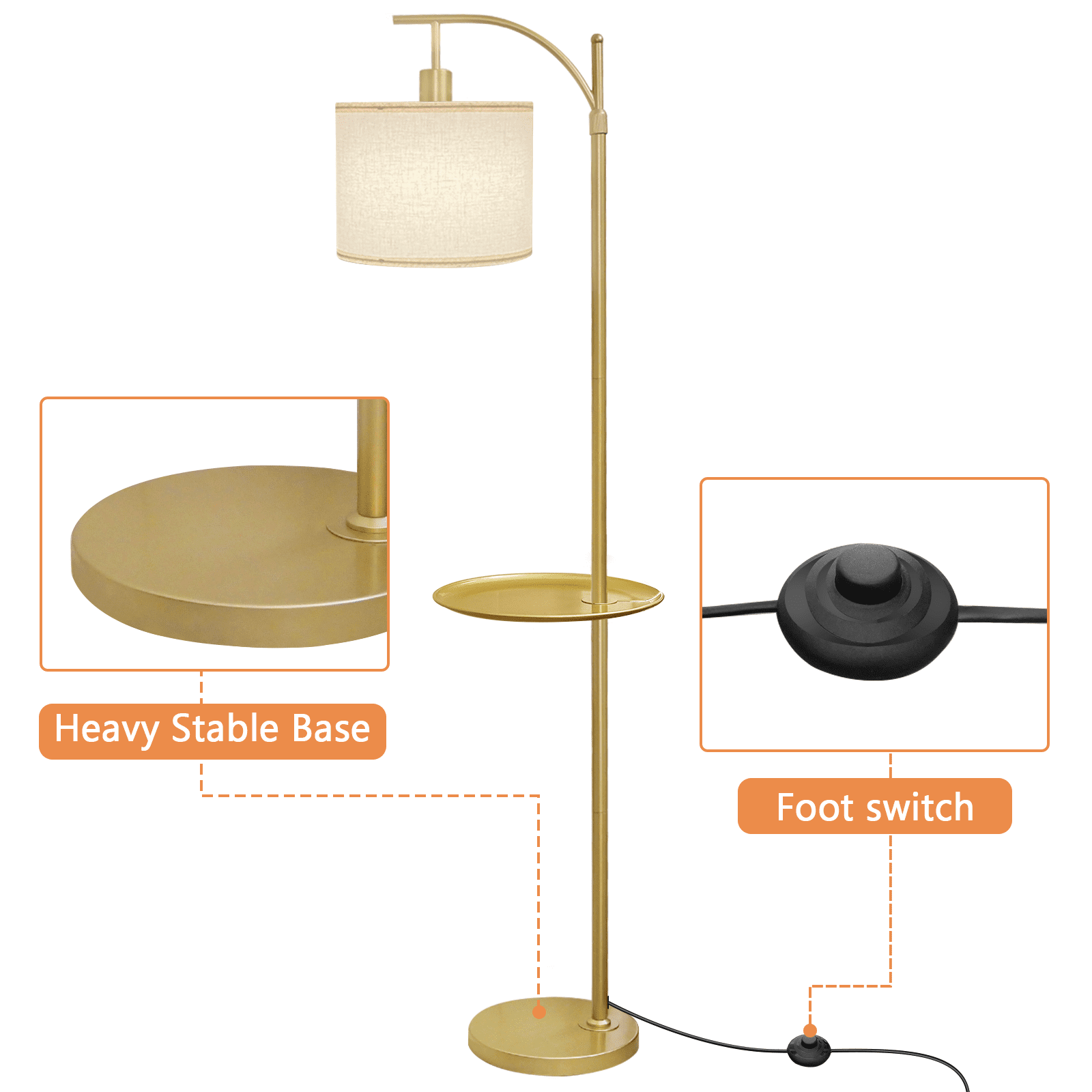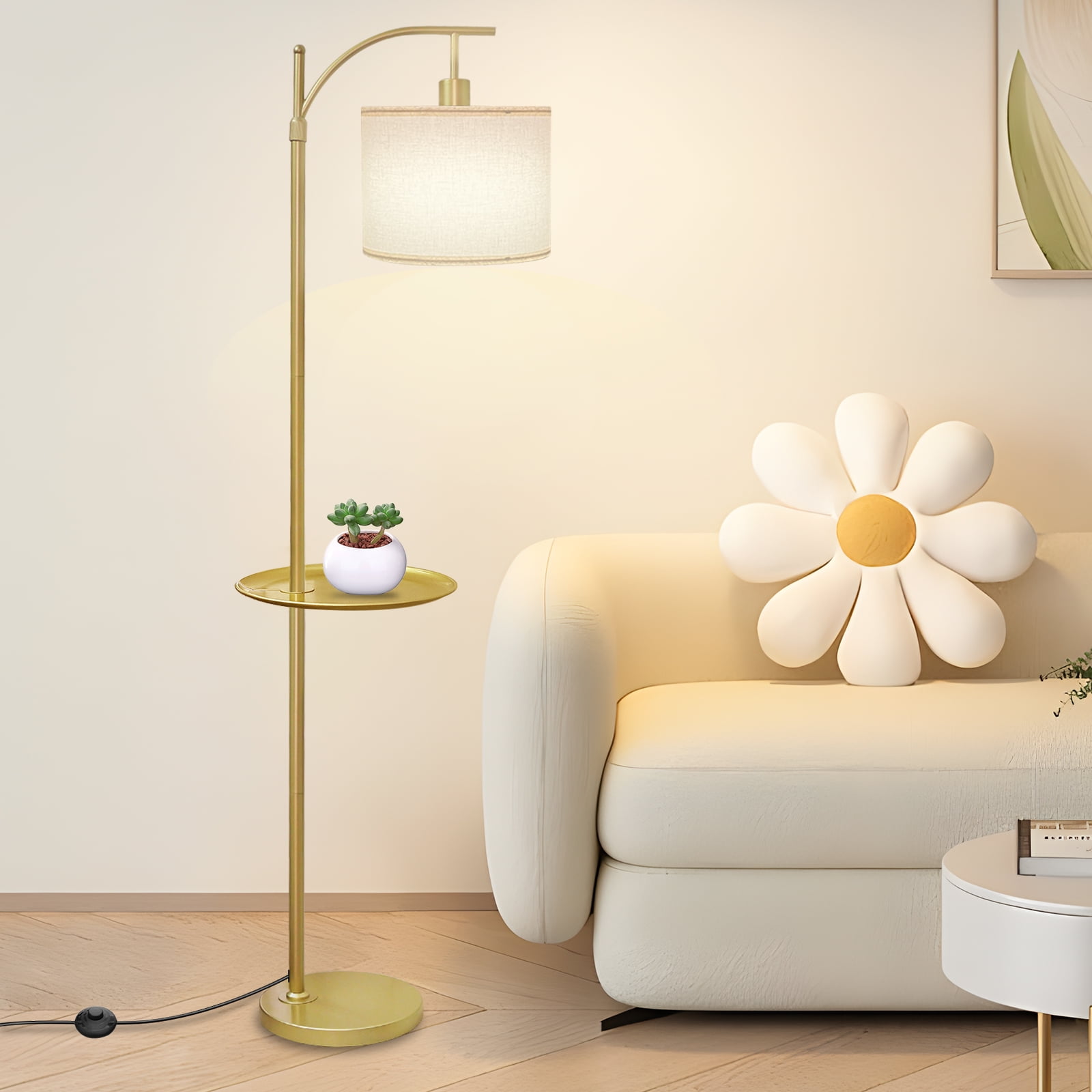 | Model | Modern Gold Arc Floor Lamp with Table Attached |