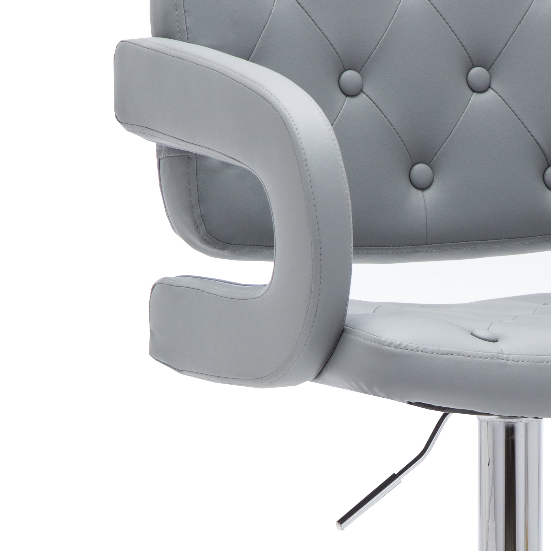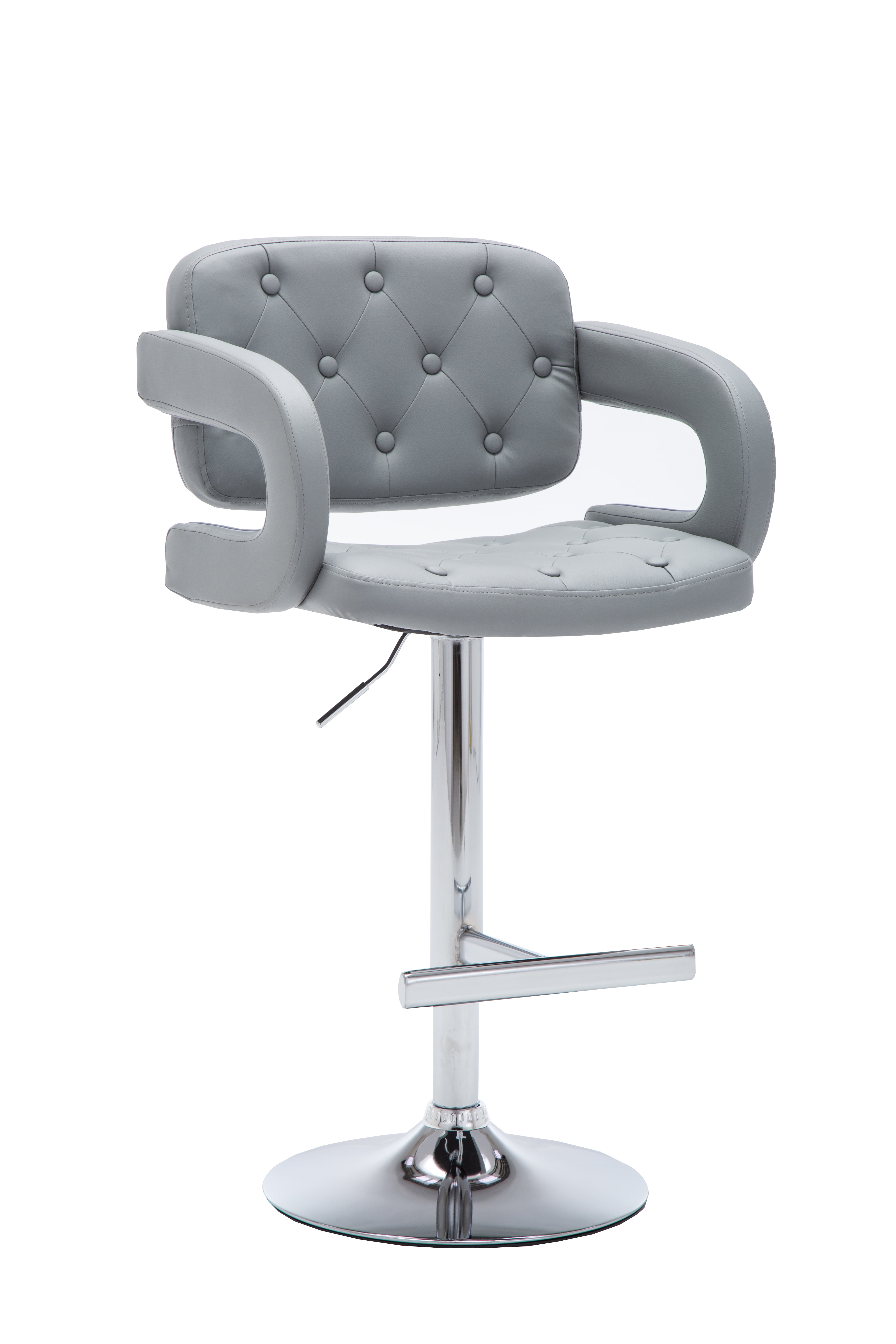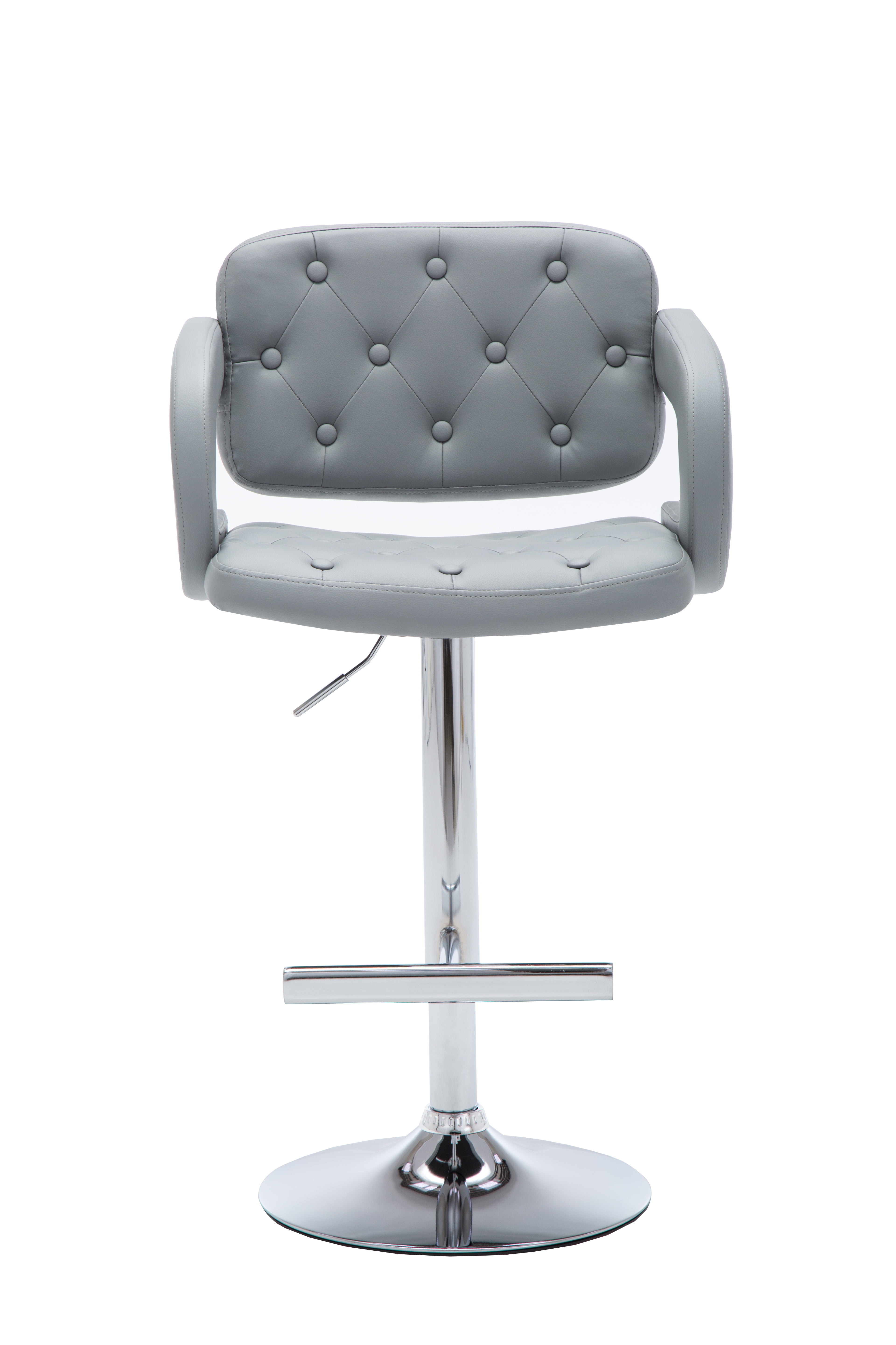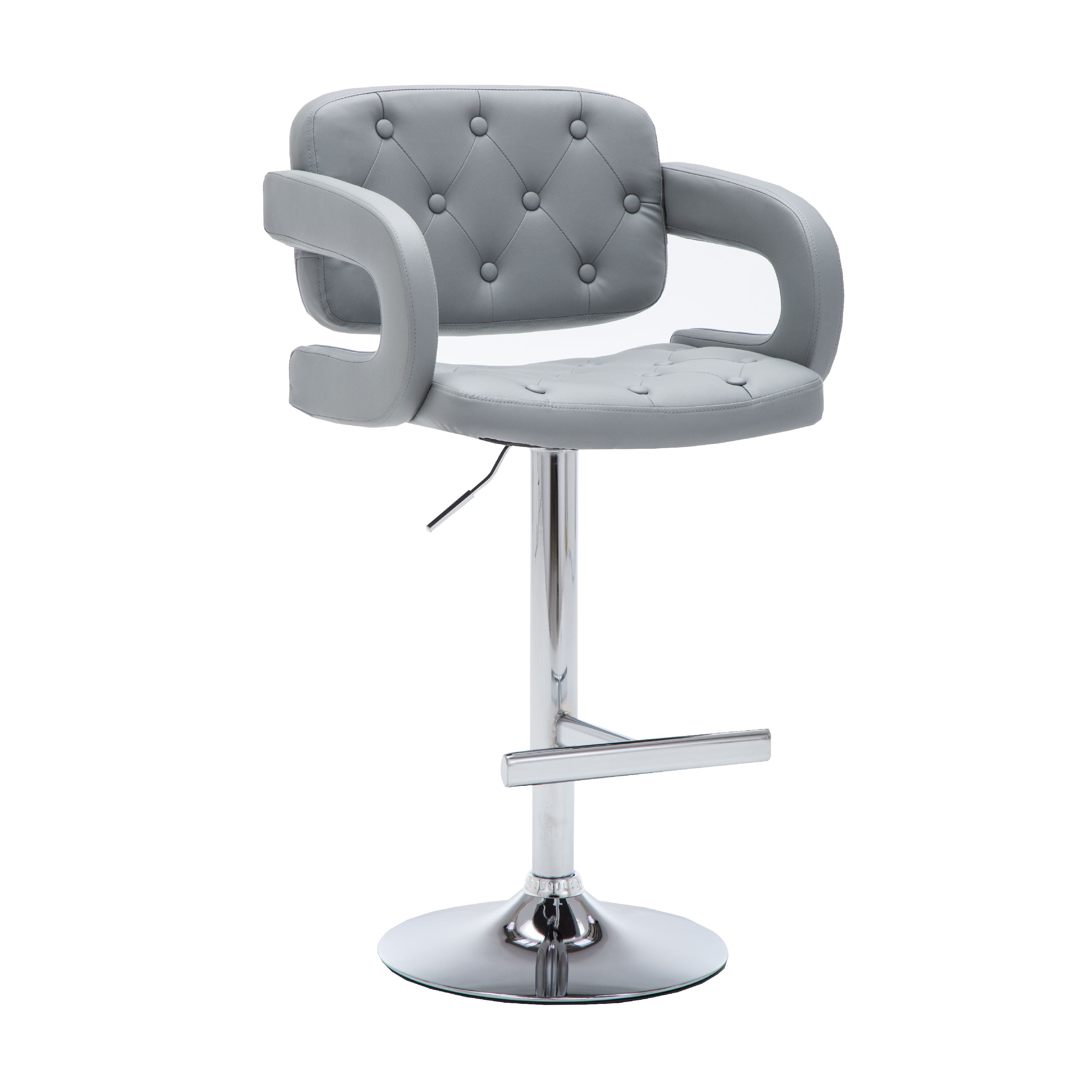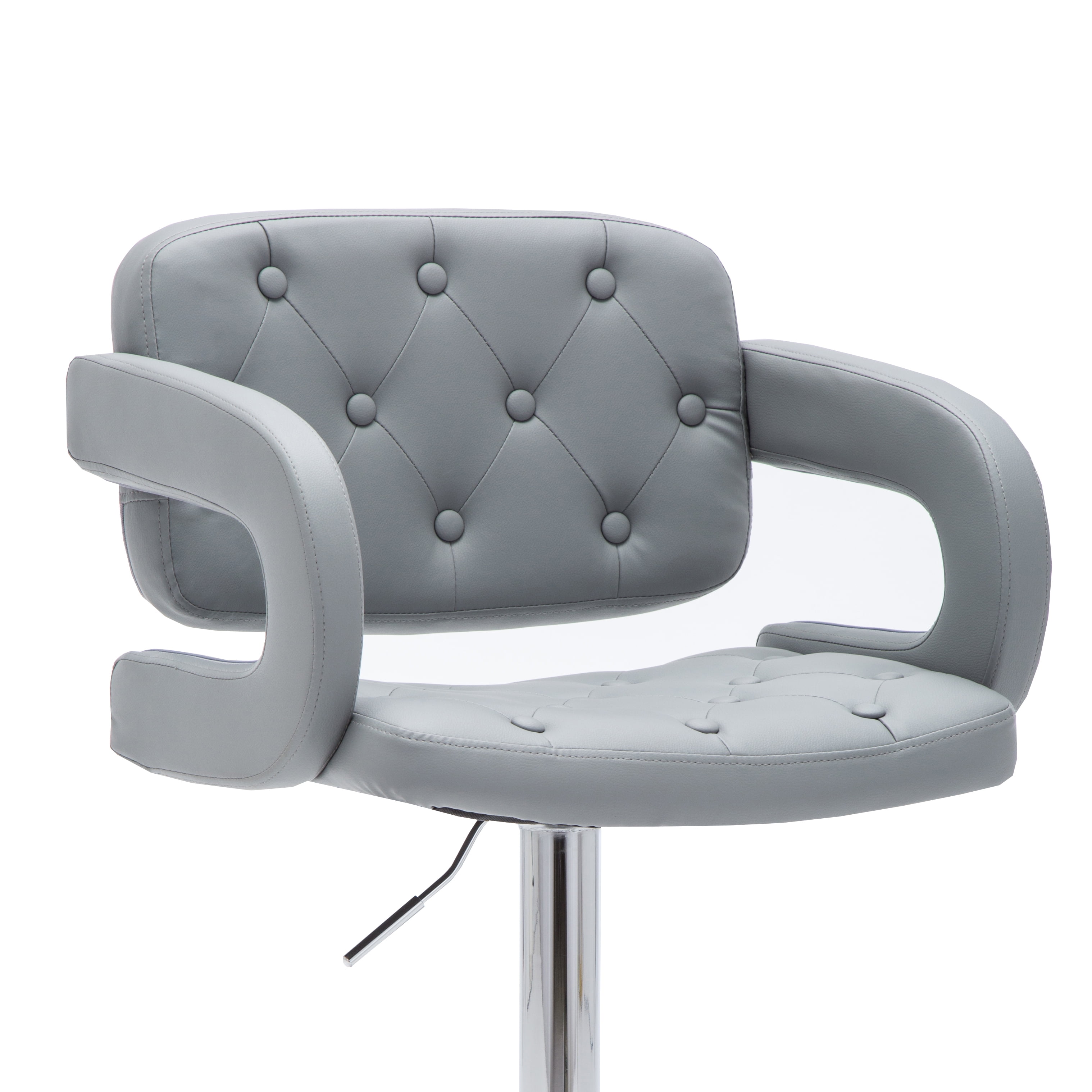 Modern Gray Leather Adjustable Button-tufted Upholstered Barstool