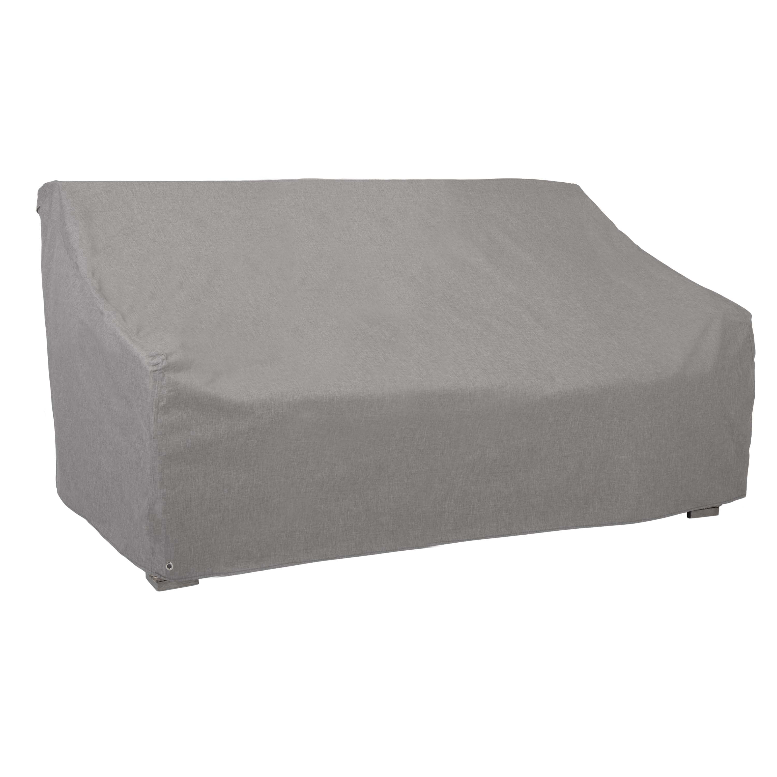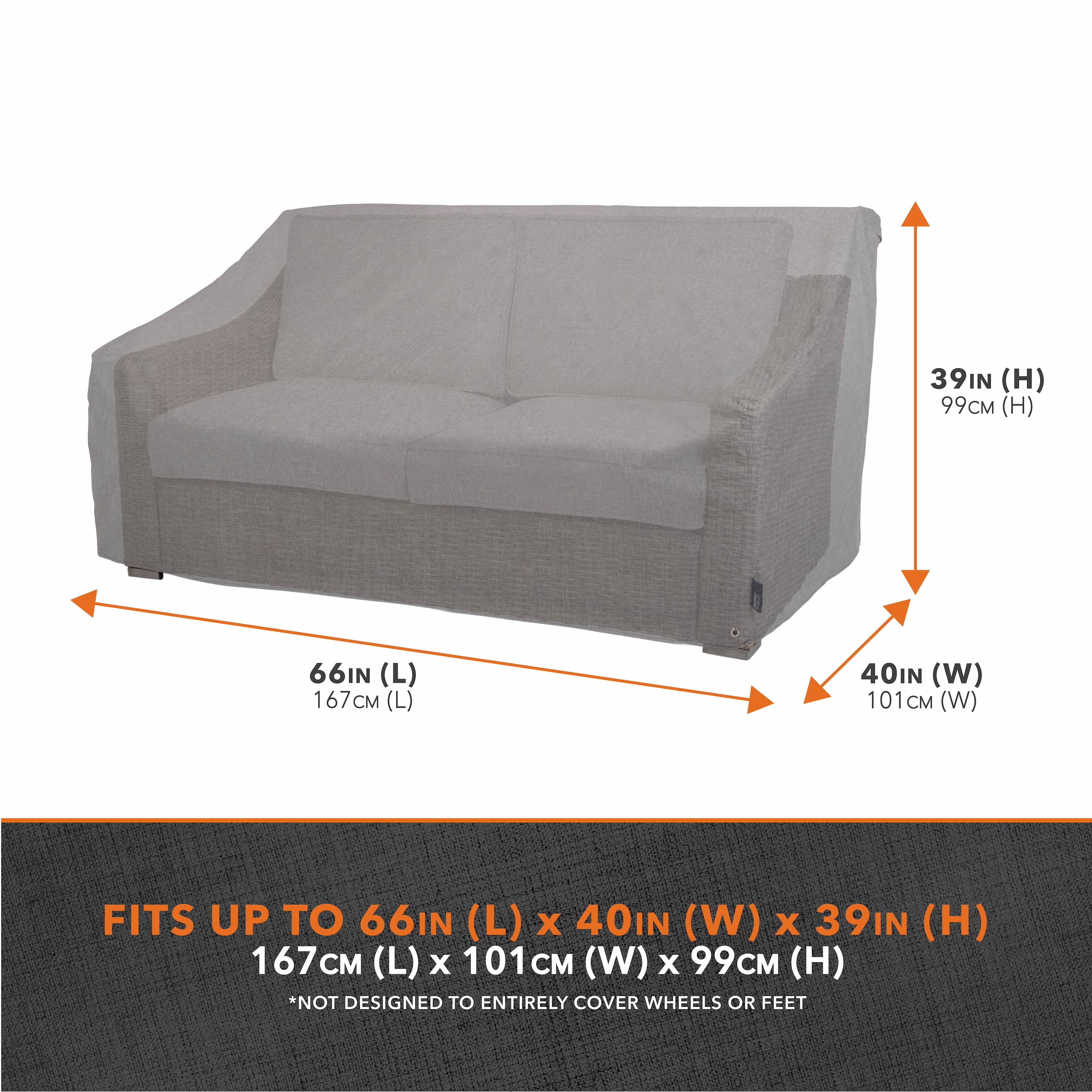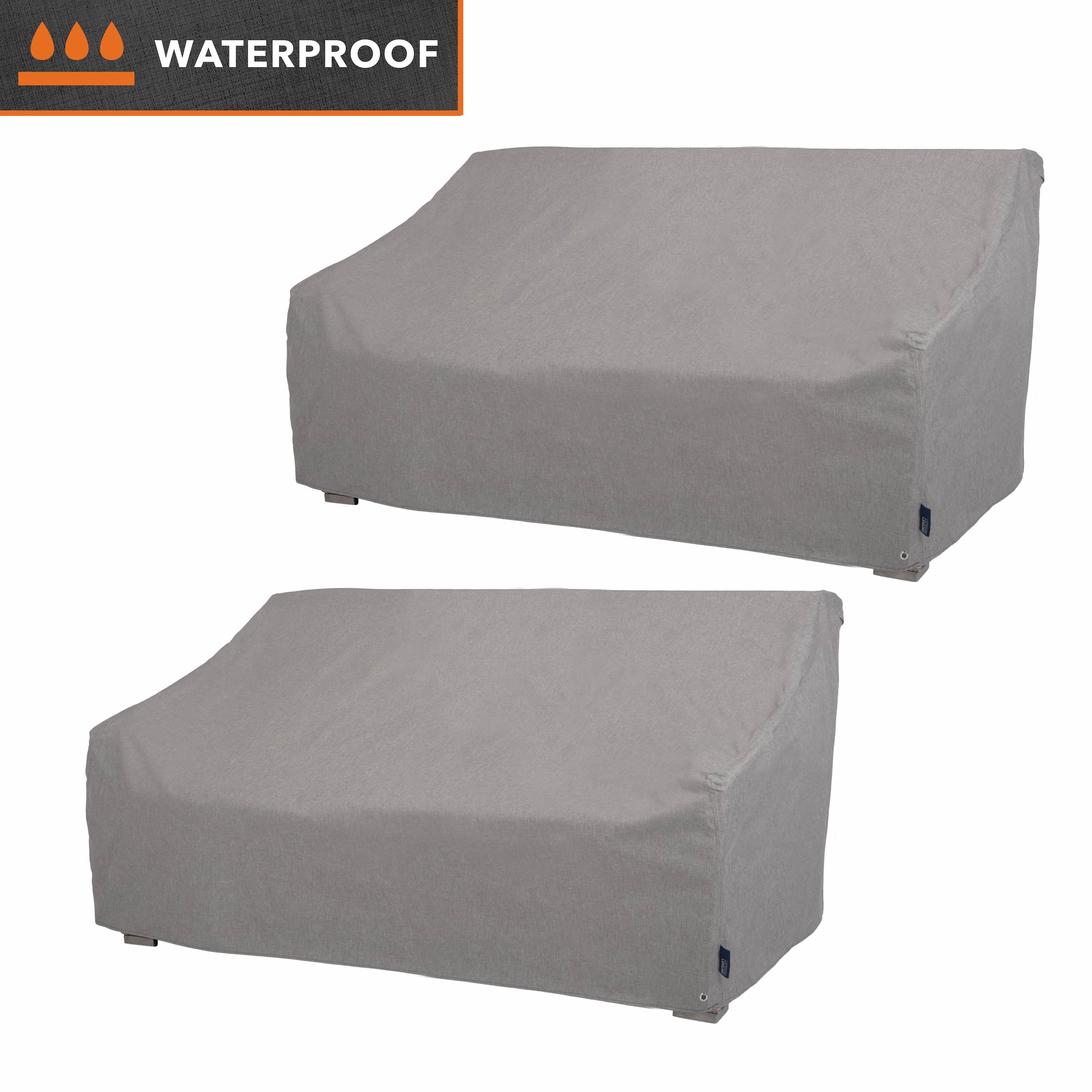 LOVESEAT & SOFA COVER: Fits most patio loveseats & sofas up to 66-inches long x 40-inches wide x 39-inches high (2-Pack). EASY TO CLEAN & WARRANTY: Loveseat cover can be easily spot cleaned with a damp cloth—3-year manufacturer warranty against material defects from weather-related wear & tear or UV exposure. HOME DÉCOR: Heather gray color matches most home environments & décor. DURABLE & SECURE FIT: Base grommet for ties & 4 leg buckles help provide you a secure, custom-like fit during inclement weather & high winds—not designed to entirely cover wheels or feet. MINIMIZES CONDENSATION: Built-in air vents offer maximum ventilation, allowing drafting to prevent your cover from blowing away in high winds while minimizing mold & mildew buildup. 100% WATERPROOF COVER: Durable material has reinforced, taped seams to keep your patio loveseat clean & protected from the elements while excellent UV resistance helps reduce fading over time.