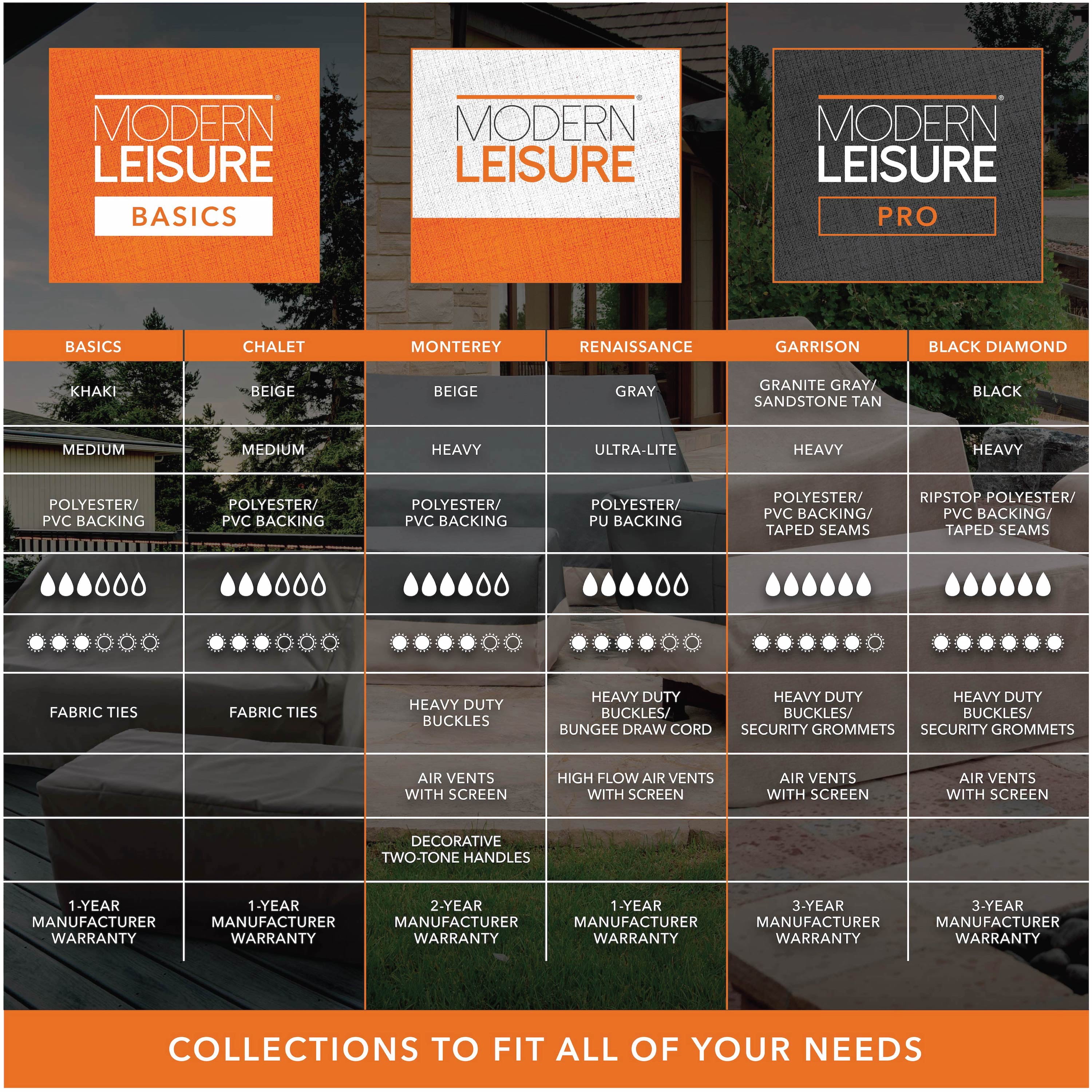 The Garrison Waterproof Patio Loveseat Covers combines durability with an elegant aesthetic, capable to stand-up against some of the harshest weather mother nature has to offer. Pack includes 2 loveseat covers designed with taped seams to help keep out water, dirt, and debris, keeping your investment clean and protected from outdoor elements. Loaded with features, the Garrison Waterproof Collection provides our strongest warranty protection with a 3-year manufacturer warranty—Stay protected with Modern Leisure. Modern Leisure Patio Furniture Covers stand up to the harshest weather elements. Enhancing your outdoor living space and protecting your investments is a commitment we take very seriously. Spend more time outdoors with loved ones and safeguard your leisure lifestyle.