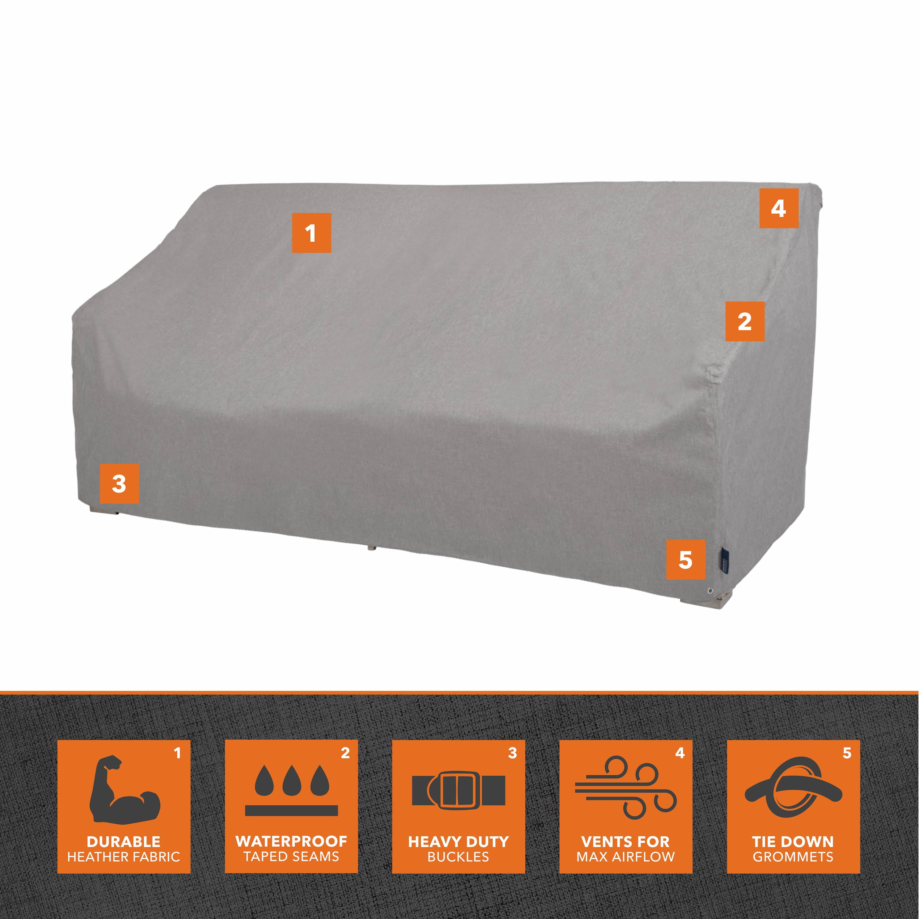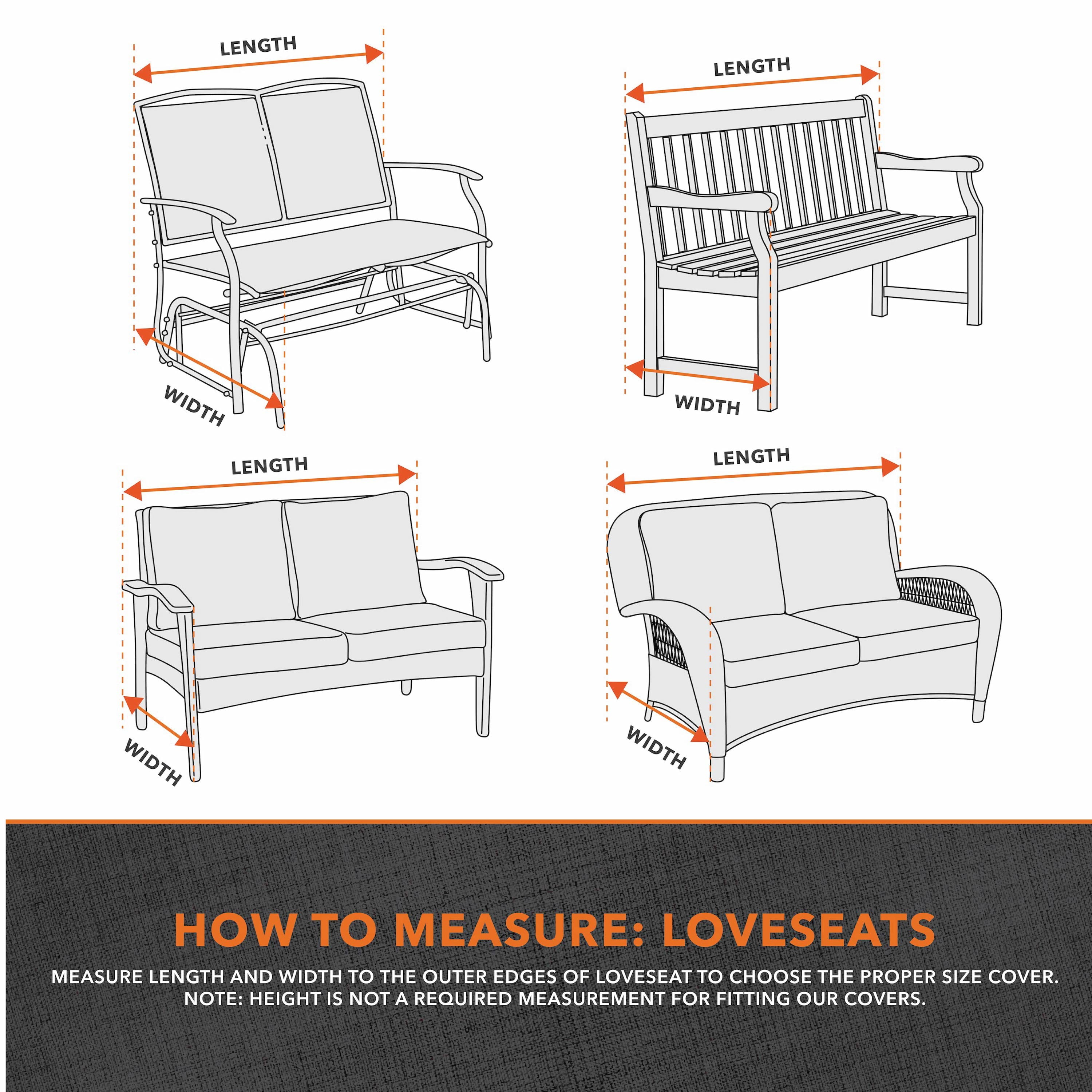 LOVESEAT & SOFA COVER: Fits most patio loveseats & sofas up to 76-inches long x 38-inches wide x 38.25-inches high (2-Pack). 100% WATERPROOF COVER: Durable material has reinforced, taped seams to keep your patio loveseat clean & protected from the elements while excellent UV resistance helps reduce fading over time. DURABLE & SECURE FIT: Base grommet for ties & 4 leg buckles help provide you a secure, custom-like fit during inclement weather & high winds—not designed to entirely cover wheels or feet. MINIMIZES CONDENSATION: Built-in air vents offer maximum ventilation, allowing drafting to prevent your cover from blowing away in high winds while minimizing mold & mildew buildup. EASY TO CLEAN & WARRANTY: Loveseat cover can be easily spot cleaned with a damp cloth—3-year manufacturer warranty against material defects from weather-related wear & tear or UV exposure. HOME DÉCOR: Granite color matches most home environments & décor.