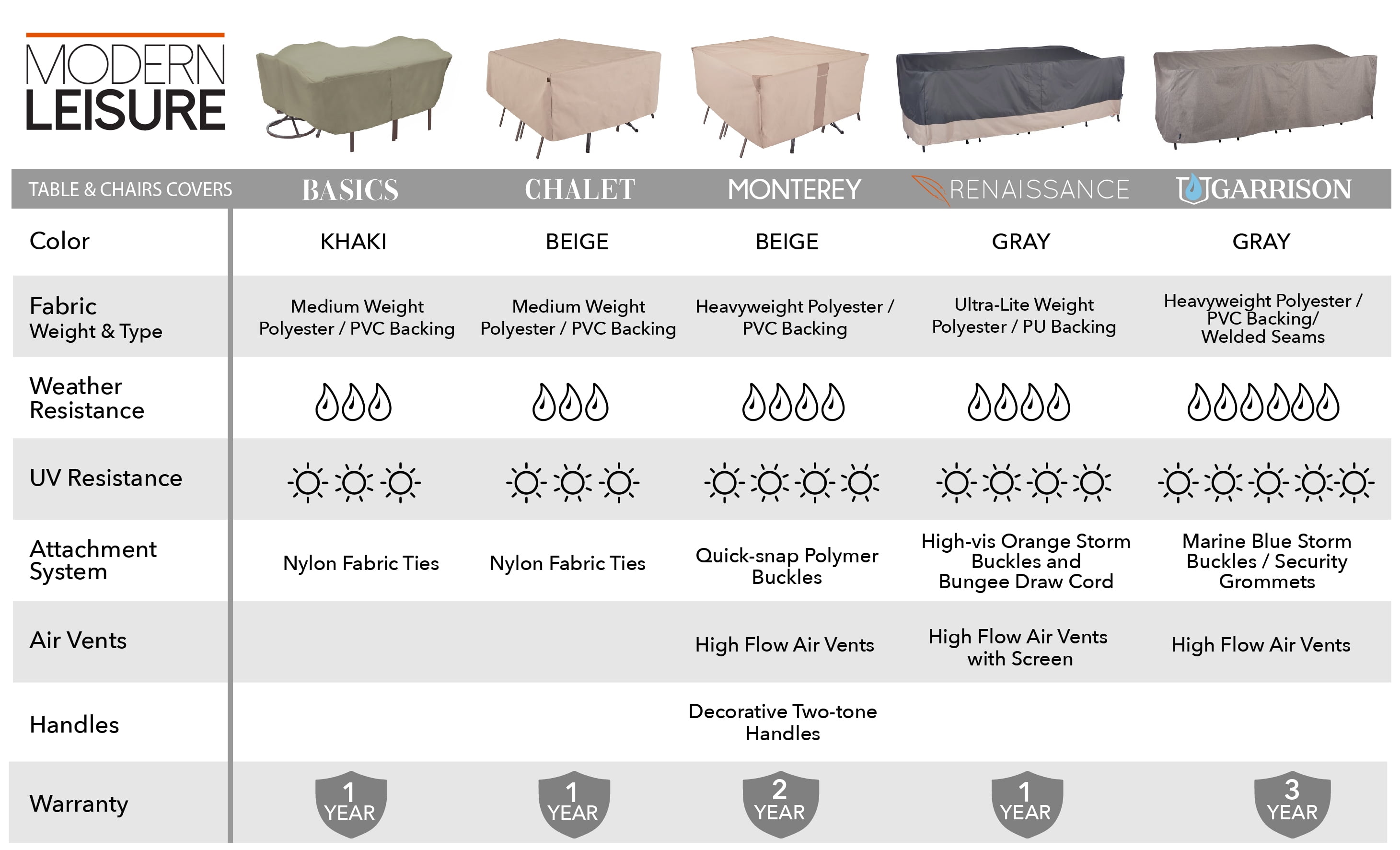 Modern Leisure Garrison Waterproof Rect/Oval Patio Table & Chair Set Cover, 108″L x 64″W x 34″H, Gray
