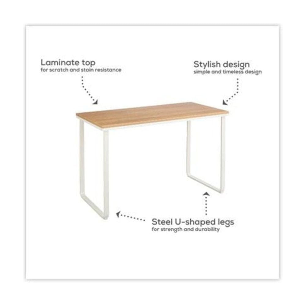 Be simply the best with this Steel Workstation! The simple design and slim profile of this workstation means it’s a perfect fit for every workspace, no matter the existing decor. It’s steel, U-shaped legs create smooth lines that will make you do a u-turn for another look! To expand on its intrigue, the workstation also features a wood top. The Steel Workstation is the perfect touch to help your work area have a little style without sacrificing function. Features: Style without sacrificing function Beech & White Finish Wood Laminate Top Steel U-shaped legs Desk provides plenty of space Modern Table Desk Specifications: Product Color: Maple Frame Material: Metal Desk Dimensions: 24″D x 47.25″W x 28.75″H Product Weight: 32.2 Lbs. Weight Capacity: 150 Lbs. Assembly Required: Yes