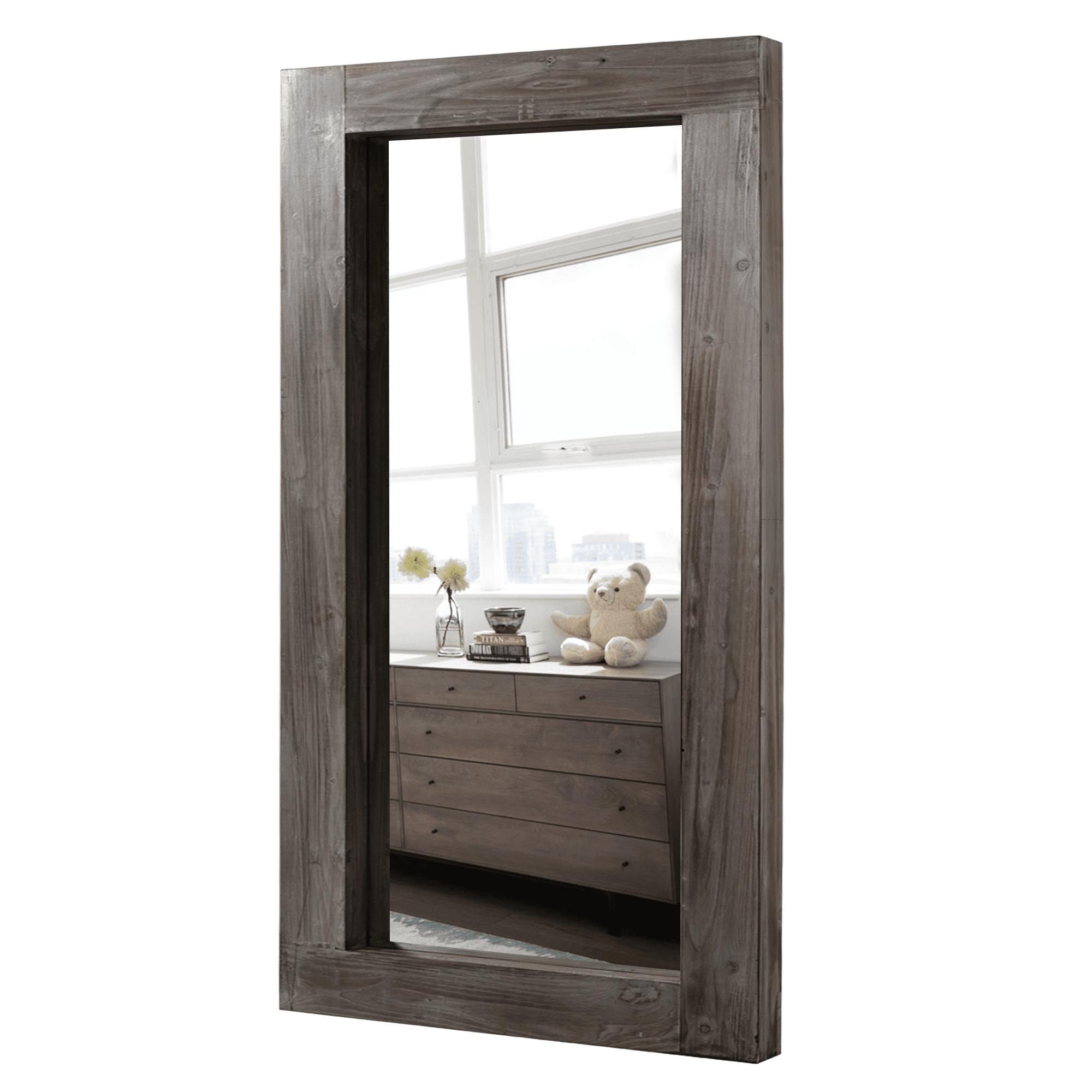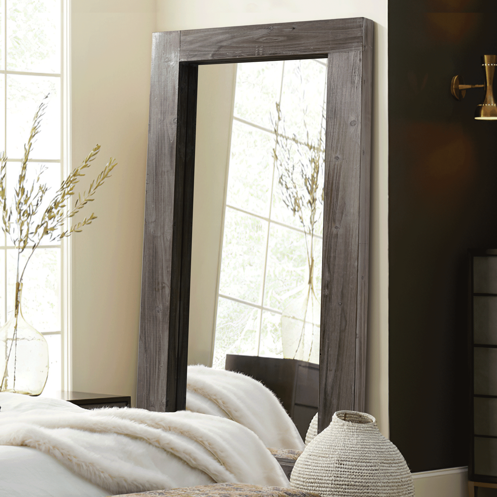 Modern Rectangle Solid Wood Wide Edge Full-length Mirror Body Mirror 71″x32″ Charcoal Color