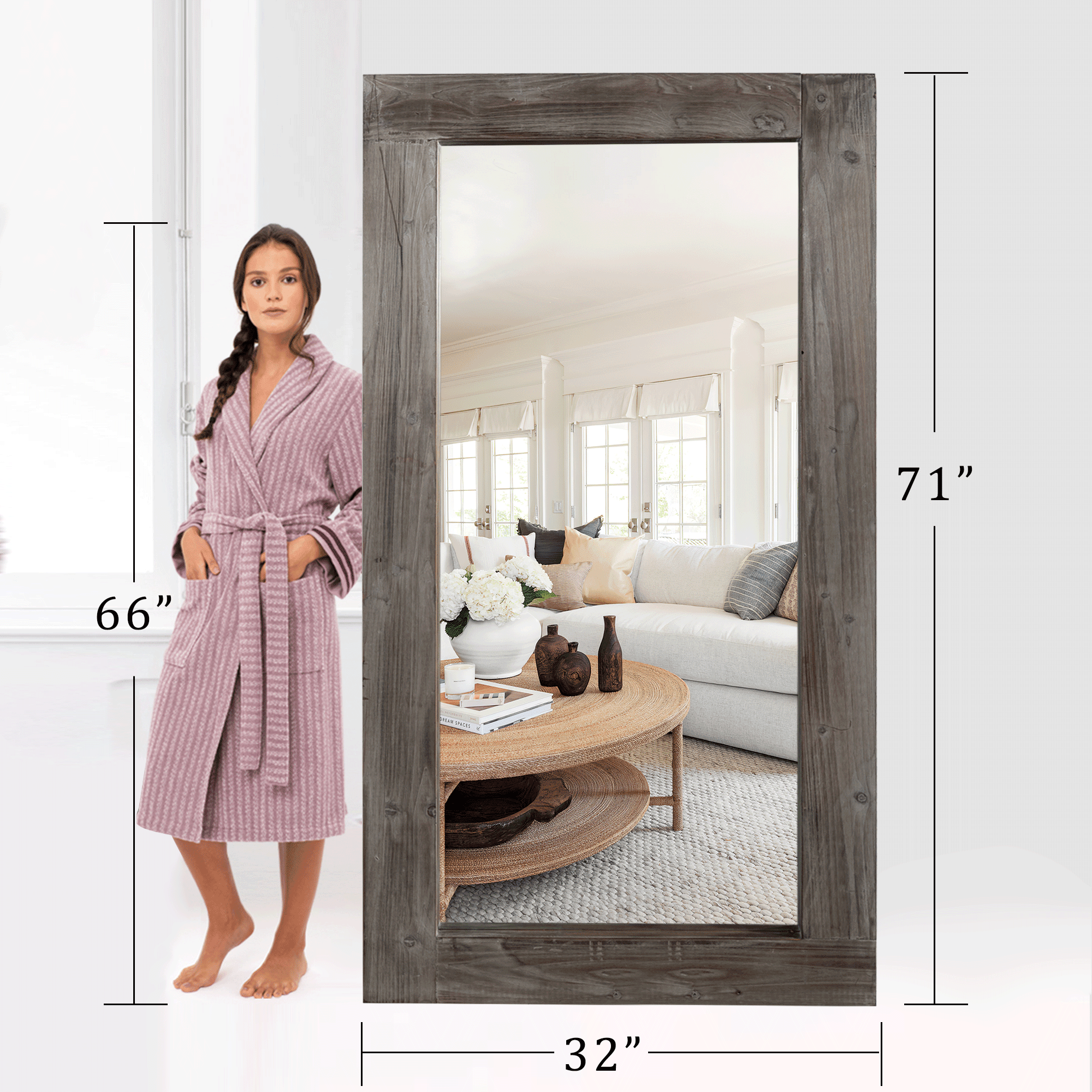 Solid Wood Frame:Made of solid wood, simple but graceful.Perfect for the environment of retro and pastoral modern style. Simple Installation: The mirror can simply lean to the wall or you can hang it on the wall for space-saving. Best for bedroom, living room, locker room, behind of the door , corridor, clothing shop. Blast-resistant Glass :Scatter prevention and explosion-proof membrane, the burst-proof, shattered glass will not be spilt out even impacted by an external force, more safe and protective Widely-Use:You can use stylishly decorated farmhouses and country-style items in your entrance, kitchen, living room or bathroom to show your personality. Worry Free Service:We are committed to QUALITY AFTER-SALES SERVICE. As long as you have any questions, please contact us, we will give you a FULL REFUND or FREE EXCHANGE until you are SATISFIED. What are you waiting for? BUY IT NOW! NO RISK.