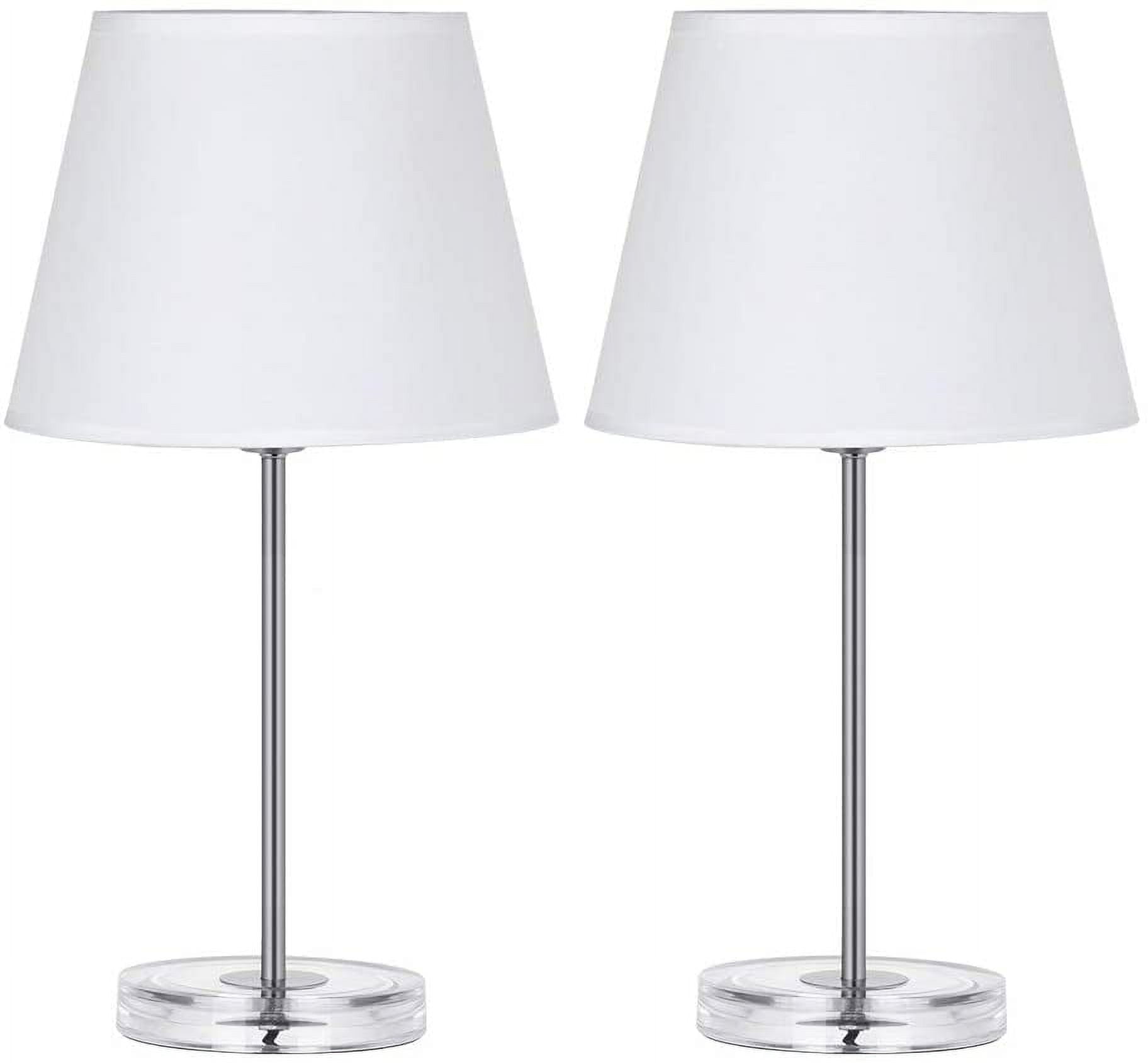Modern Silver Table Lamps Set of 2 with Acrylic Base White Shade