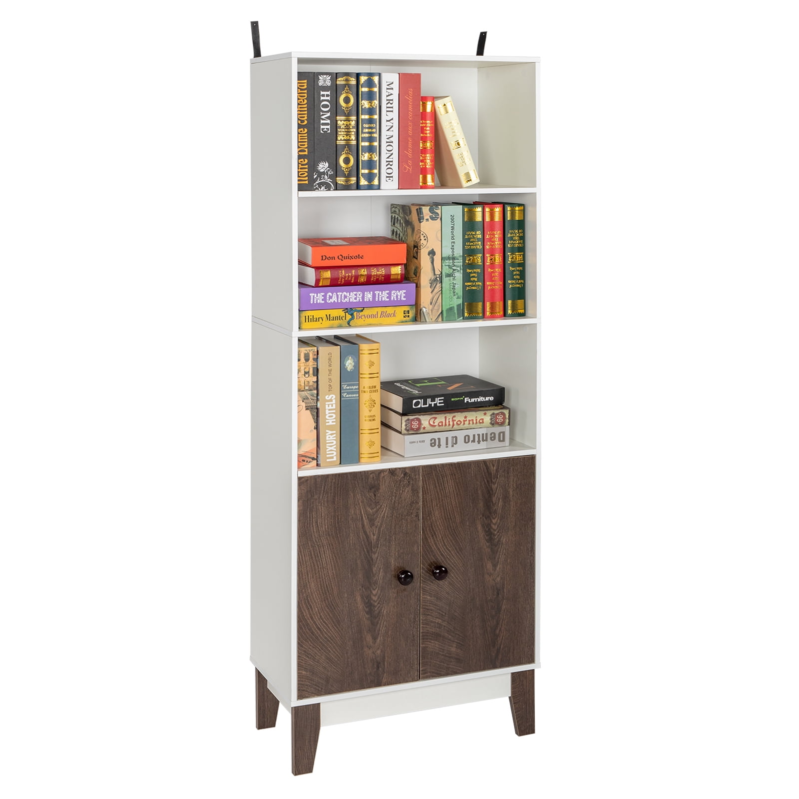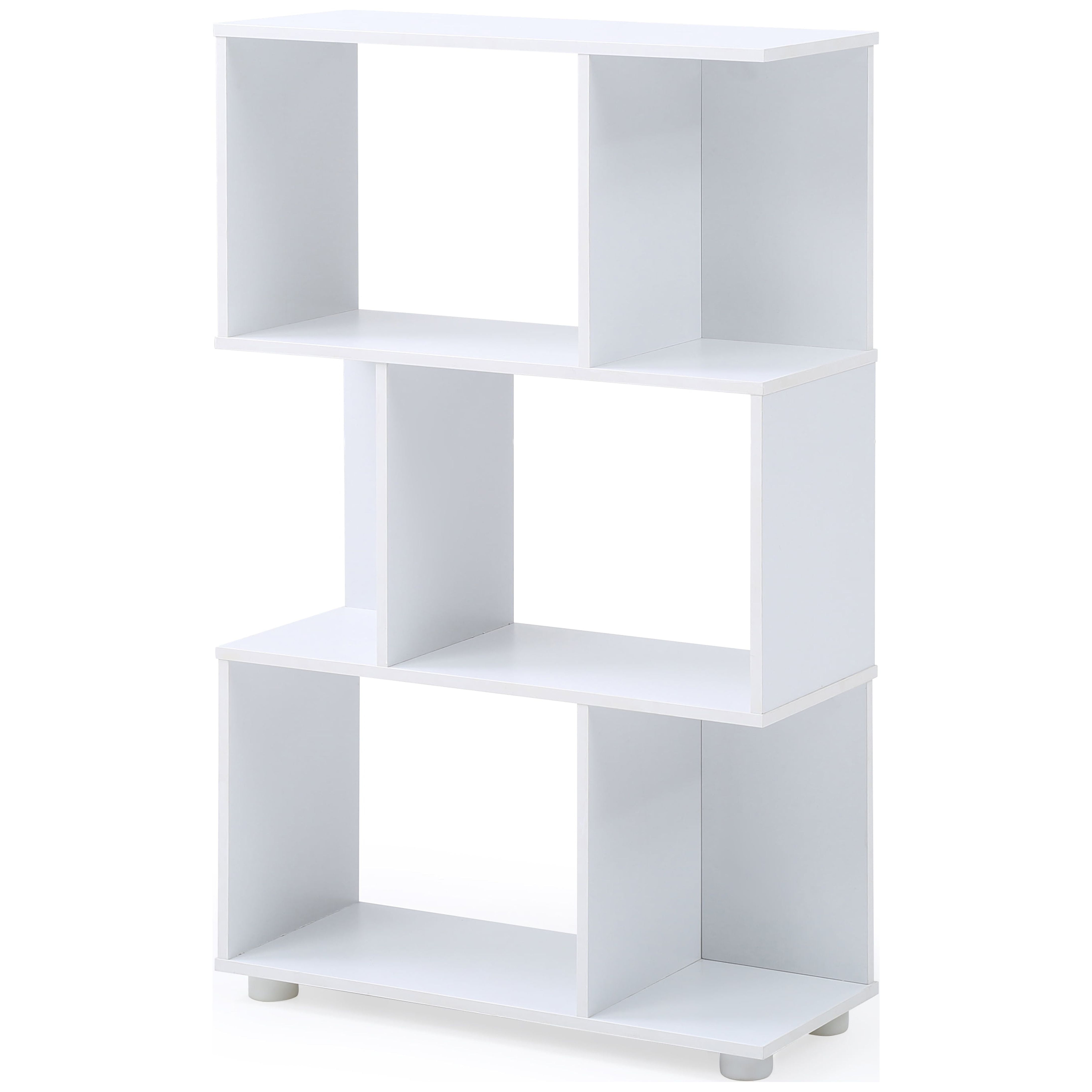 AC Pacific Manor Modern Staggered 3-Shelf Bookcase, White