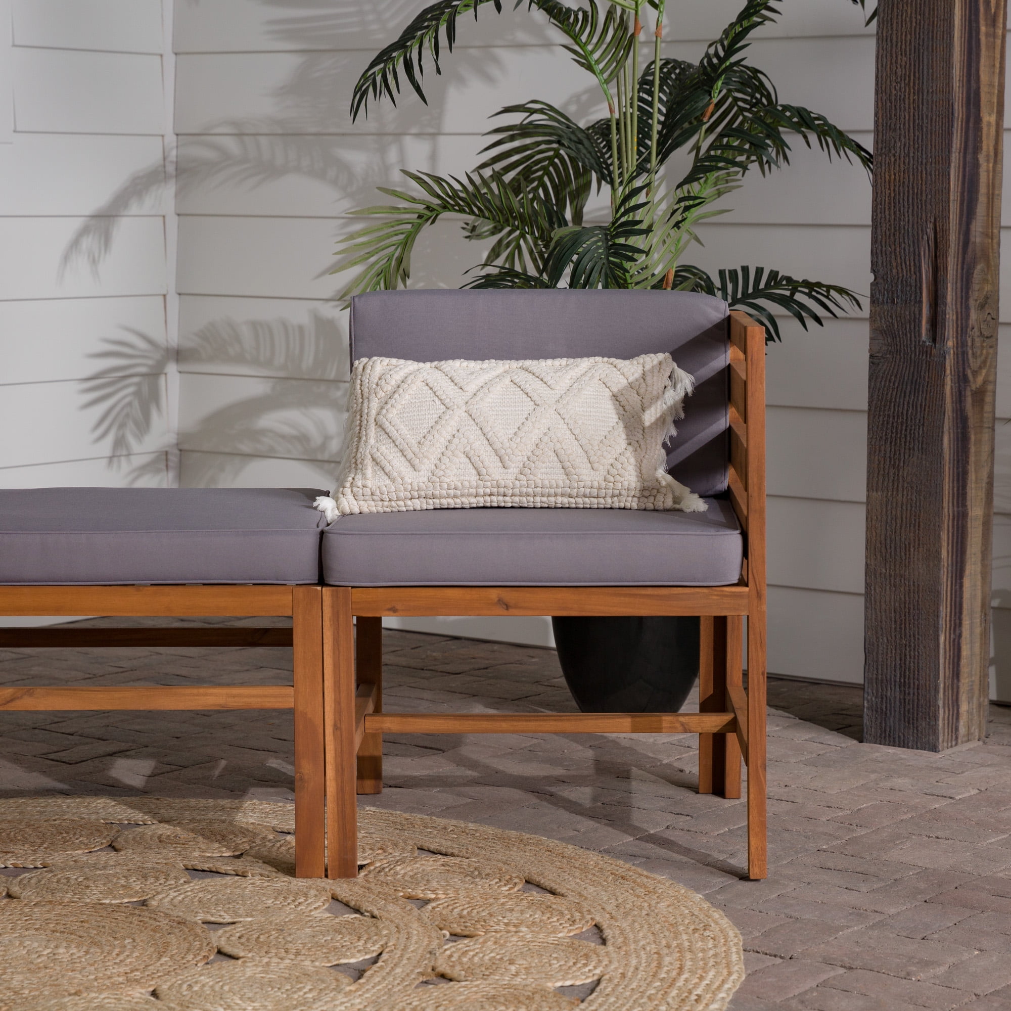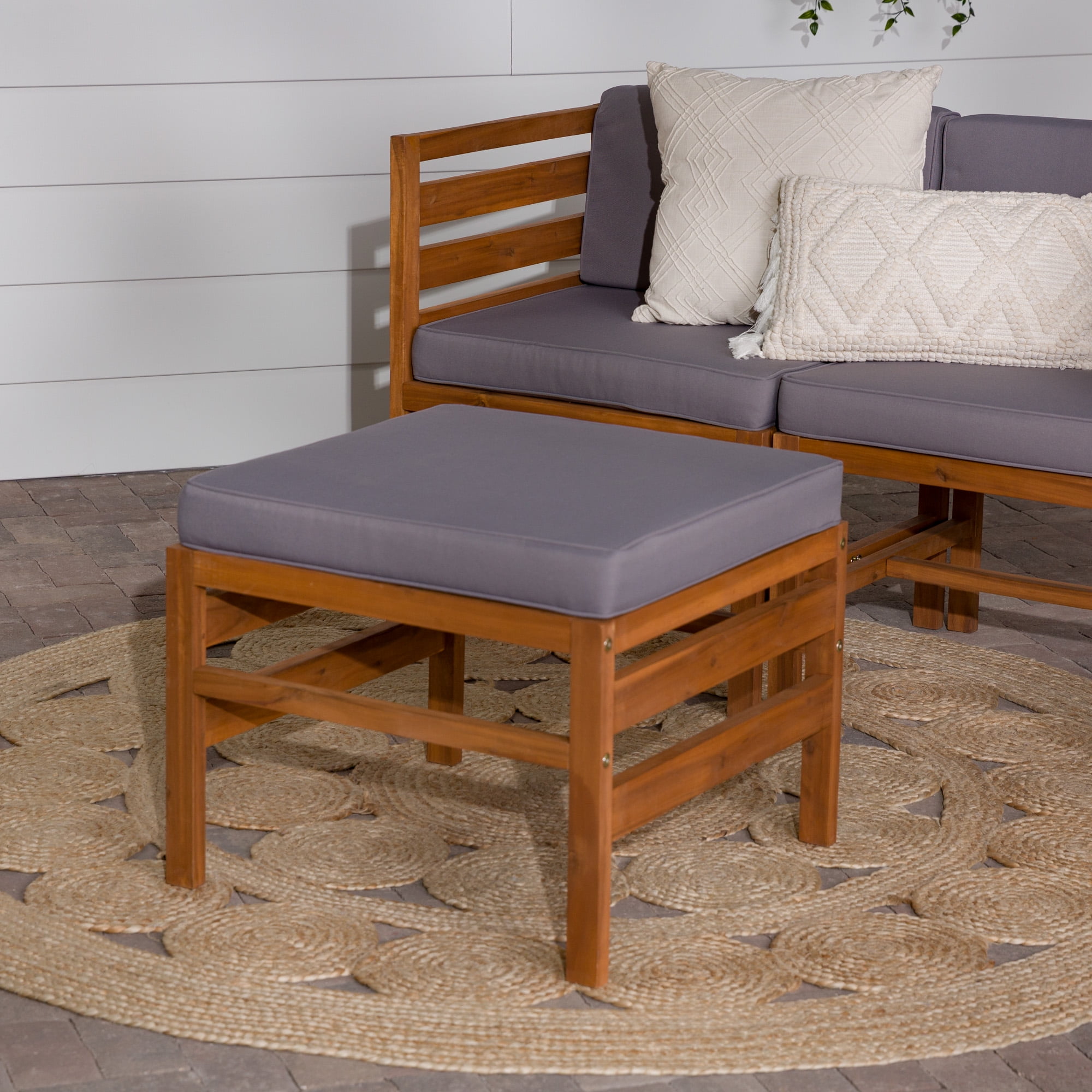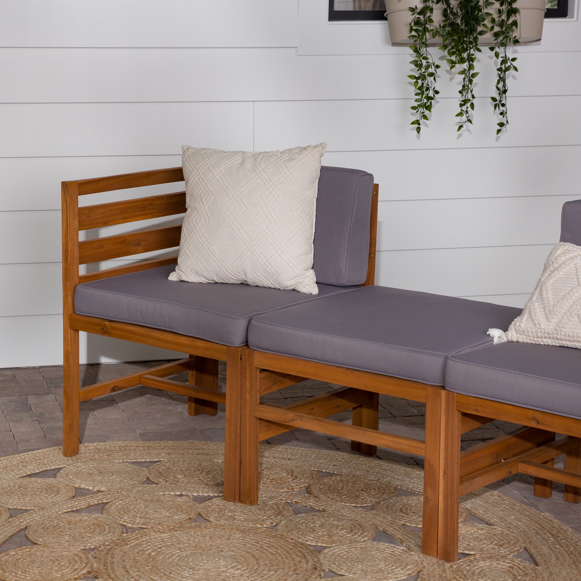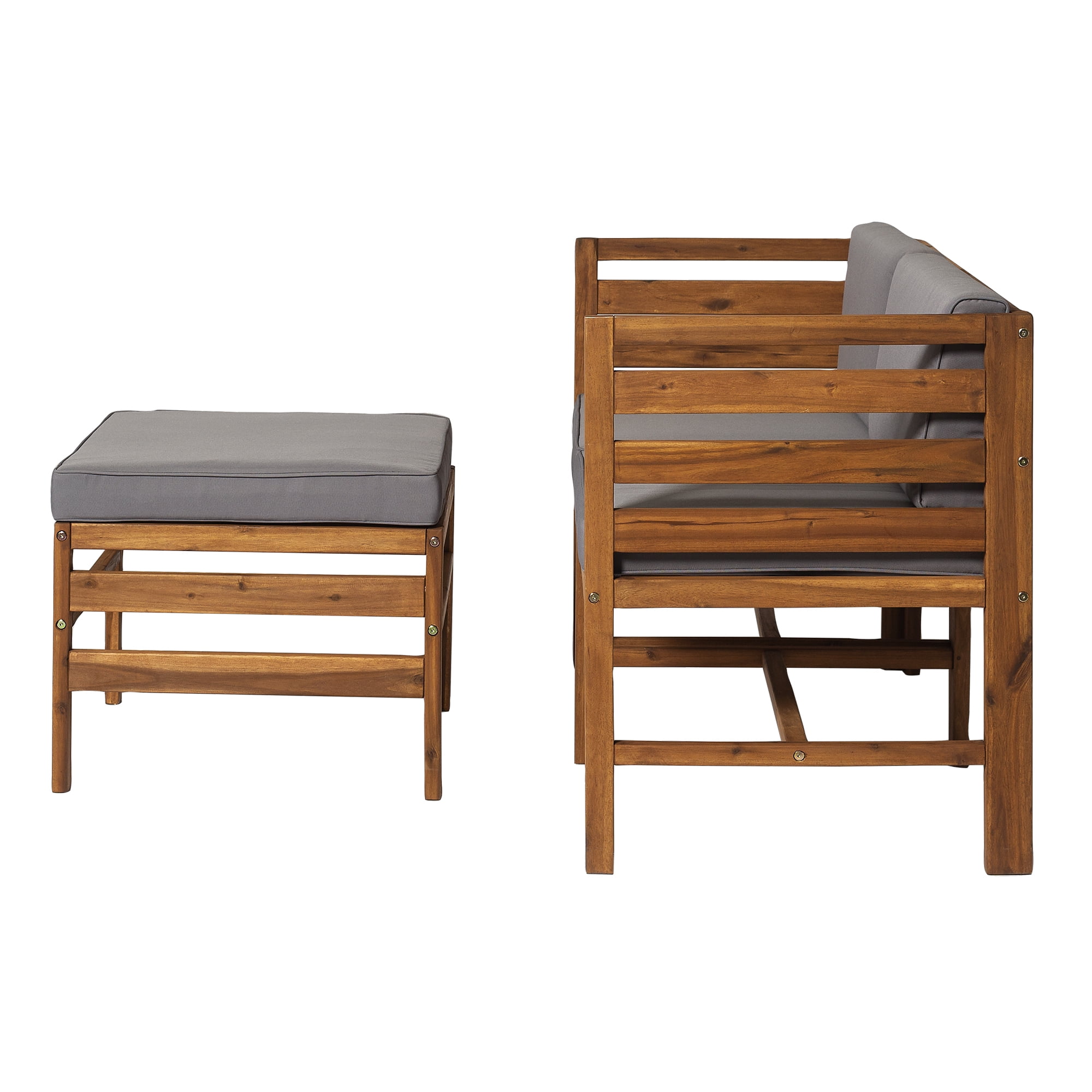 Modular Outdoor Brown and Grey Acacia L/R Chairs + Ottoman by Walker Edison
