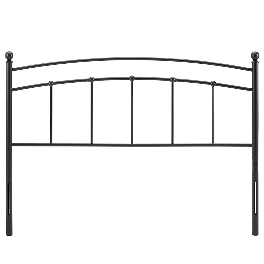 MODERN FARMHOUSE HEADBOARD – Refreshing a master bedroom or guest bedroom, this queen headboard is inspired by rustic charm and modern style featuring an arching shape, spindle detail, and ball finials VERSATILE QUEEN HEADBOARD – Create a neutral backdrop for all kinds of bedding with this metal headboard. The versatile design complements modern, farmhouse, contemporary, industrial, and rustic decors HEADBOARD FOR QUEEN BEDS – This metal headboard for queen size beds features a powder-coated iron frame for a durable construction that lasts for years to come ADJUSTABLE HEIGHT HEADBOARD – With seven different mounting positions, this height adjustable headboard offers a customizable fit for almost any queen bed frame. Dimensions: 59.5″W x 1.5″D x 40.5″H