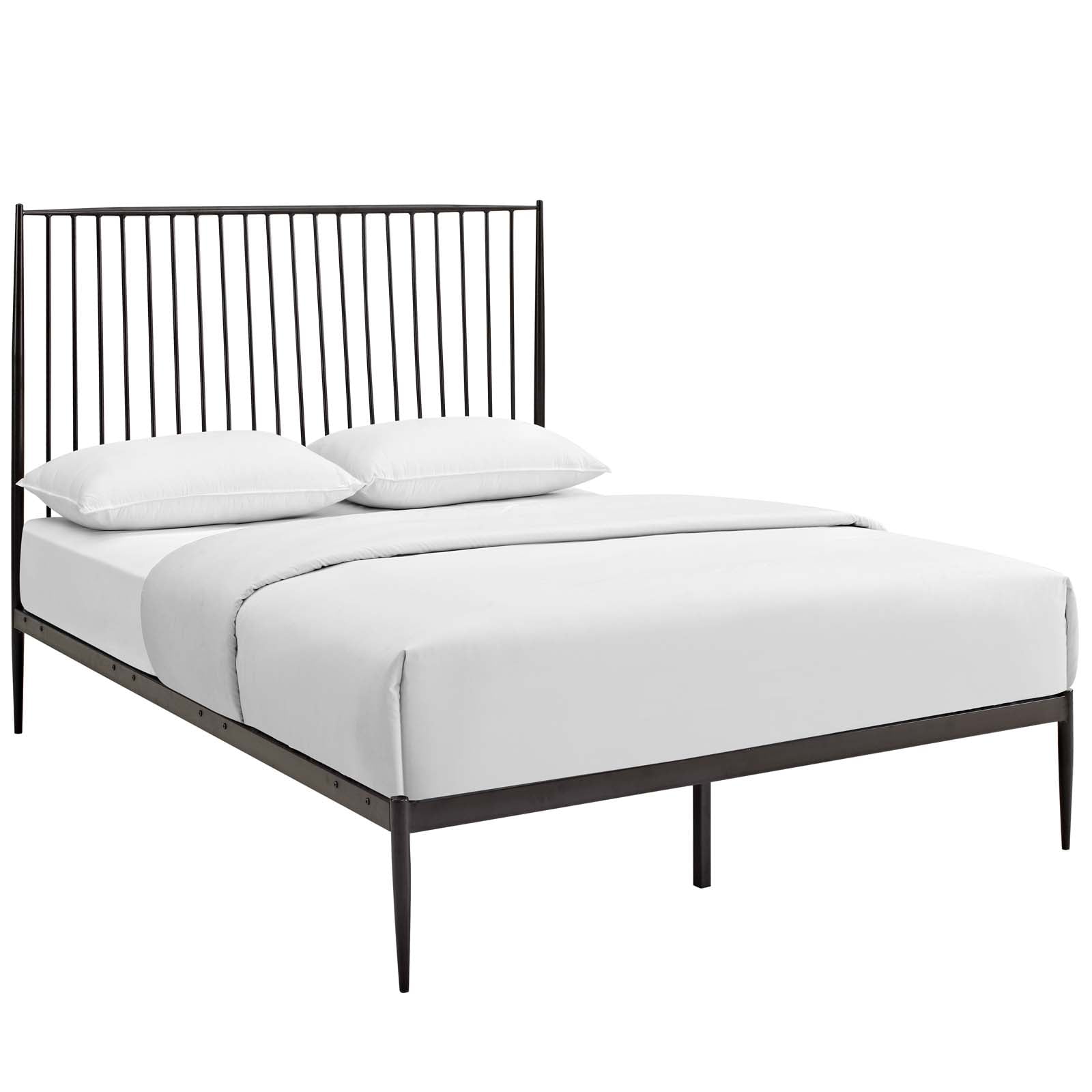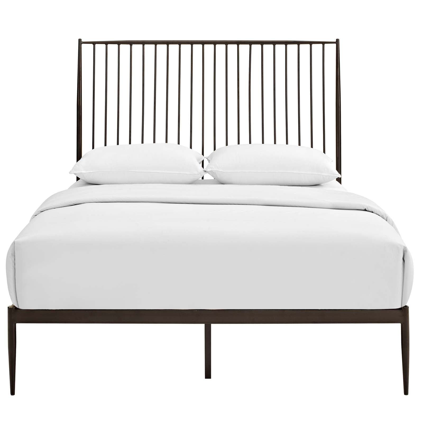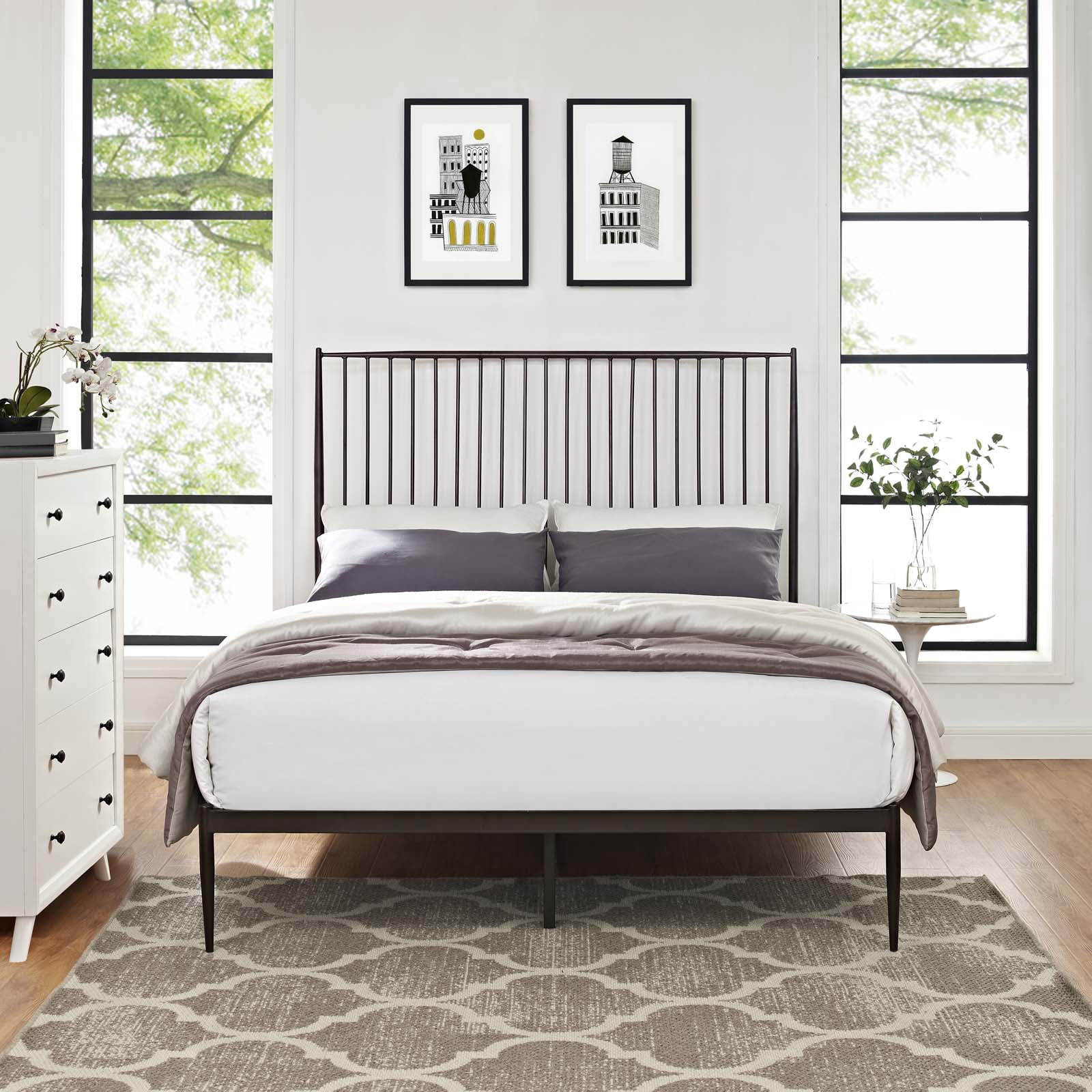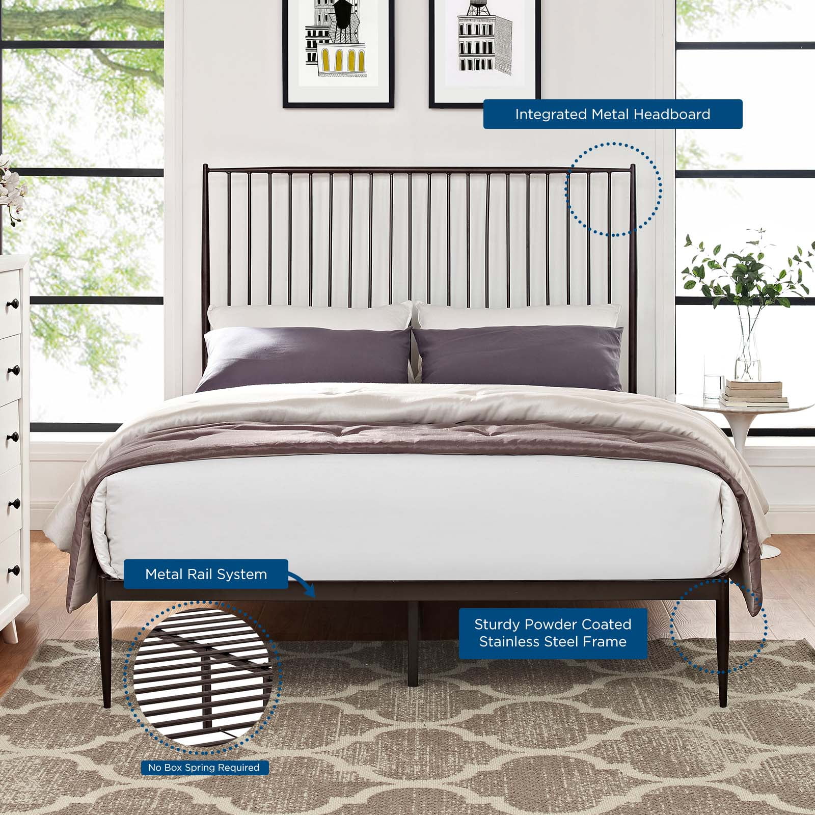 Experience serene sleep with the Annika Platform Bed. Introduce a relaxed country look made of coated steel, tapered dowel steel legs with non-marking foot caps, metal slat supports, and a reinforced center beam with legs for maximal stability. A charming addition to your modern farmhouse or cottage décor, Annika’s rail system eliminates the need for a box spring, and admirably supports mattress types such as memory foam, spring, latex, and hybrid. Weight capacity up to 1300 lbs. Mattress Not Included.
