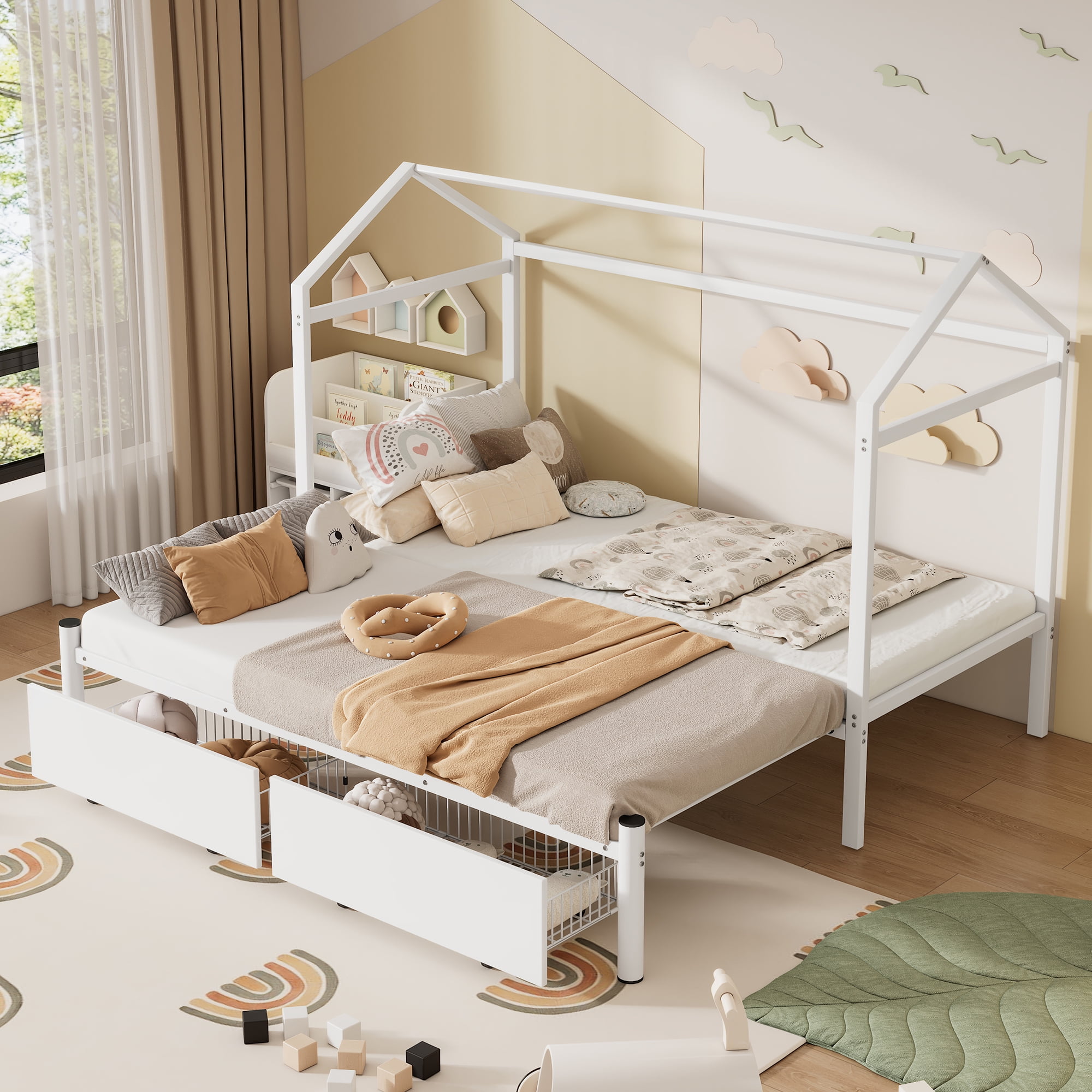 WOOD HEADBOARD – Refresh your guest bedroom or teenager’s room with the retro modern style of this full headboard featuring a window pane design, organic aesthetics, and mid-century modern accents INTERCHANGEABLE BED FRAME OPTIONS – This full size headboard is compatible with the Billie and Margo bed frame collections allowing it to adapt to your personal design style for a custom look STURDY CONSTRUCTION – Crafted with durable rubberwood and MDF veneer, this wood headboard creates a neutral backdrop for a variety of bedding styles FULL HEADBOARD – Update your room with the comfortable sleep and modern style of customizable bedroom furniture. Assembly required. Dimensions: 56″W x 0.5″D x 22.5″H