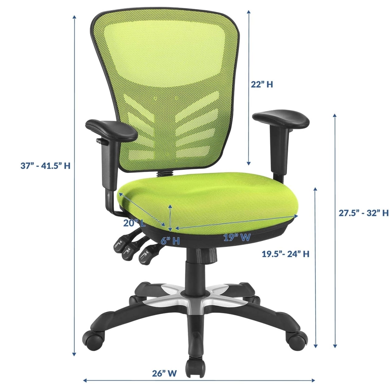 ERGONOMIC OFFICE CHAIR – Featuring reliable ergonomic support, Articulate comes with a breathable mesh back, passive lumbar support, and generously padded and contoured 6” thick mesh seat cushion RELIABLE COMFORT – Designed with productivity in mind, Articulate is perfect for everyday use. Sturdy and supportive, this executive office chair holds up to 331 lbs and comes in a variety of colors ADJUSTABLE SEATING – Articulate is a computer chair that easily adjusts to your needs with height adjustable armrests, one-touch chair height adjustment, 360 degree swivel, and a tilt and lock system OFFICE UPDATE – Refresh your office space with this versatile choice for computer desks and workstations. Enjoy mobility over carpeted or hardwood floors with five dual-wheel casters OFFICE CHAIR MEASUREMENTS – Product Dimensions: 26.5″L x 26″W x 37 – 41.5″H; Armrest Height: 27.5”H – 32″H; Backrest Height: 22″H