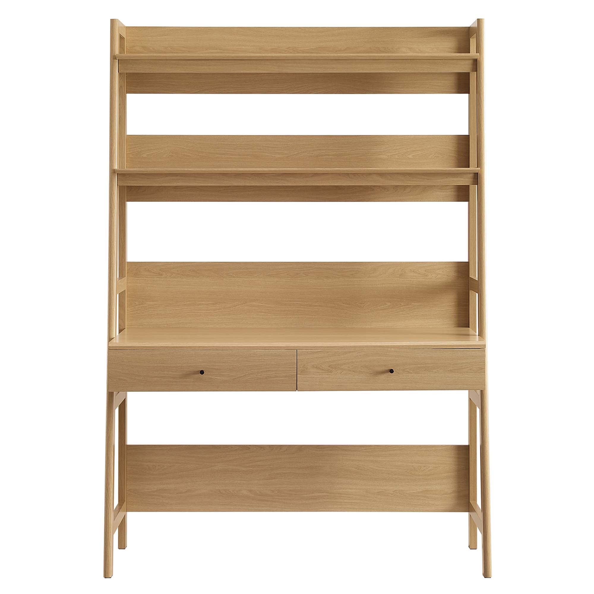 Let productivity take centerstage in your home office with the Bixby Office Desk. Stack your favorite reads and display home accessories on the stylish bookshelf while you focus on the task at hand while seated at the spacious desk. Featuring a slim, tiered silhouette, Bixby blends organic wood grain with the sleek lines of the shelves to create beautiful contrast. With plenty of room for storage and display, this bookshelf is complete with spacious shelves and two pull-out desk drawers. This computer desk is crafted with particleboard and MDF for a sturdy construction that’s built to last. Features: Materials: Particleboard and MDF Finish: Oak Full-Extension Drawers Specifications: Product Dimensions: 71″H x 49″W x 18.5″D Product Weight: 93 lbs