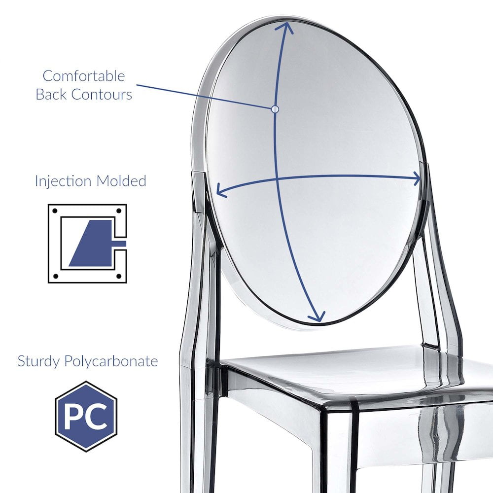 Combine artistic endeavors into a unified vision of harmony and grace with the ethereal Casper Chair. Allow bursts of creative energy to reach every aspect of your contemporary living space as this masterpiece reinvents your surroundings. Surprisingly sturdy and durable, the Casper Chair is appropriate for any room or outdoor setting. Pure perception awaits, as shining moments of brilliance turn visual vacuums into new realms of transcendence. Features: Material: Plastic Finish: Smoke gray For outdoor use Injection molded Stackable up to 4 chairs Sturdy polycarbonate Specifications: Product Dimensions: 35.5″H x 15″W x 19.5″D Product Weight: 8 lbs Seat Dimensions: 16.5″L x 13.5″W x 19″H Product Dimensions: (Backrest) 16.5″H Product Dimensions: (Base Width) 15″W