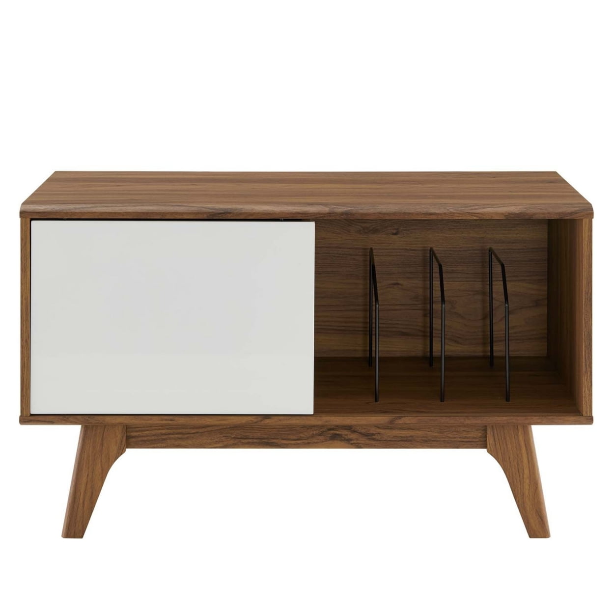 Modway Envision Wood & Vinyl Record Display Stand in Walnut & White