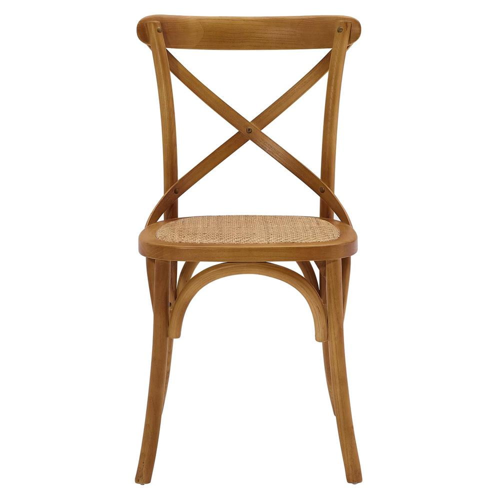 Material: Rattan, elm wood Finish: Walnut Modern farmhouse dining chair Tapered legs Coated elm wood frame Natural rattan seat