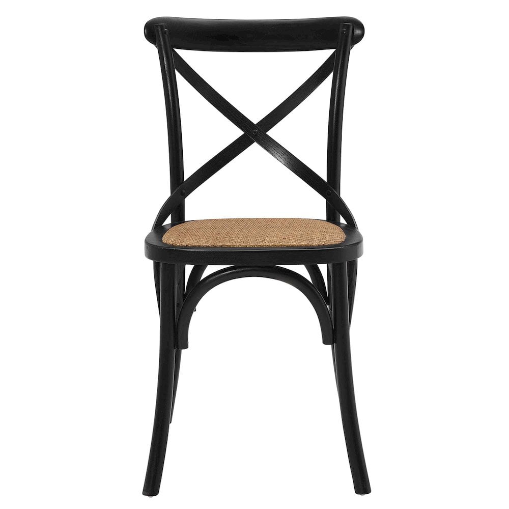 Includes: Two – Gear Dining Side Chair Materials: Coated elm wood, natural rattan Finish: Black Modern style
