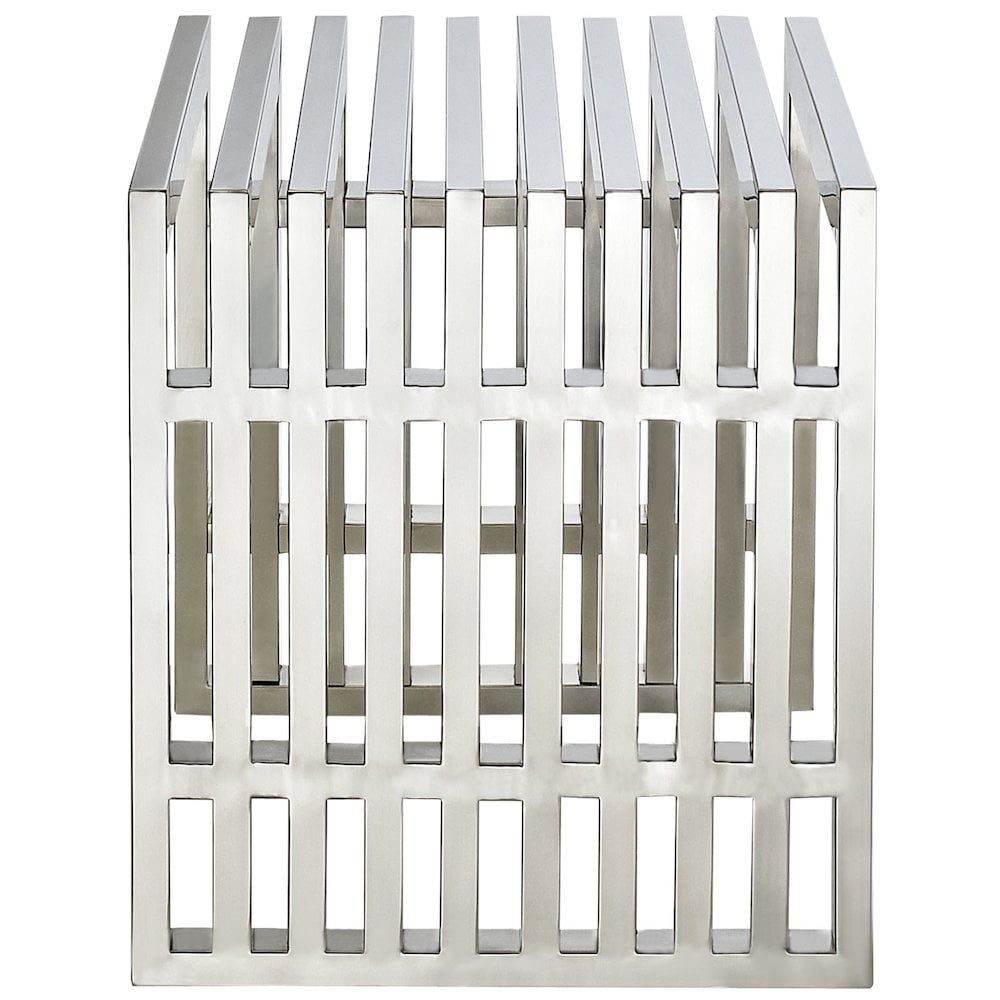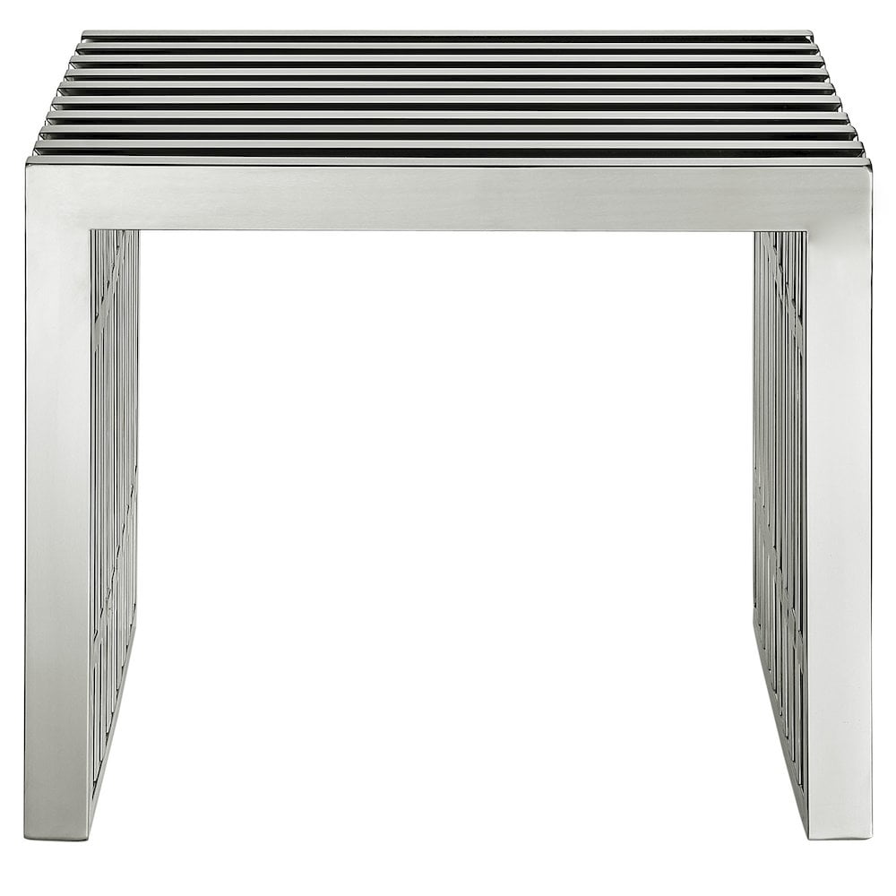 Modway Gridiron Small Stainless Steel Bench or Side Table in Silver