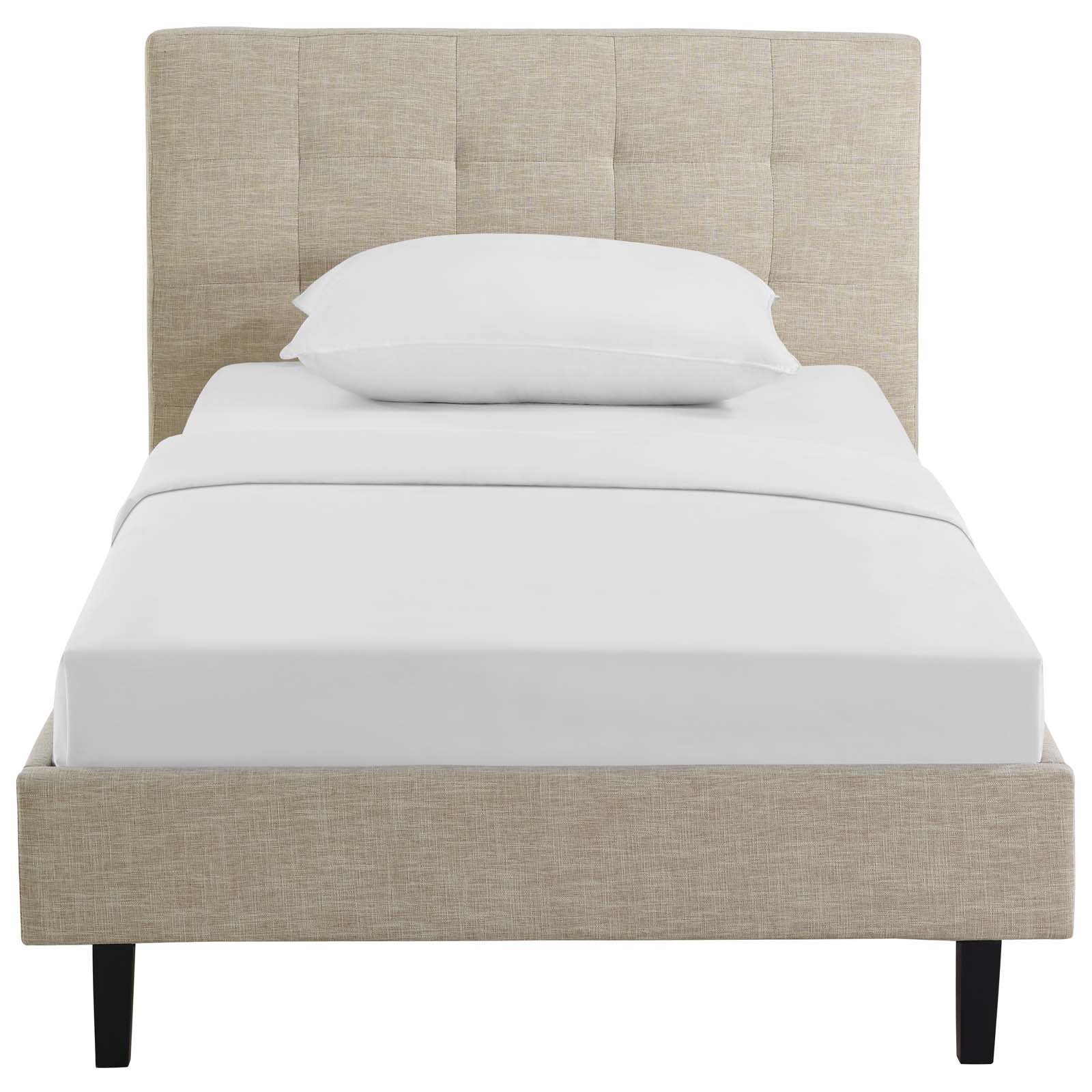 Modway Linnea Twin Modern Polyester Fabric and Wood Bed in Beige