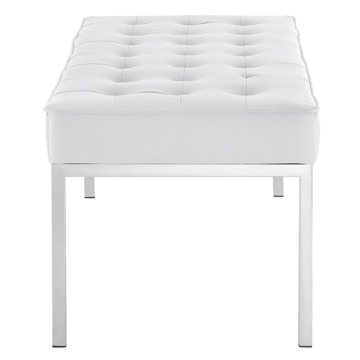 Modway Loft Tufted Vegan Leather Bench in Silver White
