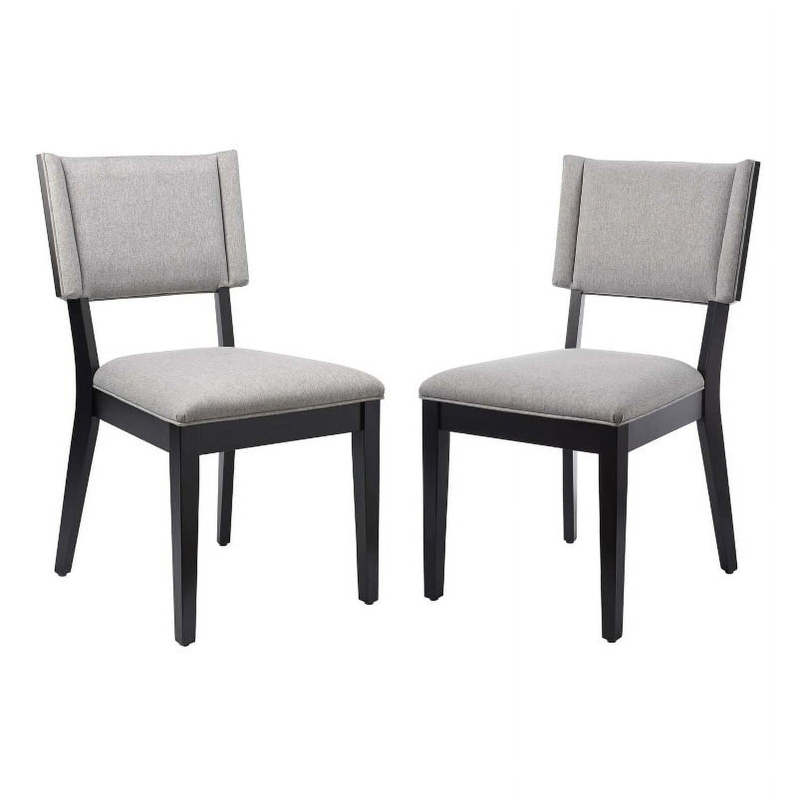 Whether your table setting is formal or informal, the Pristine Upholstered Dining Chair Set makes a dynamic presence. The wood-framed backrests and tapered legs give these dining chairs a timeless, streamlined silhouette that makes them suitable in any decor. These upholstered dining chairs are covered in durable polyester fabric and filled with dense foam padding for consistent, superior comfort all around. The plump seats and backrests are surrounded by a sturdy rubberwood construction, creating strong vertical lines for a slimming effect, making these perfectly accommodating accent chairs. The Pristine Dining Chair Set delivers pure pleasure wherever you decide to place them. Weight Capacity: 500 lbs. Features: Materials: Polyester fabric, solid rubberwood Finish: Gray Dense foam padding Non-marking foot pins Specifications: Product Dimensions: 34″H x 23.5″W x 22.5″D Product Weight: 18 lbs Weight Capacity: 500 lbs