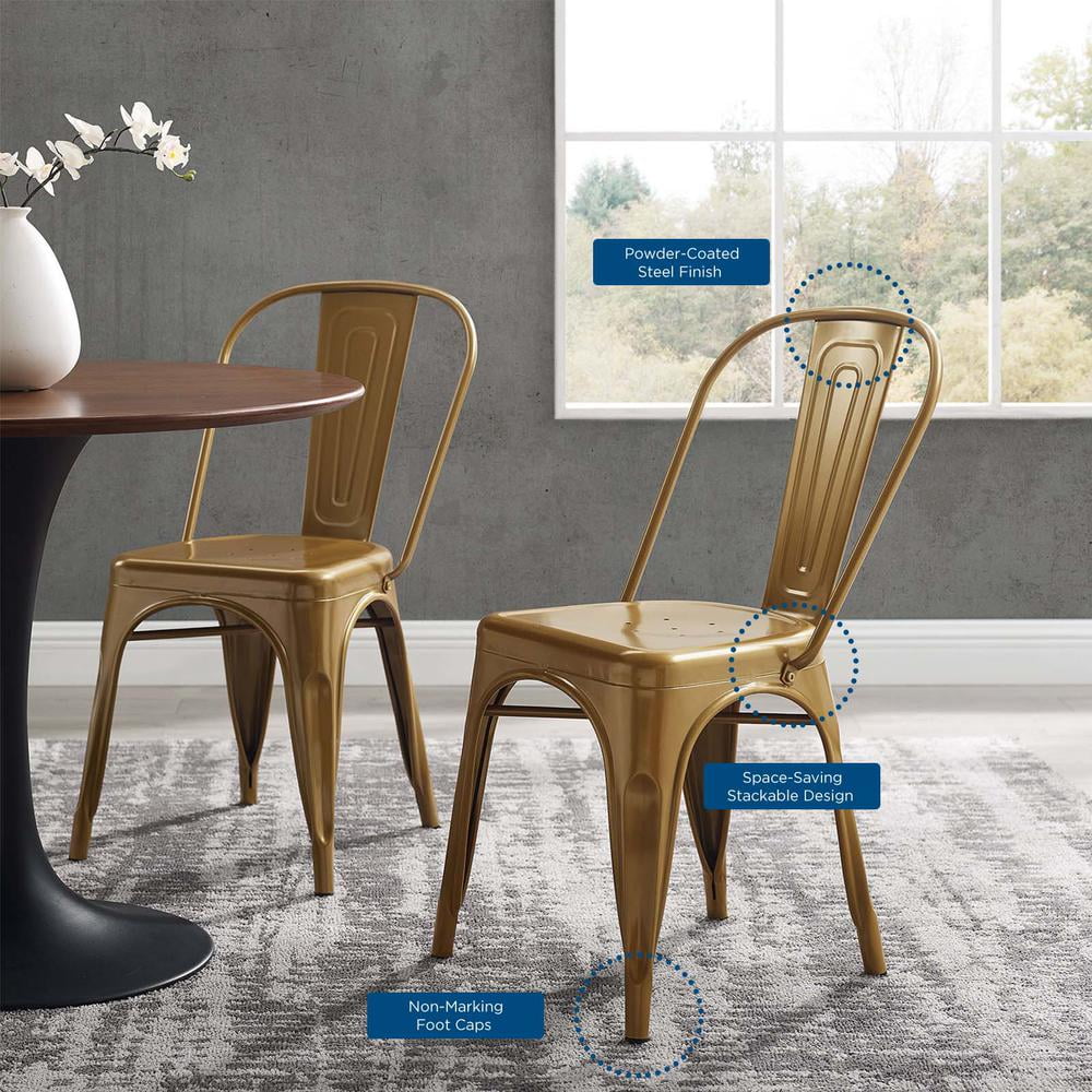 Modway Promenade Bistro Dining Side Chair Set of 2 in Gold