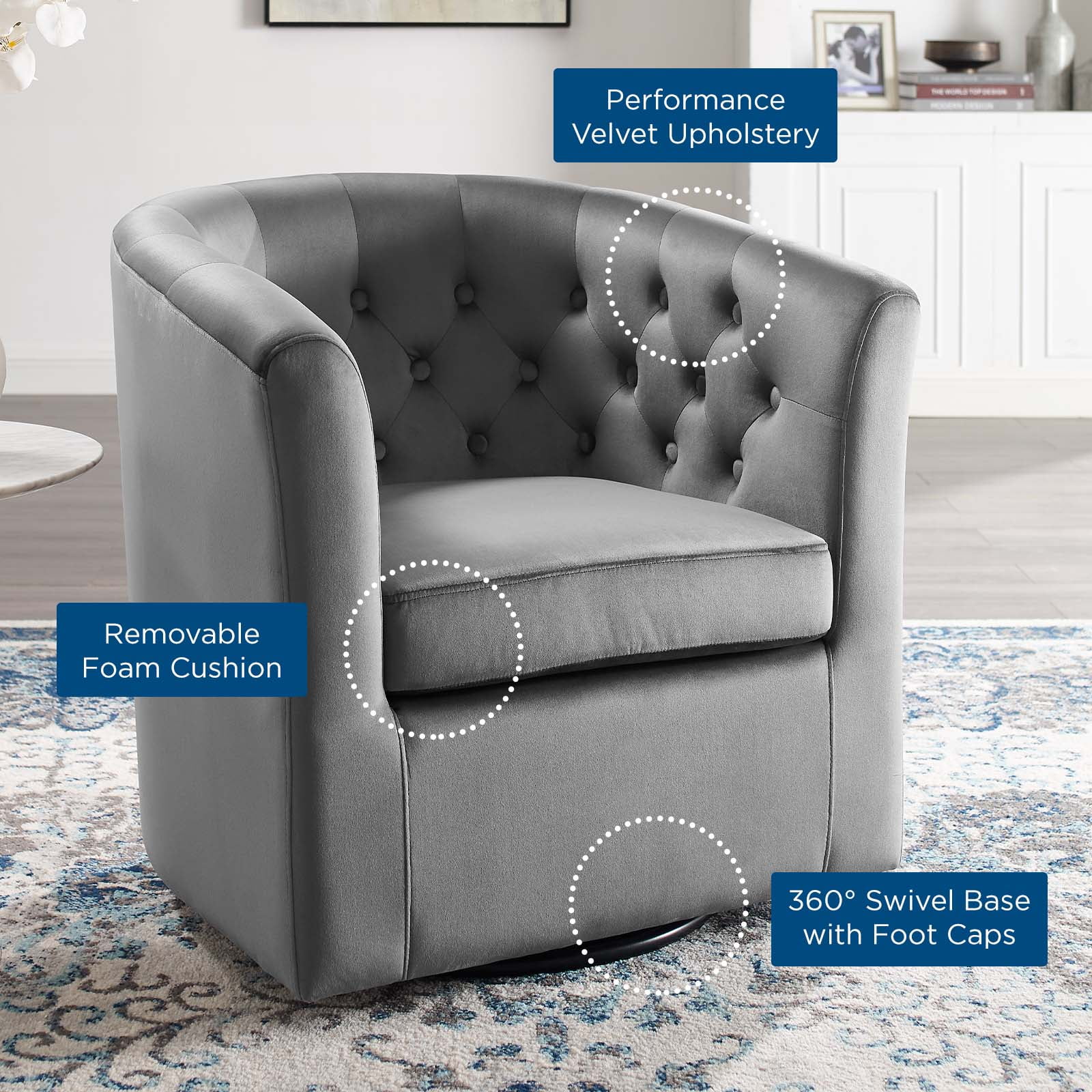 Modway Prospect Tufted Performance Velvet Swivel Armchair in Light Gray