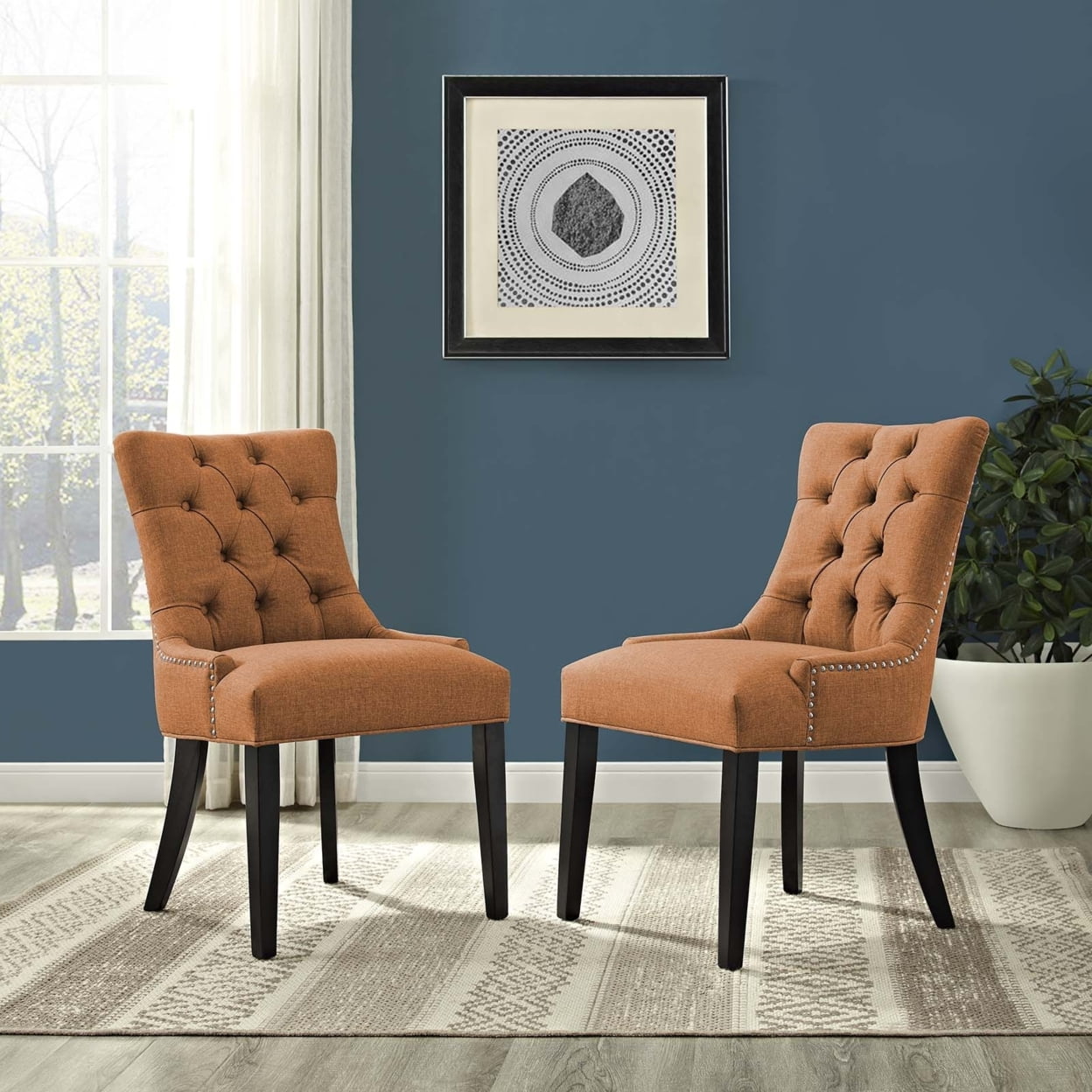 Modway Regent Dining Side Chair Fabric Set of 2 in Orange