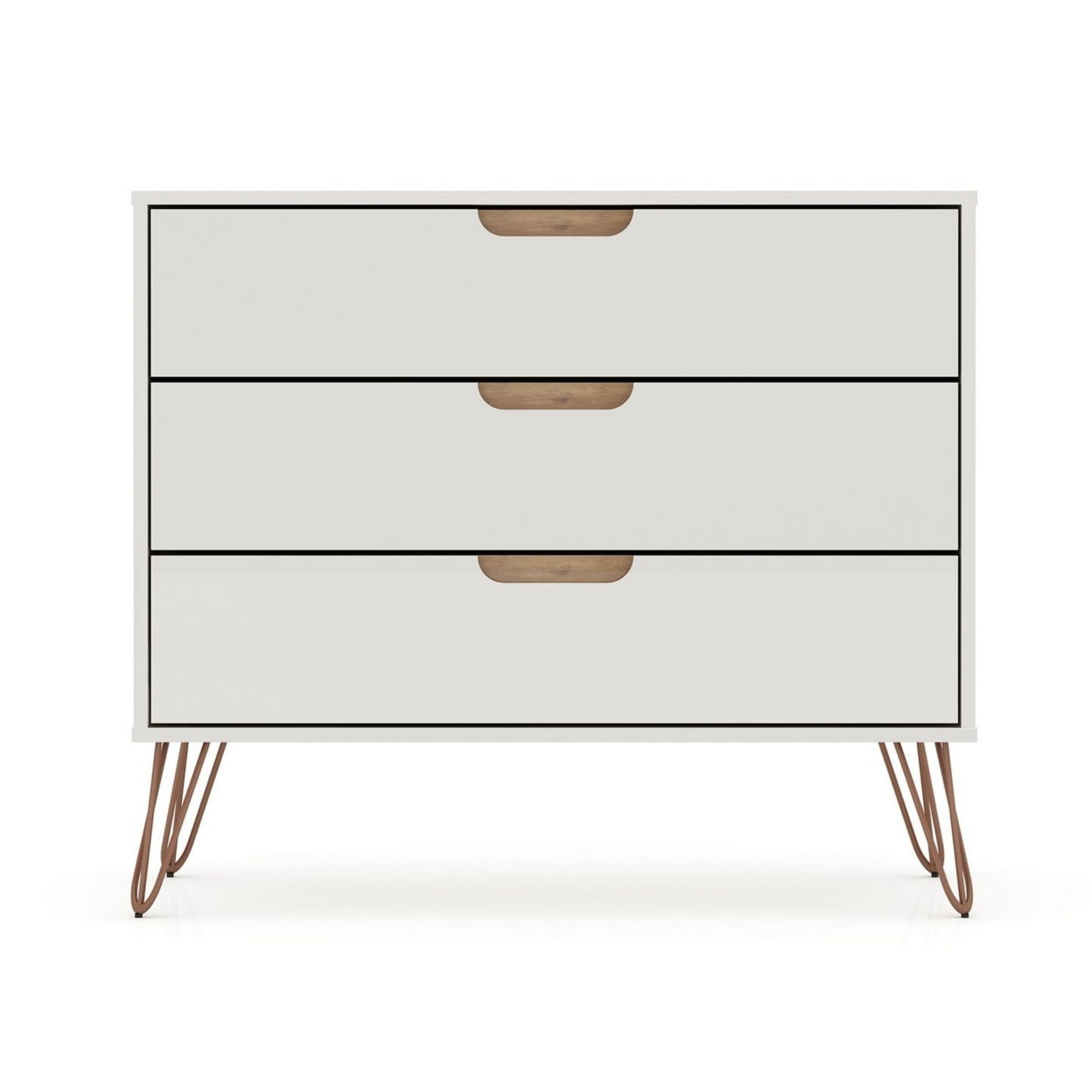 Mid-Century Writing Desk Perfect For Apartment Or Dorm Smooth Wood Grain Laminate Durable Particleboard Construction Full-Extension Glide Drawers Tapered Wood Legs Assembly Required