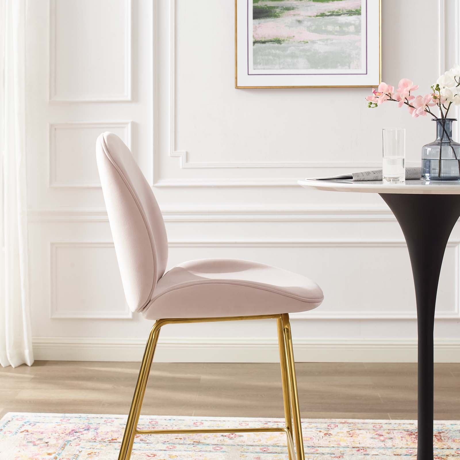 Modway Scoop Gold Stainless Steel Leg Performance Velvet Bar Stool in Pink