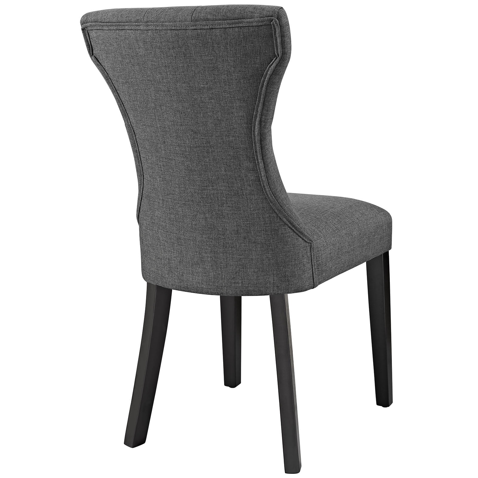 PARSONS DINING CHAIR – Imparting modern intrigue, this Parsons side chair effortlessly completes a contemporary dining room with its sweeping lines, back flared legs, and timeless button-tufted detail SUPPORTIVE COMFORT – Making a chic statement, Silhouette comes densely padded with 4.5″ of foam and covered in fabric, offering a supportive seat to relax while entertaining or sitting at a desk MODERN VANITY CHAIR – Encouraging purpose wherever it sits, the elegant, thoughtful design of Perdure makes it a striking addition to your vanity or living room as a gorgeously tufted accent piece SUPERIOR CONSTRUCTION – Sitting atop a rubberwood frame complete with non-marking foot caps, this Parsons side chair boasts quality fabric upholstery and timeless detail. Supports up to 280 lbs. CHAIR MEASUREMENTS – Complement almost any decor style with this sophisticated classic including modern, contemporary, traditional and more. Product Dimensions: 24.5″L x 18″W x 36″H