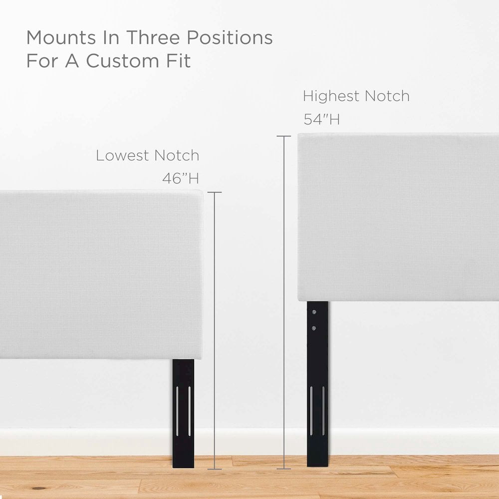 Introduce quiet elegance with the Taylor Full / Queen Headboard. Made of soft linen fabric upholstery covering a durable fiberboard and plywood frame, Taylor comes with sturdy extra-wide black-stained wood post legs that fit either full or queen bed frames. Able to mount in three positions, enjoy cozy nights with this tall headboard that ranges from 46 – 54 inches in height. Featuring a fiberboard frame and dense foam padding for quality support while reading, conversing and reclining, Taylor makes a luxurious complement to the guest bedroom or master suite.